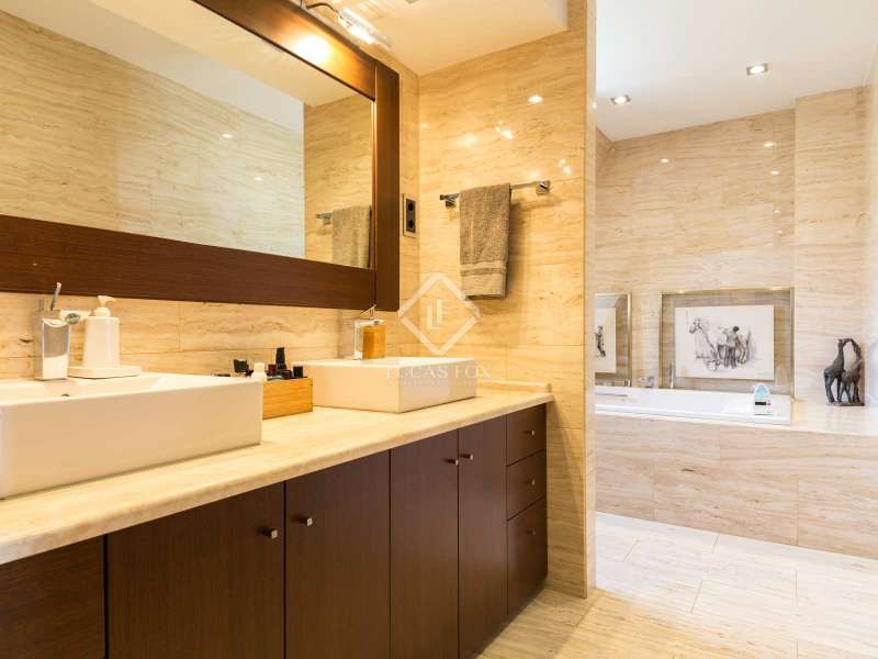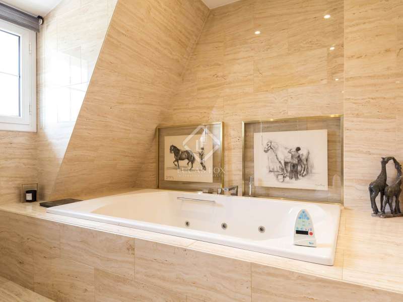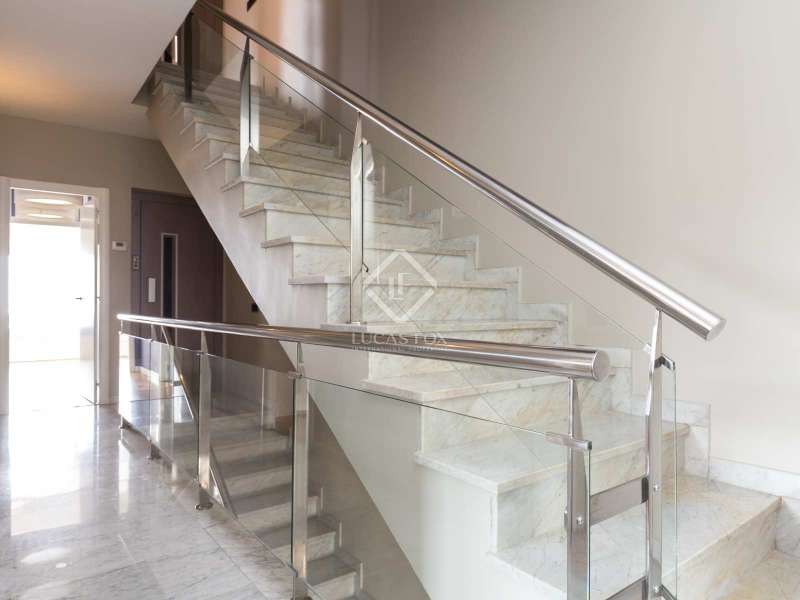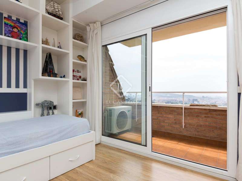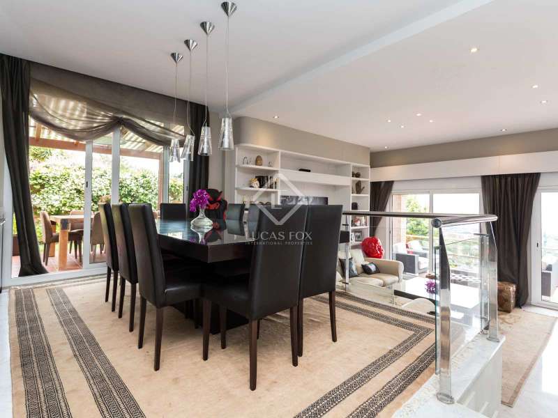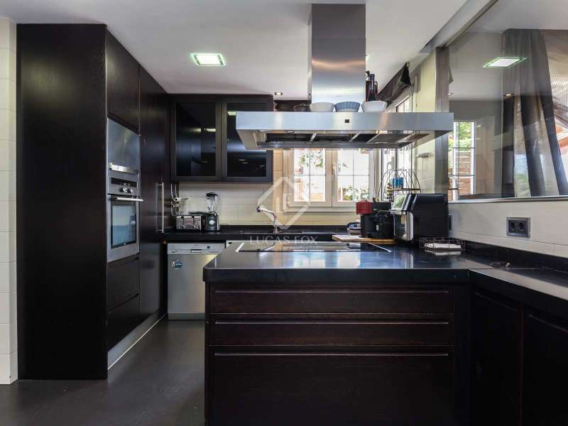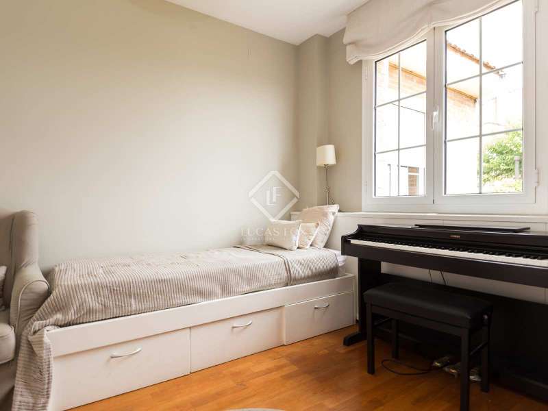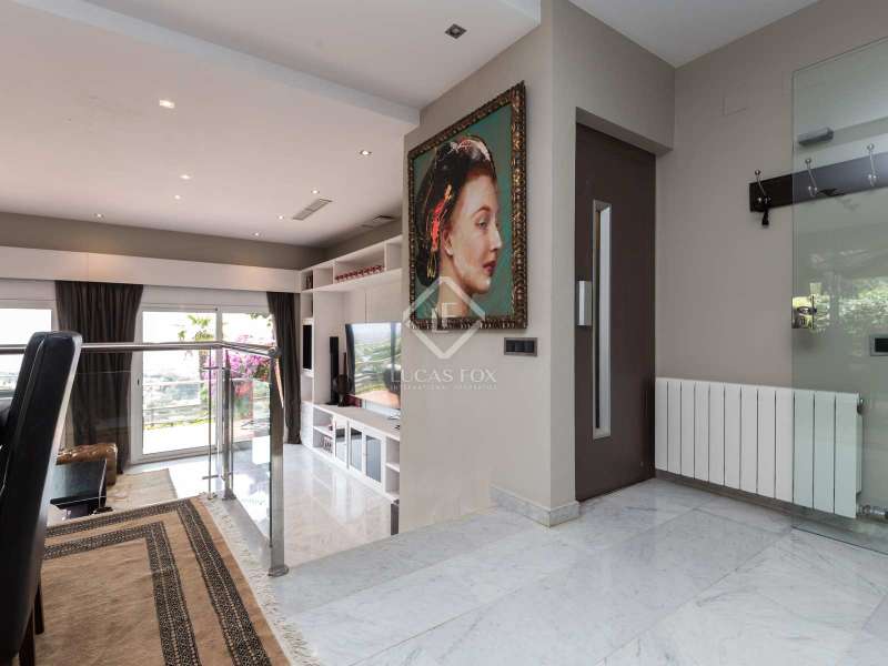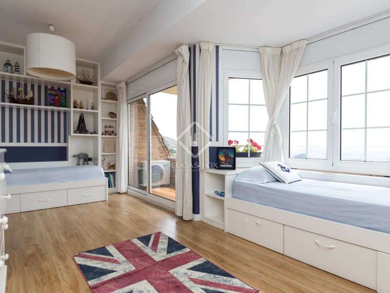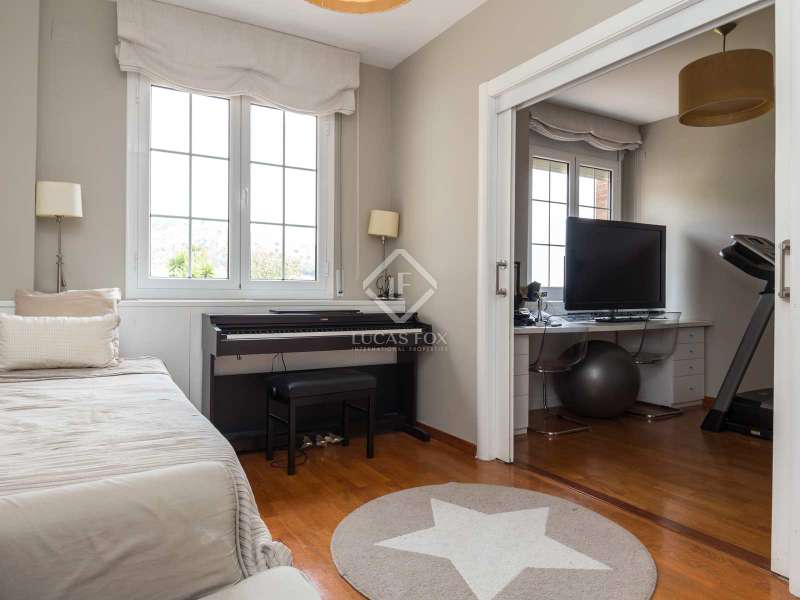 This excellent semi-detached house is located in Ciudad Diagonal, a prestigious private urbanization with a concierge service and 24-hour security. It is located in the best area of Esplugues, 10 minutes from Barcelona and close to international schools. The house has a private garden on several levels with a swimming pool, barbecue and chill-out area, where you can enjoy magnificent views of Barcelona and the Collserola natural park. The house is distributed over four floors, which are connected by stairs and an elevator. On the main floor, we find the spacious living-dining room of 50 m² with views and access to the garden, the glazed kitchen with lots of light, a guest bathroom and a service area with a complete bathroom. The second floor offers four bedrooms: two double bedrooms with private bathrooms and two single bedrooms with a shared bathroom. All of them are exterior and have views, and one also has a small terrace. On the third and last floor is the impressive 70 m² master bedroom with a dressing room and its own complete bathroom with shower and hydromassage bathtub. In the master bedroom there is also access to a large terrace with views of Barcelona and the Llobregat. The semi-basement floor has parking for three cars and a 15 m² storage room, as well as a multipurpose room with a bathroom, ideal as a game area, television or cellar. In addition, the house has the best quality finishes, such as aluminum carpentry, air conditioning and central heating, parquet floors and a water softener. It has a constructed area of 425 m² according to the simple note and 330 m² of garden for private use.
