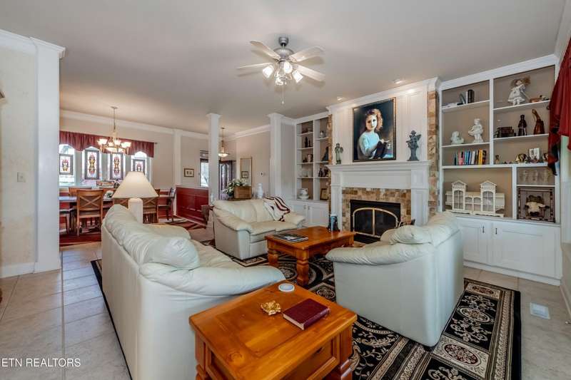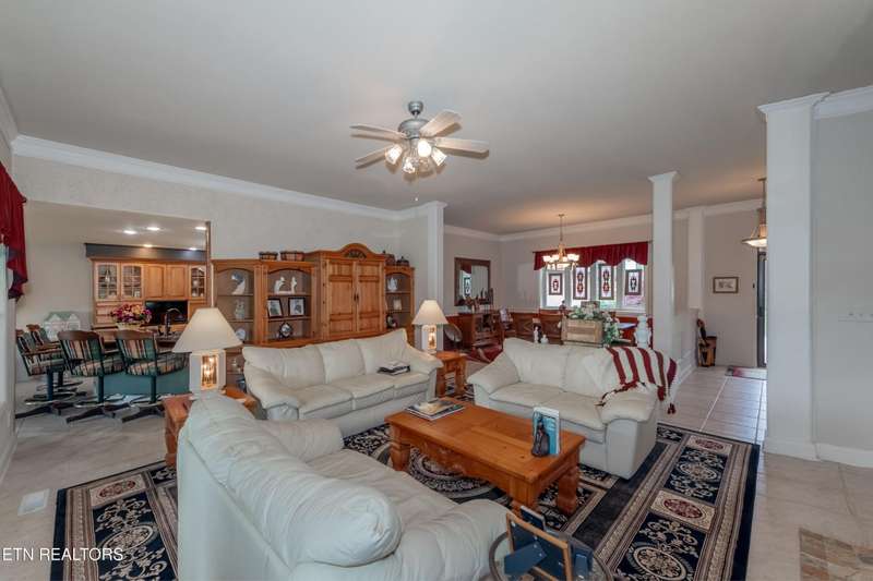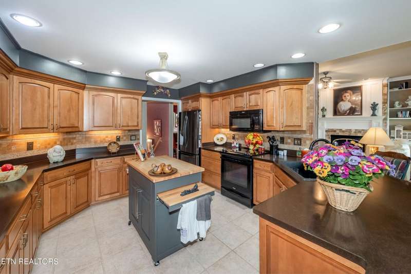 Welcome to this beautifully maintained basement-ranch home located in Kahite neighborhood of Tellico Village, offering stunning golf-course views and exceptional main-level living. As you enter, the foyer opens to a bright great room featuring large windows along the back wall that showcase sweeping views of the 11th fairway and provide access to the covered deck. Just off the foyer is the spacious dining room, and to the left is the private owner's suite with its own deck access, large walk-in closet, and a well-appointed en-suite bath. A second bedroom with its own private en-suite bath is also located on the main level---perfect for guests or multigenerational living. The kitchen is designed for both beauty and functionality, featuring over 25 feet of granite countertop space, abundant cabinetry, an island, breakfast bar seating, and direct access to the great room. A powder room, laundry room, and oversized three-car garage complete the main level. The lower level offers even more living space with two additional bedrooms, a full bath, a large rec room with a wet bar, a game room, and over 800 square feet of storage. You'll also find a walk-out patio, ideal for relaxing or entertaining. A radon mitigation system is already installed, and all furnishings are available for purchase. This home combines generous space, thoughtful design, and premium golf-course views-- all within the sought-after community of Tellico Village.