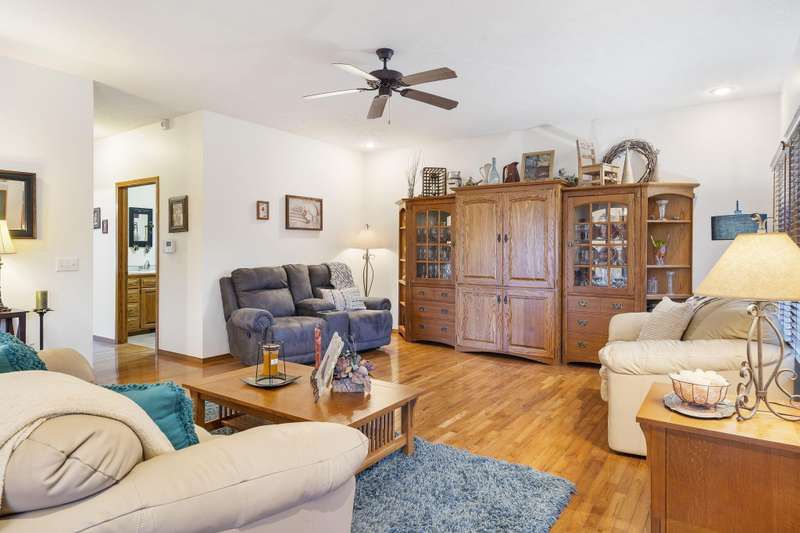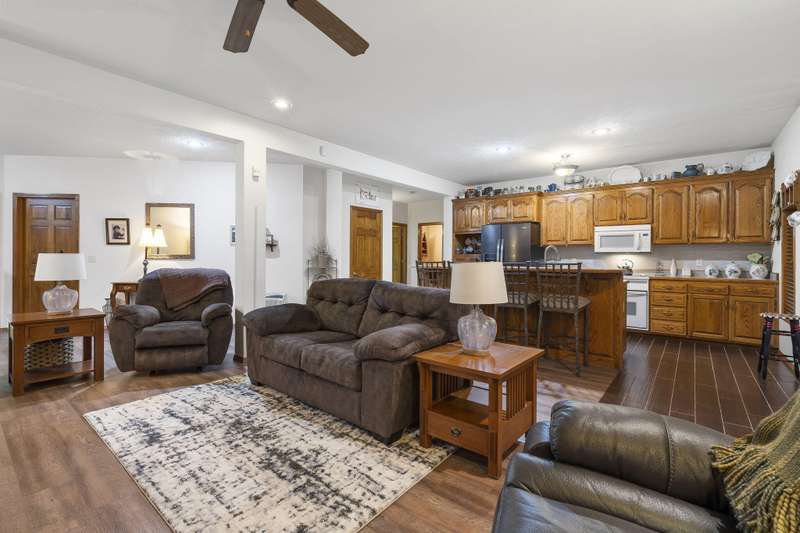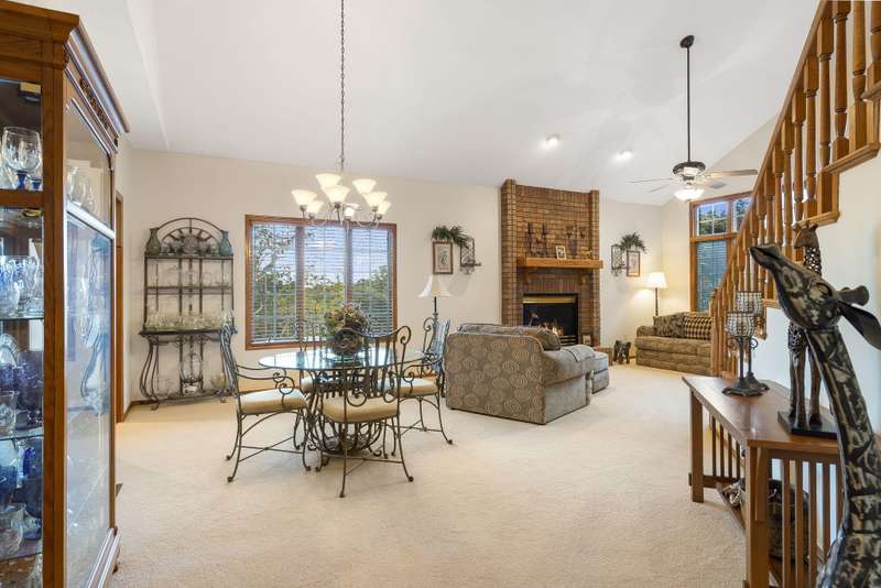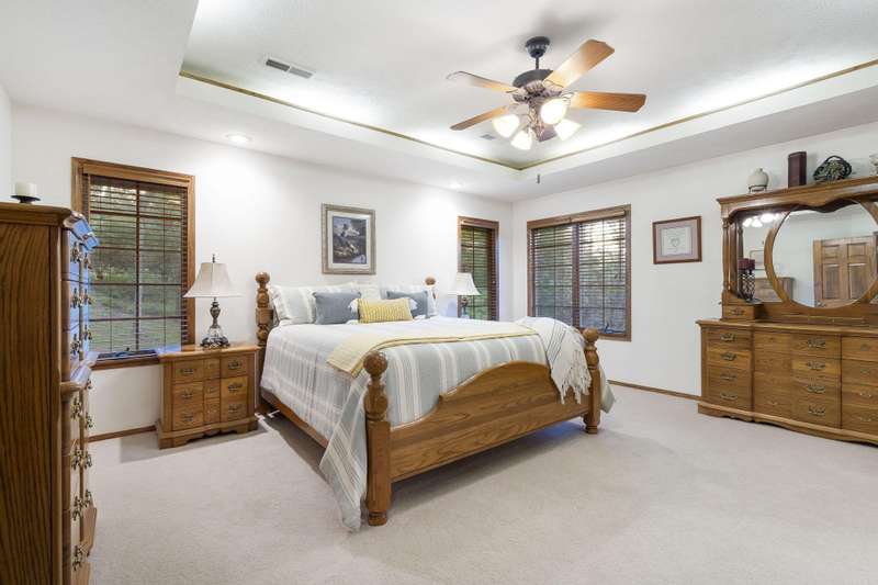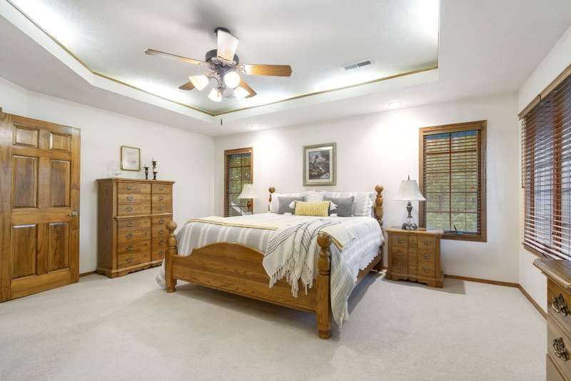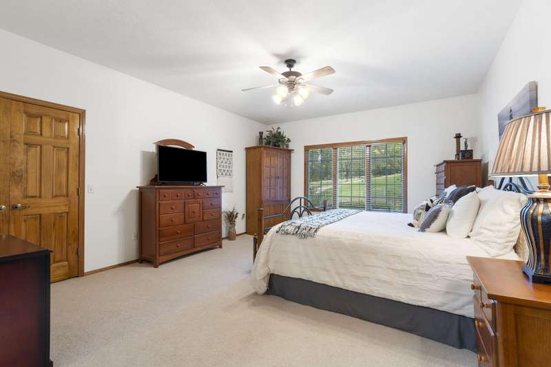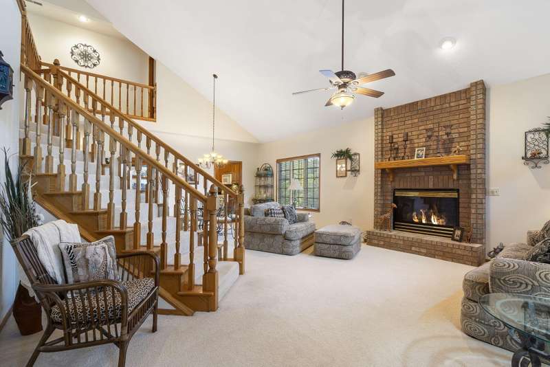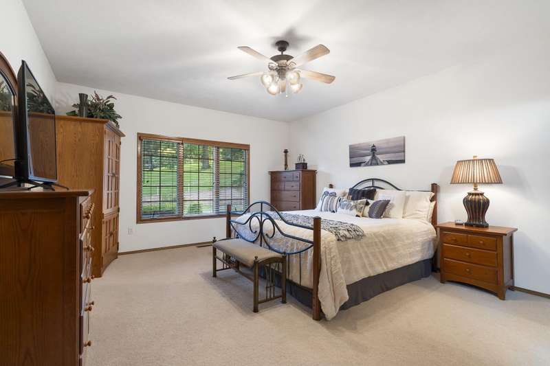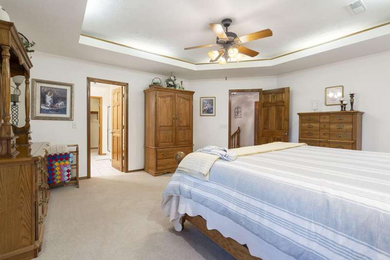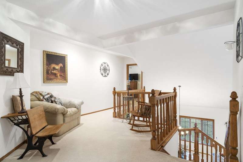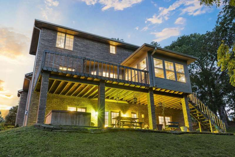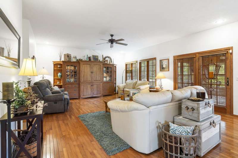 This magnificent 5-bedroom, 4-bath residence boasts a 2-car attached garage and a walk-out basement, nestled on an expansive 11-acre +- estate. Surrounded by breathtaking rolling hills, mature woods, and captivating water views, this home offers a private lake. The towering covered entry opens up to a grand living room, with soaring ceilings anchored by a floor-to-ceiling brick fireplace. Neutral tones and plush carpeting create a cozy ambiance with natural light from large windows. Ascend the grand staircase to the loft, overlooking the first floor. Here, you'll find a spacious master suite, offering panoramic views from surrounding windows, trayed ceilings with accent lights, and a private master bath with a double vanity, jetted tub, separate shower, and a generously sized walk-in closet. Adjacent to the loft is a charming second and third bedroom. On the main floor, an expansive kitchen awaits, featuring exquisite granite countertops, solid oak cabinets, and a built-in raised bar for convenient seating, all overlooking the dining area, framed by picturesque bay windows. High-end narrow plank hardwood floors flow seamlessly from the kitchen and dining area into the second living space, complete with recessed lighting, a wall flanked by windows, and French doors that open to an all-season enclosed porch with access to open-air decks on each side. Stairs lead to the lower deck, a covered patio with brick columns, a hot tub, and an entrance to the walk-out basement. The spacious basement boasts an oversized bedroom suite with trayed ceilings and a private bathroom. The shared basement bathroom offers a walk-in shower near a spacious fifth bedroom. The home also includes a versatile non-conforming room with ample storage space, a third open living area with a beautiful brick corner fireplace, and a large second full kitchen. With too many features to list, don't miss your chance to see this gorgeous esate!