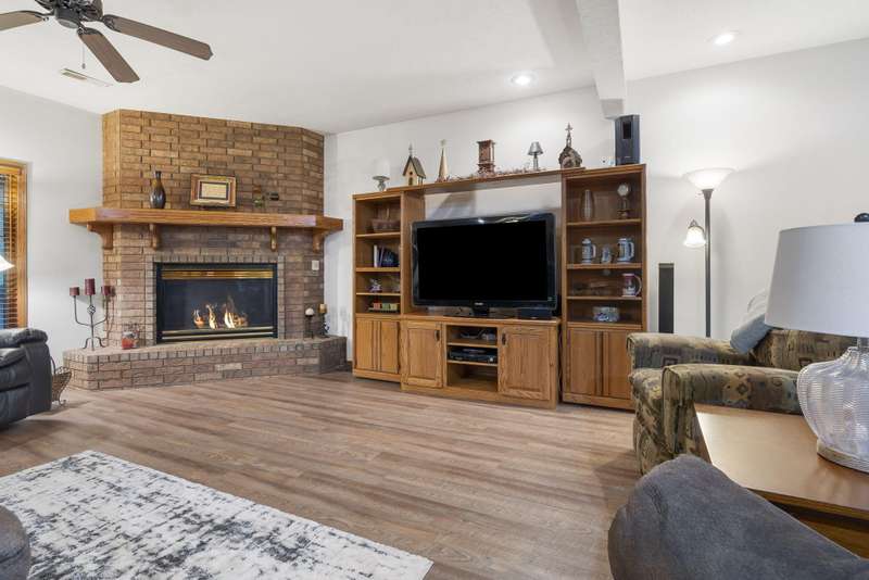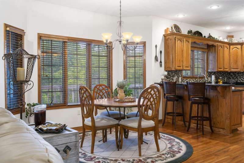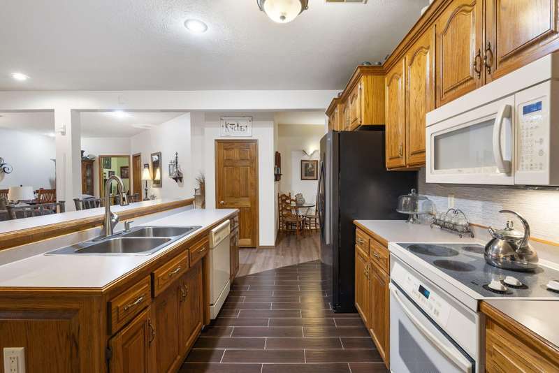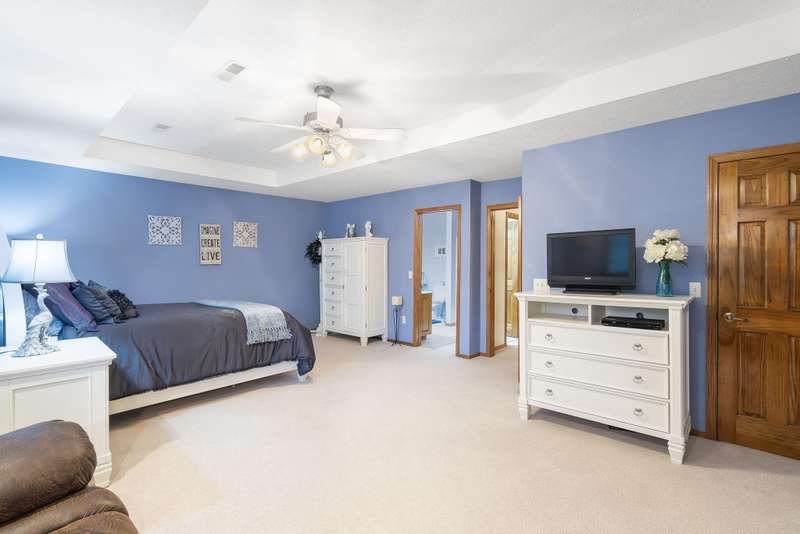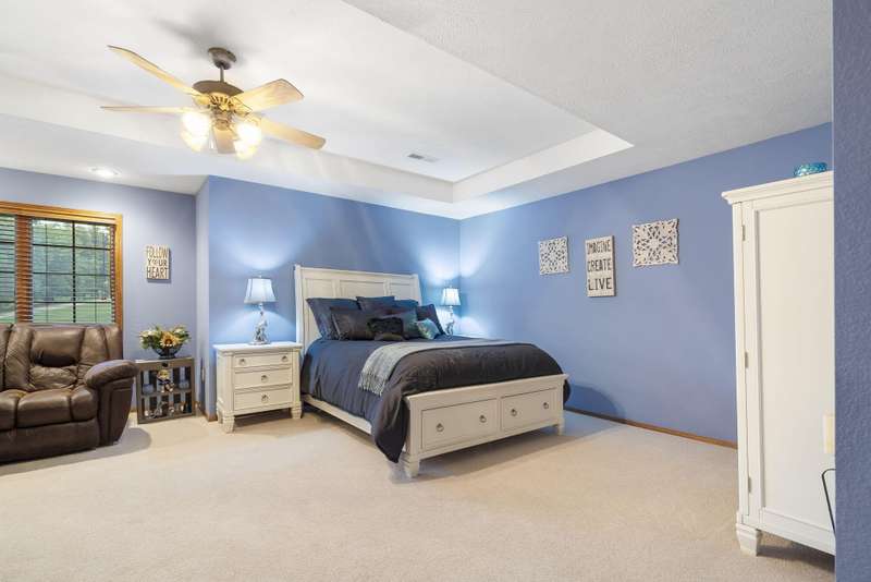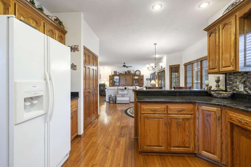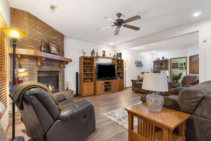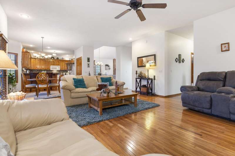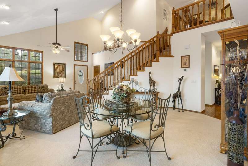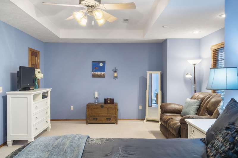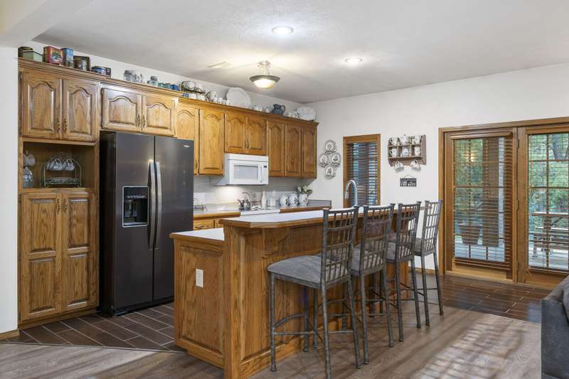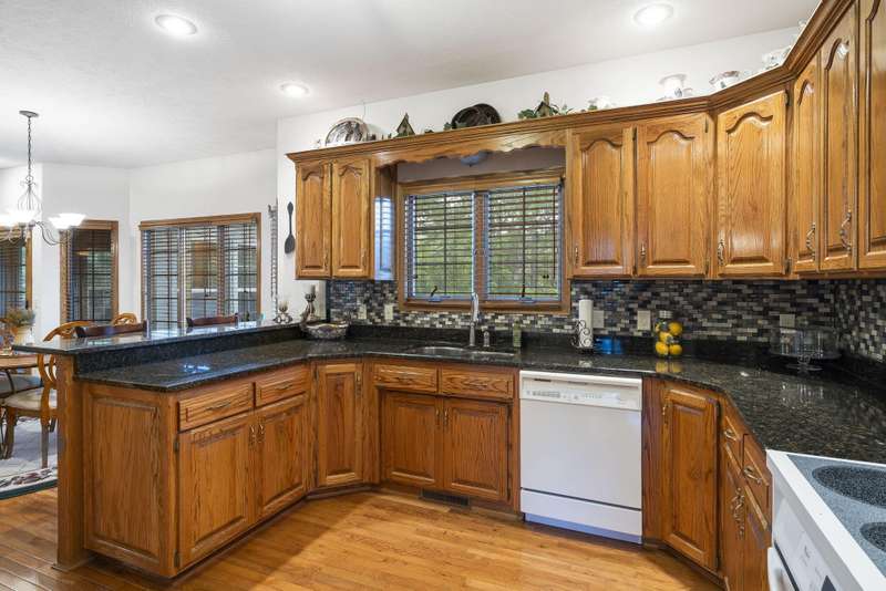 This magnificent 5-bedroom, 4-bath residence boasts a 2-car attached garage and a walk-out basement, nestled on an expansive 11-acre +- estate. Surrounded by breathtaking rolling hills, mature woods, and captivating water views, this home offers a private lake. The towering covered entry opens up to a grand living room, with soaring ceilings anchored by a floor-to-ceiling brick fireplace. Neutral tones and plush carpeting create a cozy ambiance with natural light from large windows. Ascend the grand staircase to the loft, overlooking the first floor. Here, you'll find a spacious master suite, offering panoramic views from surrounding windows, trayed ceilings with accent lights, and a private master bath with a double vanity, jetted tub, separate shower, and a generously sized walk-in closet. Adjacent to the loft is a charming second and third bedroom. On the main floor, an expansive kitchen awaits, featuring exquisite granite countertops, solid oak cabinets, and a built-in raised bar for convenient seating, all overlooking the dining area, framed by picturesque bay windows. High-end narrow plank hardwood floors flow seamlessly from the kitchen and dining area into the second living space, complete with recessed lighting, a wall flanked by windows, and French doors that open to an all-season enclosed porch with access to open-air decks on each side. Stairs lead to the lower deck, a covered patio with brick columns, a hot tub, and an entrance to the walk-out basement. The spacious basement boasts an oversized bedroom suite with trayed ceilings and a private bathroom. The shared basement bathroom offers a walk-in shower near a spacious fifth bedroom. The home also includes a versatile non-conforming room with ample storage space, a third open living area with a beautiful brick corner fireplace, and a large second full kitchen. With too many features to list, don't miss your chance to see this gorgeous esate!