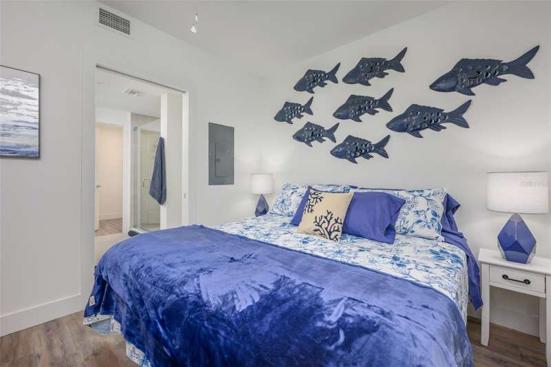 Newer condo available for weekly or monthly rental - conveniently located on Whitaker Bayou close to Indian Beach and Downtown Sarasota. Enjoy all of the amenities including a heated pool, spa, fitness center, BBQs and firepit area. Light and bright! The second bedroom serves as a lounge space, and the sofa easily converts to a queen size bed. The primary bedroom has a king size adjustable bed. The second bedroom has a queen size bed with a full bathroom next door. The balcony is perfect for lounging in the morning and evening. Enjoy all that Sarasota has to offer including the Jungle Gardens, the Ringling Museum, the Marietta Museum of Art & Whimsey and the Bayfront Park. ***Taxes and fees are not included.