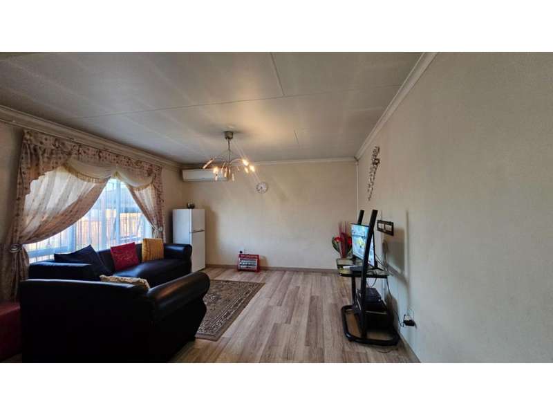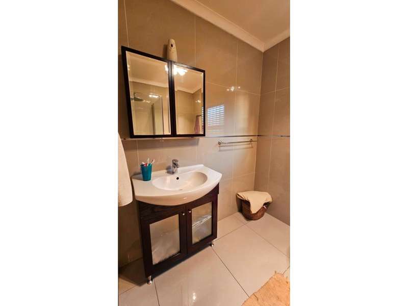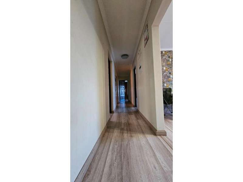 Welcome to this spacious and inviting property boasting three generous bedrooms, including a lavish main bedroom with an ensuite bathroom complete with all the amenities for relaxation and rejuvenation. Each bedroom features built-in cupboards, with the unique touch of a wardrobe passage seamlessly connecting the middle bedroom to the main bathroom. The family bathroom has undergone recent renovations, ensuring modern comforts and style. The heart of the home lies in its expansive kitchen, complemented by a convenient washing room also equipped with built-in cupboards. Parking is a breeze with a double garage and double carports providing ample space for vehicles. Security is paramount with an alarm system, beams, and air conditioning installed throughout the property. The living spaces are thoughtfully laid out, with a cozy lounge area adjoining a separate dining space, both distinct from the well-appointed kitchen. Outside, the property offers a sprawling yard with meticulously manicured lawns and mature trees, providing a serene backdrop for outdoor activities. A highlight of the outdoor area is the fireplace, perfect for gatherings and enjoying cool evenings under the stars. Even the garage doesn't miss out on functionality, featuring built-in cupboards for organized storage solutions. This property truly offers a harmonious blend of comfort, style, and functionality, making it the ideal place to call home.