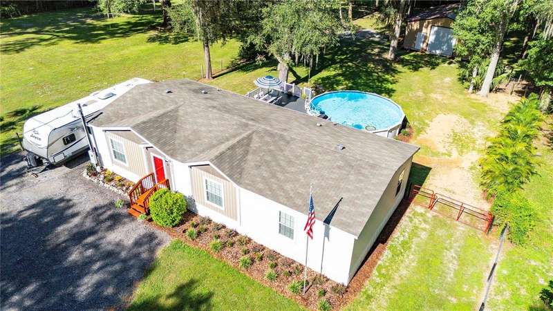 Lakefront Country Living at Its Finest!! Escape to 4.5 acres of peaceful lakefront beauty where every day feels like a retreat. This 2017-built 3-bedroom, 2-bath home features a split floor plan for privacy, a spacious kitchen with new stainless appliances perfect for gatherings, and a large master en suite with a soaking tub for ultimate relaxation. Recent updates — including new carpet, fresh paint, a 2020 pool with composite decking, and a new pool pump — make this home feel fresh and move-in ready. Step outside to enjoy beautifully landscaped grounds, an inviting pool area for summer fun, and plenty of space for entertaining. A 30x30 metal workshop with full power, 30-amp RV plug, electric gate, and classic board fencing combine functionality with timeless rural appeal. Wildlife lovers will appreciate the regular visits from turkeys and deer, and the lakefront setting offers endless opportunities for fishing, kayaking, or simply soaking in the peaceful water views. Whether you’re seeking outdoor adventure, room to roam, or a serene escape, this property delivers the lifestyle you’ve been dreaming of. 2 Parcels being sold together equally 4.5 acres. The vacant lot is cleared and partial impact fees have been paid.