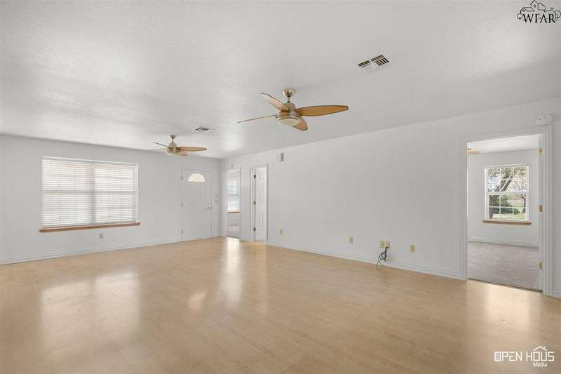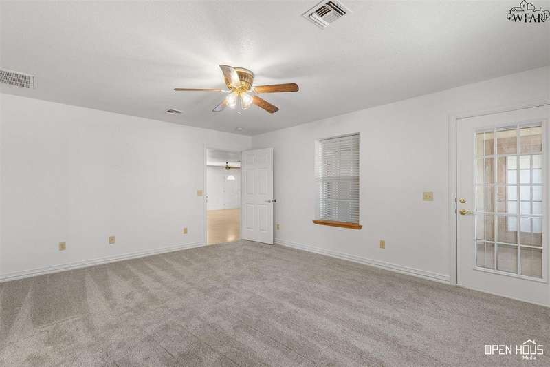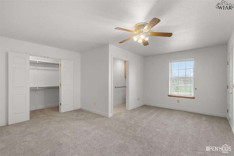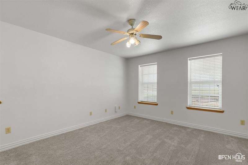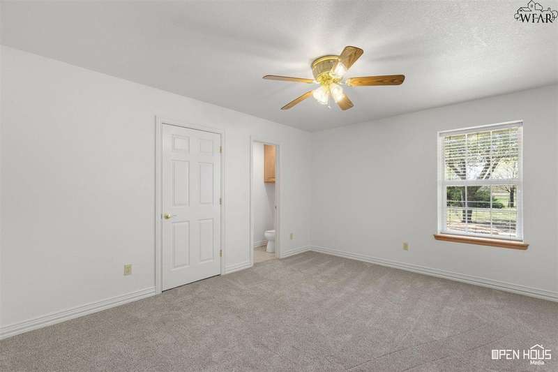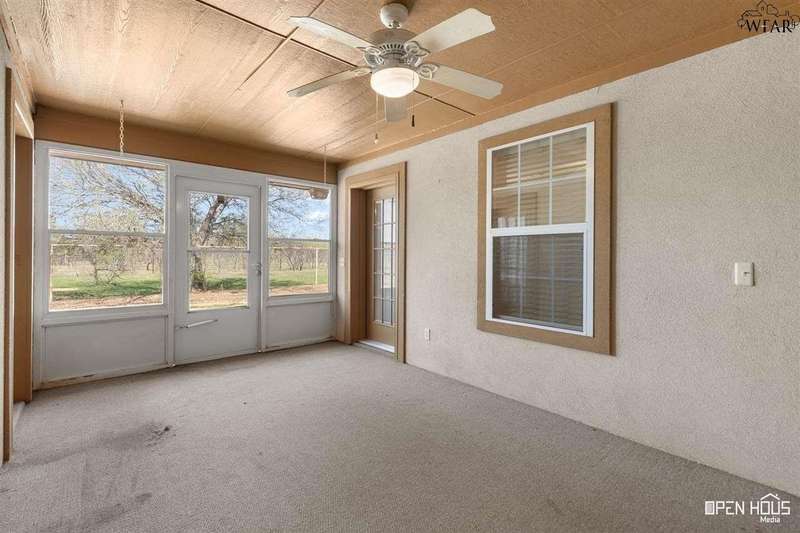 Rare 5 bedroom, 3 bath home in Iowa Park school district. Fresh paint throughout and new carpet in bedrooms. Isolated primary suite with large walk-n closet A commercial refrig and range are ready to feed your army! Enclosed patio serves as second living area. 20+ acres with livestock barns for your show animals, pets or horses. Super energy efficient with Geo-Thermal system. Large insulated shop with overhead door plus Conex container for waterproof storage. Country living just blks from city convenience.