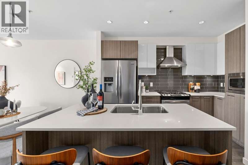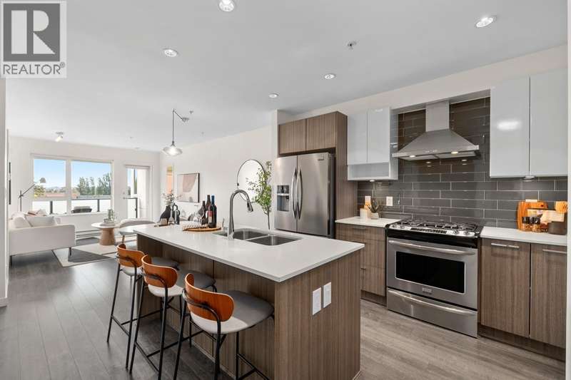 Bright and inviting 2 bed + den/storage, 2 bath condo at Main & 24th by Wesgroup! Offering 872 sqft of well designed living space. The open floor plan features a spacious kitchen with a large island, full size stainless-steel appliances including a gas stove, perfect for entertaining. East-facing on the quiet side of the building, the suite enjoys a treed outlook over the rooftops, mountain views and a large balcony. The bedrooms are separated for privacy, plenty of storage in-suite plus a locker. Comes with two parking stalls, visitor parking, and bike storage. Step outside to enjoy Main Street´s popular cafés, bakeries, and restaurants, all in a vibrant, walkable neighbourhood. Ideal for those seeking comfort, convenience, and a community feel in the heart of Vancouver. (id:58403)