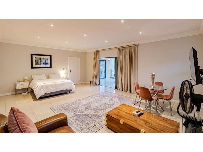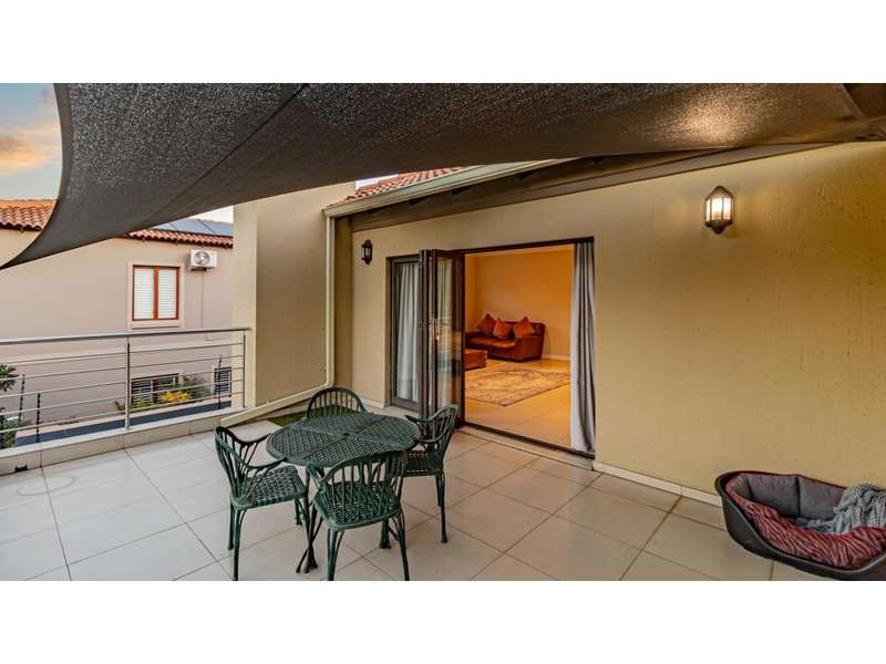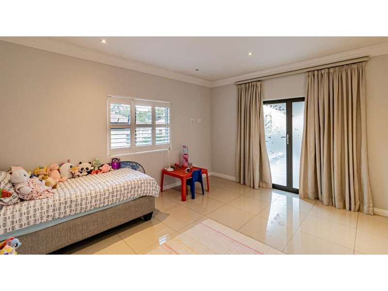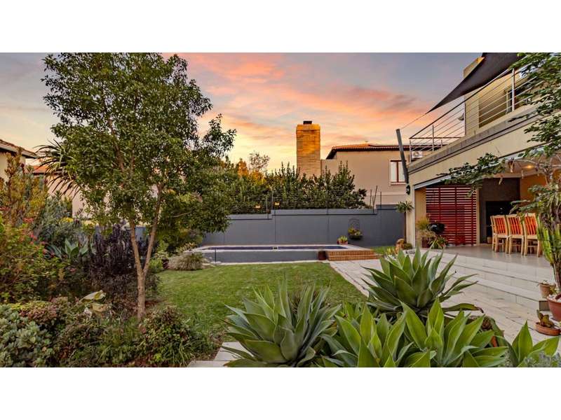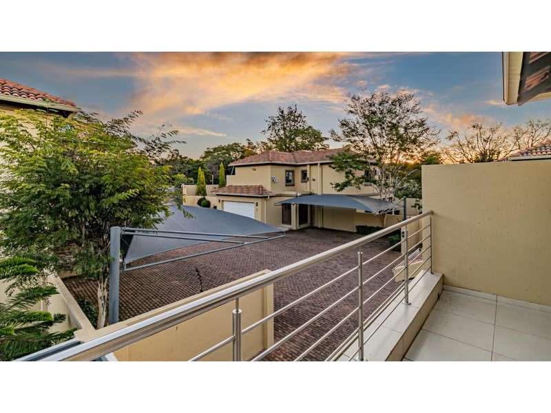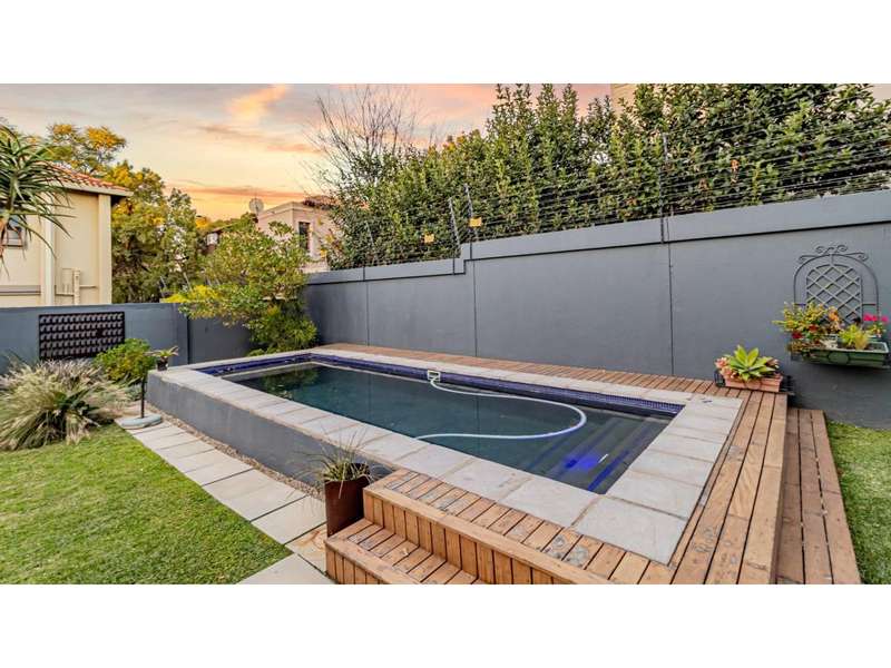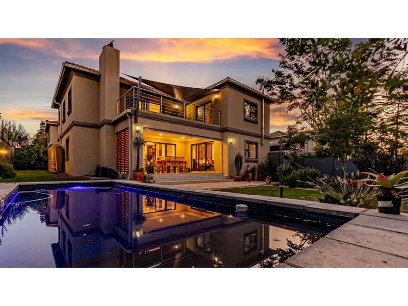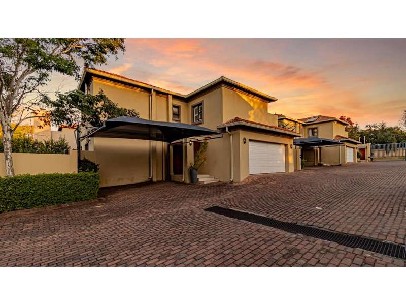 Tucked away in a private estate of only six residences, this stunningly crafted home seamlessly merges contemporary elegance with peaceful natural surroundings. The interior boasts high-end finishes, with a sophisticated interplay of white and natural wood tones creating a modern, inviting ambiance. Upon entering, an open-plan living area welcomes you, featuring a stylish TV room with grated wooden slat panels and a warm fireplace, which opens onto a covered patio?Çöideal for effortless indoor-outdoor living. The cutting-edge kitchen, complete with a gas stove, white granite countertops, high-gloss cabinetry, and light wood accents, blends form and function. A separate scullery provides space for two appliances and a double-door fridge, with easy access to the backyard. The expansive dining area, adjacent to the kitchen, flows through stacking doors to the covered patio, perfect for hosting gatherings. Beyond, a shimmering pool is surrounded by a beautifully landscaped, low-maintenance garden, designed for year-round allure. Ascending to the upper level, three spacious ensuite bedrooms offer both comfort and seclusion. The primary suite serves as a luxurious haven, with an expansive design, a walk-in wardrobe, and a private balcony offering serene views of the verdant landscape below?Çöperfect for savoring a morning brew or unwinding as the sun sets. The two additional bedrooms are thoughtfully designed, each equipped with built-in wardrobes and modern bathrooms, ensuring personal retreats for all household members. A standalone, generously sized staff room or flatlet, complete with its own entrance and parking, offers flexibility as a potential fourth bedroom or home office, catering to diverse lifestyle needs. With a guest bathroom, plentiful storage, and a north-facing orientation that floods the home with natural light, this property is a rare treasure in an exclusive, secure enclave. A must-see for those seeking refined living.