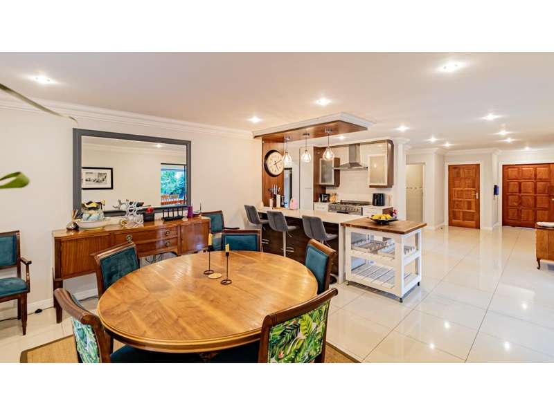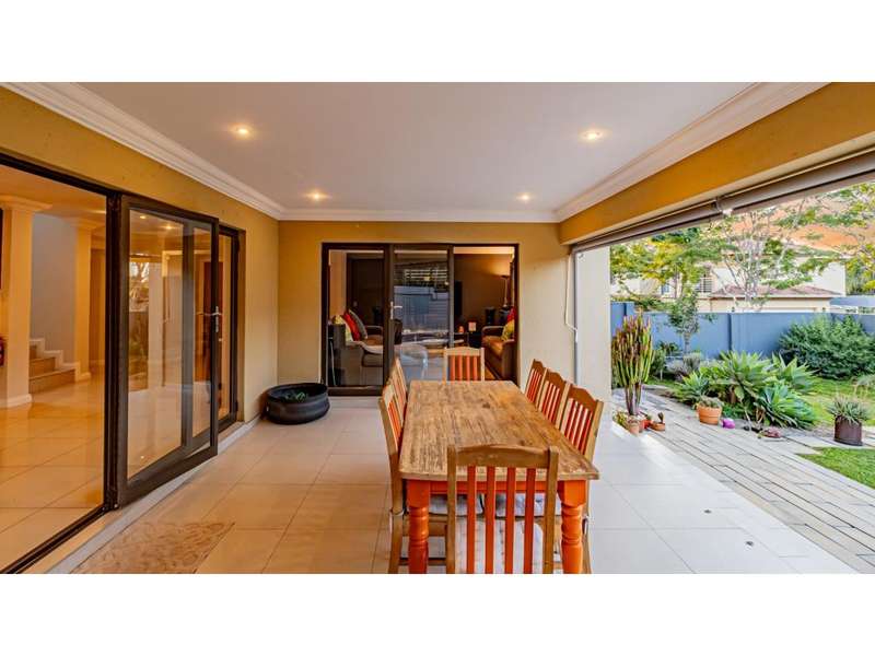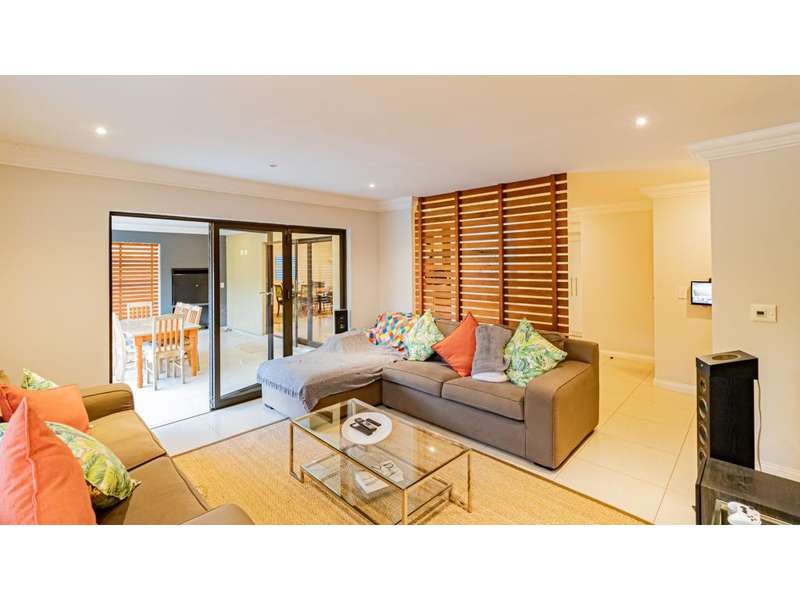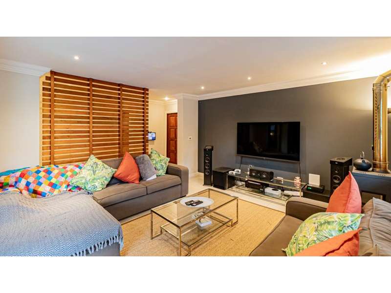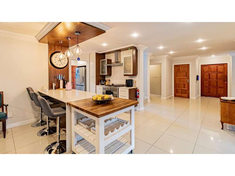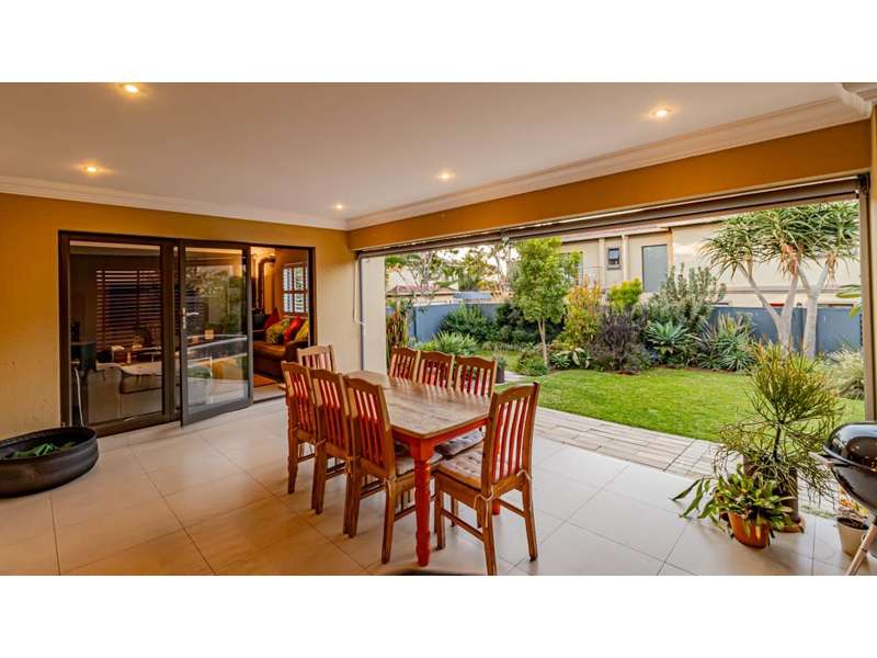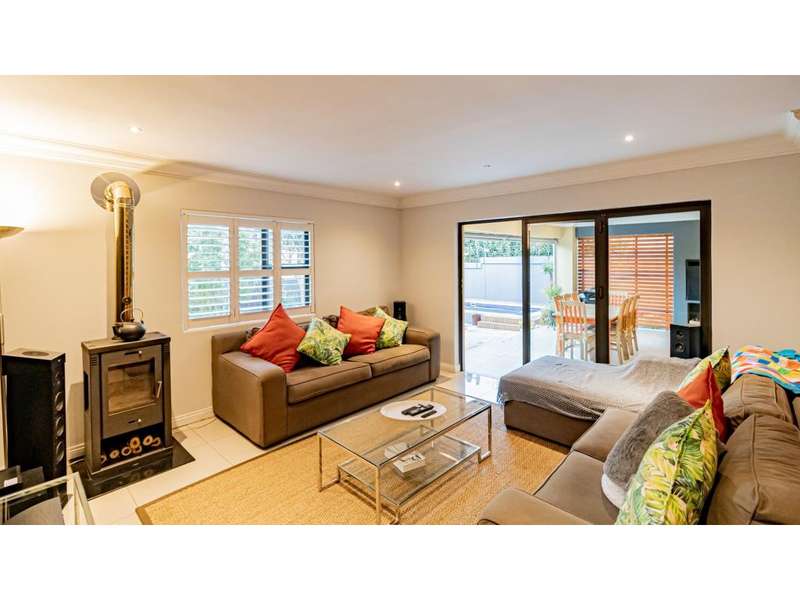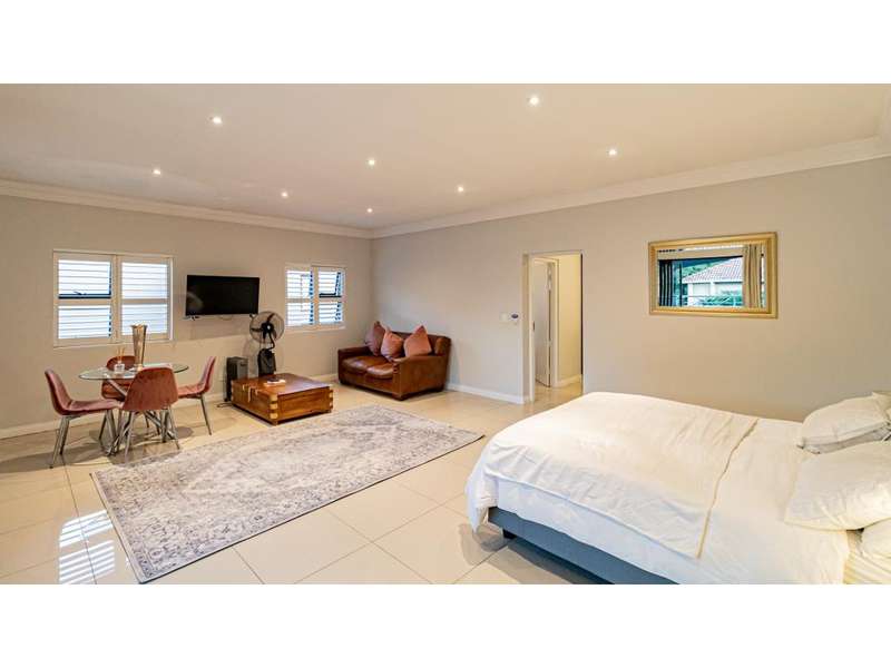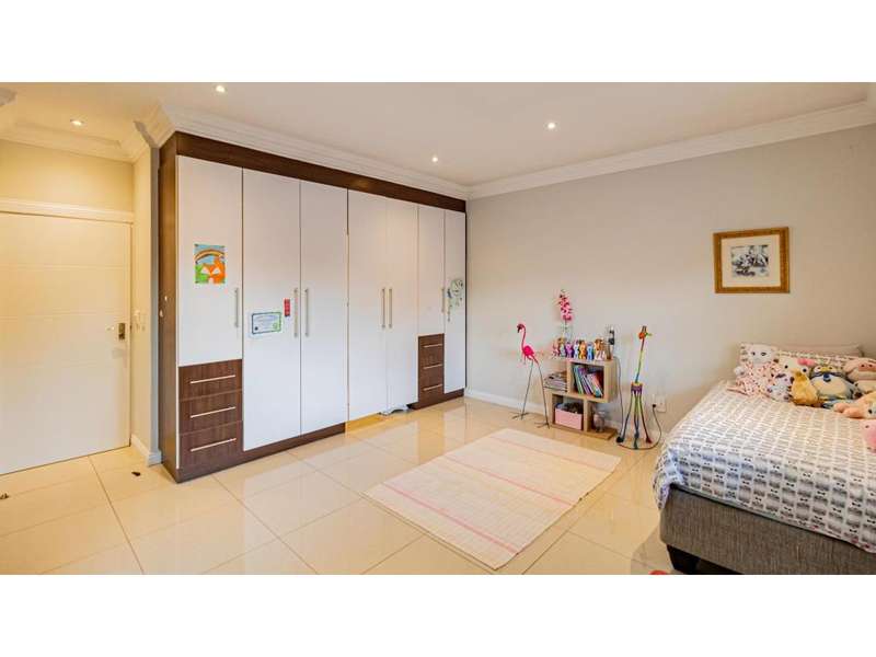 Tucked away in a private estate of only six residences, this stunningly crafted home seamlessly merges contemporary elegance with peaceful natural surroundings. The interior boasts high-end finishes, with a sophisticated interplay of white and natural wood tones creating a modern, inviting ambiance. Upon entering, an open-plan living area welcomes you, featuring a stylish TV room with grated wooden slat panels and a warm fireplace, which opens onto a covered patio?Çöideal for effortless indoor-outdoor living. The cutting-edge kitchen, complete with a gas stove, white granite countertops, high-gloss cabinetry, and light wood accents, blends form and function. A separate scullery provides space for two appliances and a double-door fridge, with easy access to the backyard. The expansive dining area, adjacent to the kitchen, flows through stacking doors to the covered patio, perfect for hosting gatherings. Beyond, a shimmering pool is surrounded by a beautifully landscaped, low-maintenance garden, designed for year-round allure. Ascending to the upper level, three spacious ensuite bedrooms offer both comfort and seclusion. The primary suite serves as a luxurious haven, with an expansive design, a walk-in wardrobe, and a private balcony offering serene views of the verdant landscape below?Çöperfect for savoring a morning brew or unwinding as the sun sets. The two additional bedrooms are thoughtfully designed, each equipped with built-in wardrobes and modern bathrooms, ensuring personal retreats for all household members. A standalone, generously sized staff room or flatlet, complete with its own entrance and parking, offers flexibility as a potential fourth bedroom or home office, catering to diverse lifestyle needs. With a guest bathroom, plentiful storage, and a north-facing orientation that floods the home with natural light, this property is a rare treasure in an exclusive, secure enclave. A must-see for those seeking refined living.