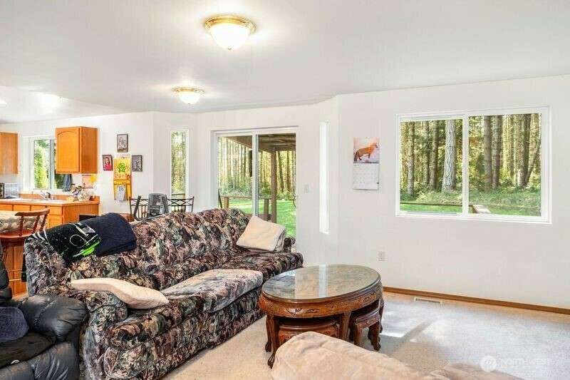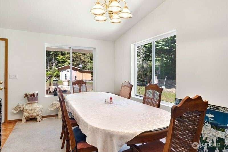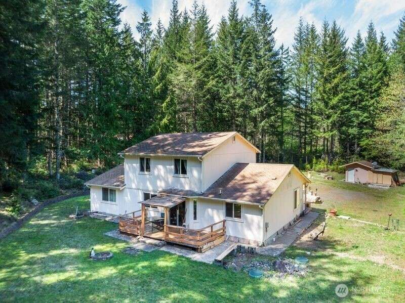 This beautifully designed, sun-drenched home embodies the best of Northwest living. Located on 5 serene acres, the 3-bedroom, 3-bathroom home offers a spacious bonus room- ideal for an office gym, or creative space. Built in 2006, the home features an open-concept layout, with a main-level primary bedroom, that includes a large ensuite bathroom and walk-in closet. Upstairs, you'll find two additional bedrooms, a full bathroom, and flexible bonus area perfect for a second living room or cozy retreat. With expansive front and back yards, there's plenty of room to bring your vision to life. Just minutes from downtown and Quilcene Bay, this property offers the perfect balance of privacy and convenience.