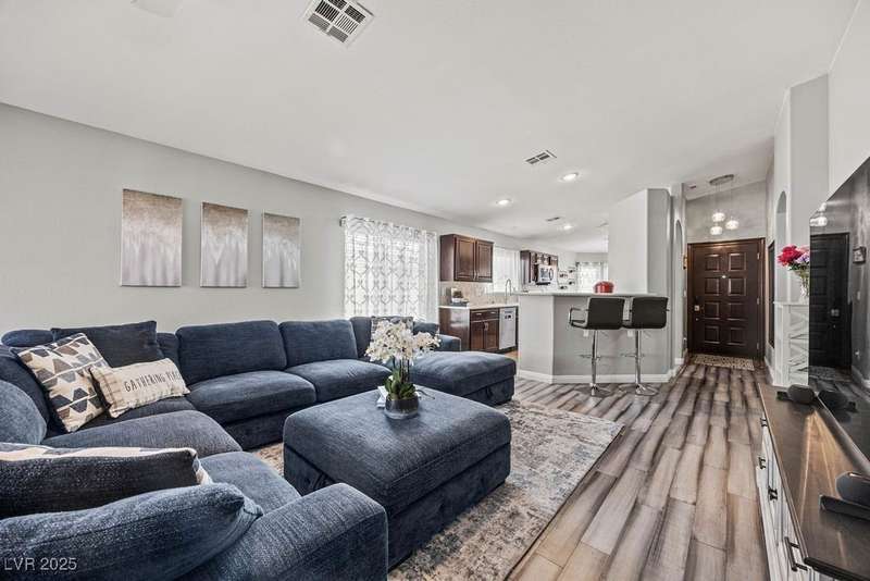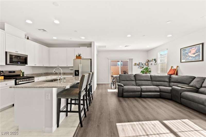 Welcome home! This gorgeous, newer 3-bedroom plus den residence in the master-planned community of Cadence truly has it all, starting with fantastic curb appeal. The home features airy 9ft ceilings throughout, creating a bright and open atmosphere. The centrally located, open-concept kitchen is a chef's dream, boasting stylish white soft-close cabinets, 42-inch uppers, elegant crown molding, and upgraded granite countertops and stainless steel appliances. Enjoy the brand new LVP in the living area, blinds throughout and an upgraded walk-in marble shower in the primary bathroom for a touch of luxury. Beyond the comforts of your new home, you'll also be able to enjoy the beautiful community amenities that Cadence offers, including a refreshing pool, relaxing spa, fitness center, pickleball courts, a dedicated pet park, and a fun playground.