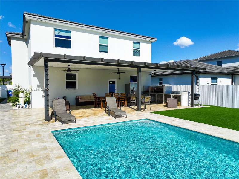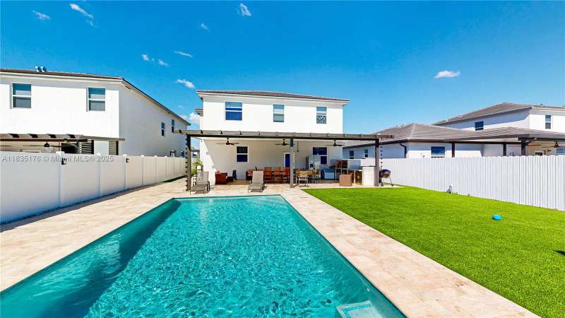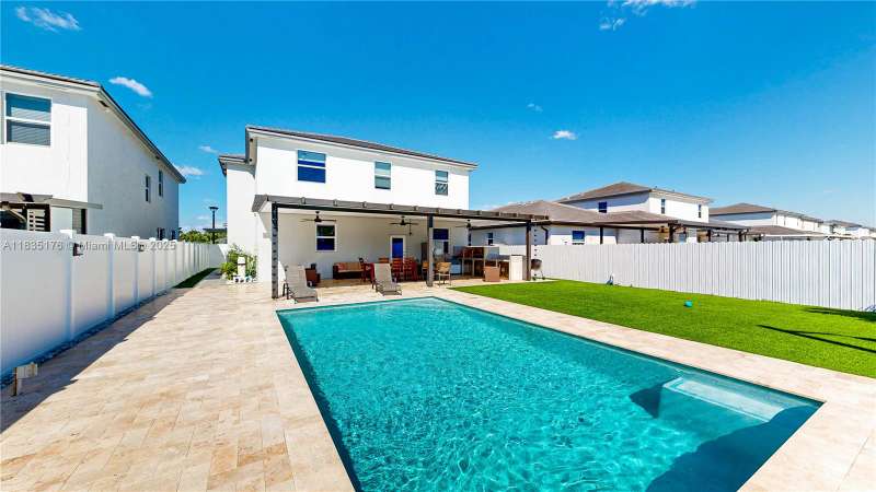 Stunning new construction 4-bedroom, 2.5-bath single-family home with NO HOA in desirable Siena North! This modern residence features a spacious open-concept layout with a bright, airy great room, impact windows, and a stylish kitchen with stainless steel appliances, quartz countertops, and an island. Upstairs is the master suite, three additional bedrooms, and a designated laundry room. 2-car garage with extended driveway for extra parking. Step outside to your private retreat—a spacious, fully fenced backyard with a sparkling saltwater pool, patio, oversized modern gazebo, and built-in outdoor kitchen. Minutes from top-rated schools, parks, shopping, dining, Southland Mall, and with easy access to Florida’s Turnpike and US-1. Enjoy an immersive 3D virtual tour. May the Force be with you!