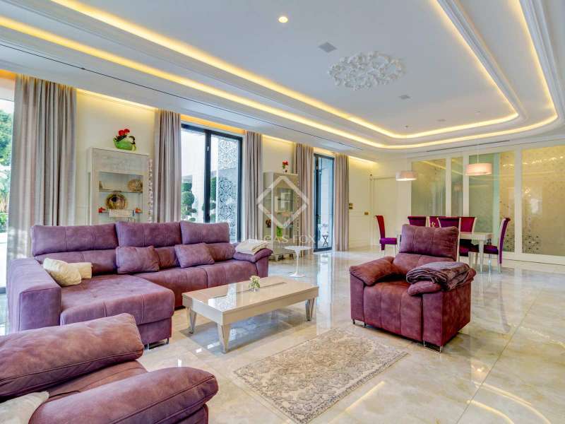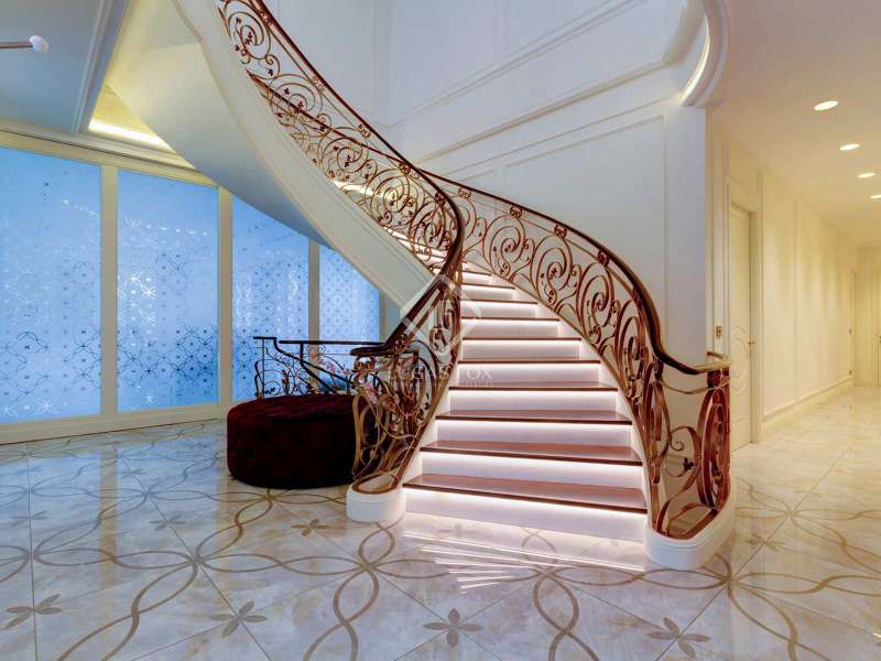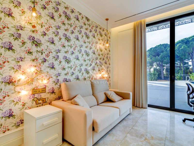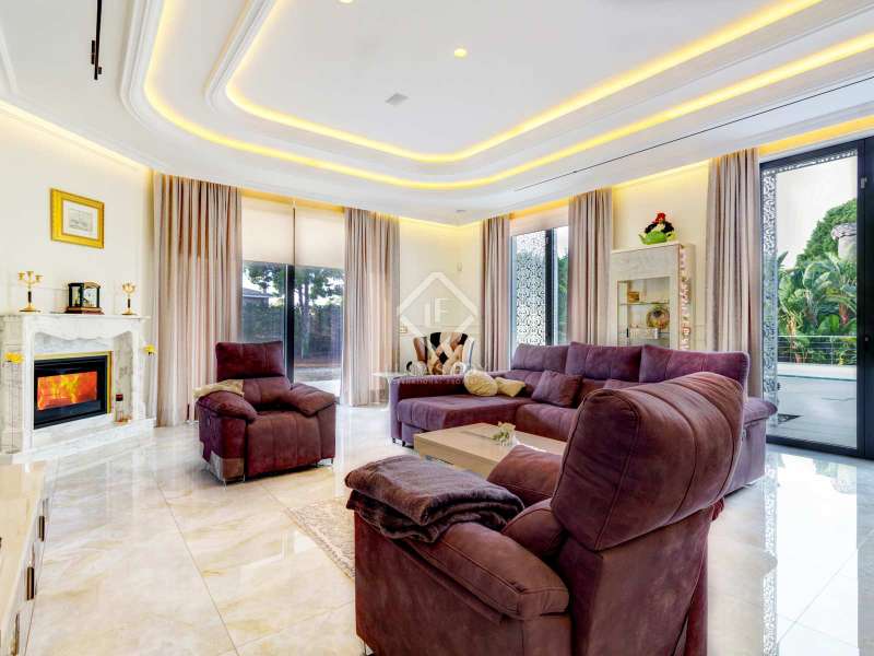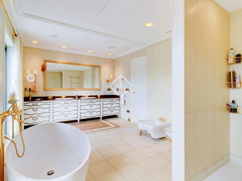 The house has a built surface area of 1,229 m², distributed over three floors and with a magnificent terrace with a porch with a pool, on a 2,025 m² plot. Crossing a small garden area, we find the access to the property at one end of the front façade. The hall offers us an imposing helical staircase in ascent and descent. In the right wing, we find the lift that connects with the rest of the floors and a corridor that leads to a spacious and bright kitchen, with a dining area and access to the central terrace, a double bedroom, a storage room, a complete bathroom and the two car garage. At the other end of the floor, a 90 m² living-dining room with a fireplace and access to the terrace complete the interior. The first floor continues to be structured around the central axis of the staircase and its hall. The right wing is an apartment that enjoys a high level of privacy. A corridor connects the different rooms of the apartment: a study, a large bathroom with a bathtub and shower, and a bedroom with a seating area. These three rooms have access to a terrace overlooking the pool and three dressing rooms. In the left wing, a corridor with built-in wardrobes along its entire length gives access to two double bedrooms and a complete bathroom. All rooms also have access to the terrace. The lower ground floor has a room for machines and a large room of more than 100 m², including a wet area, suitable for multipurpose functions such as a games room, gym or cinema room. The exterior of the property has a landscaped perimeter corridor that opens to the southeast, with the large sunny terrace with pool as the central element and an esplanade of almost 1,000 m² with direct access for vehicles. A unique opportunity to acquire a villa with exclusive architecture and finishes in one of the most prestigious areas of the Costa Dorada.