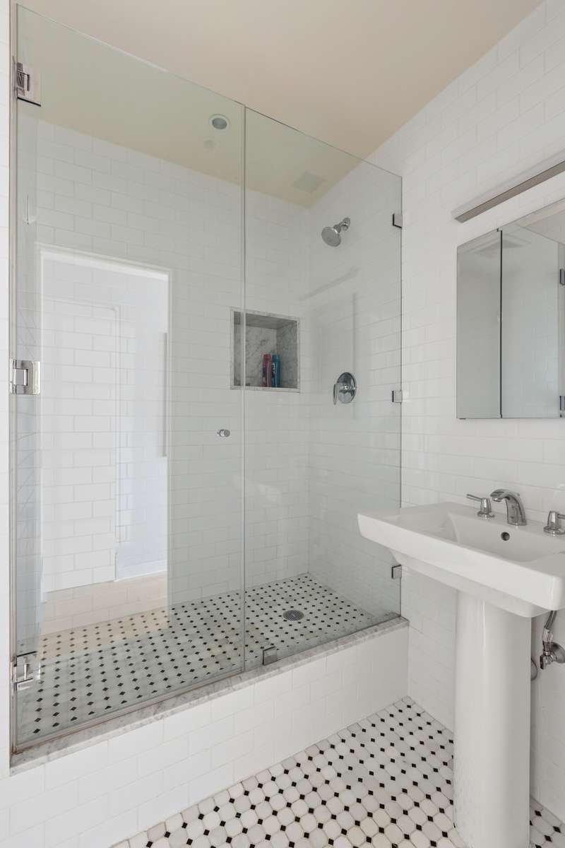 Thoughtfully designed for privacy, both bedrooms have en-suite baths and generous closet space, positioned on opposite sides of the loft. Enter the primary suite through a salvaged freight elevator door from the original manufacturing space, where you'll find 14" ceilings, a skylight, a sitting area perfect for a home office or dressing room, a walk-in closet, and a luxurious marble bath with a deep soaking tub.