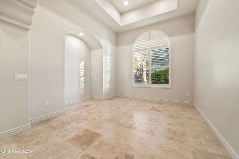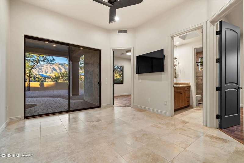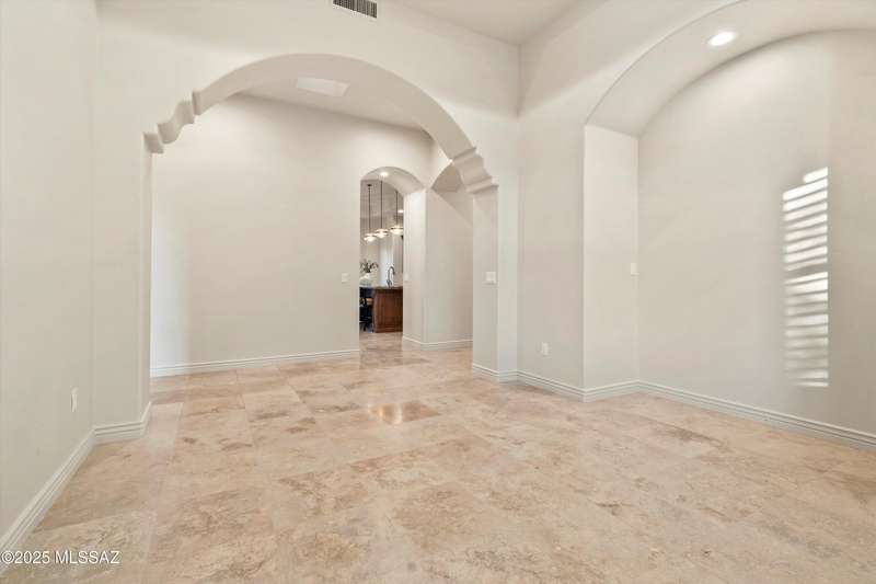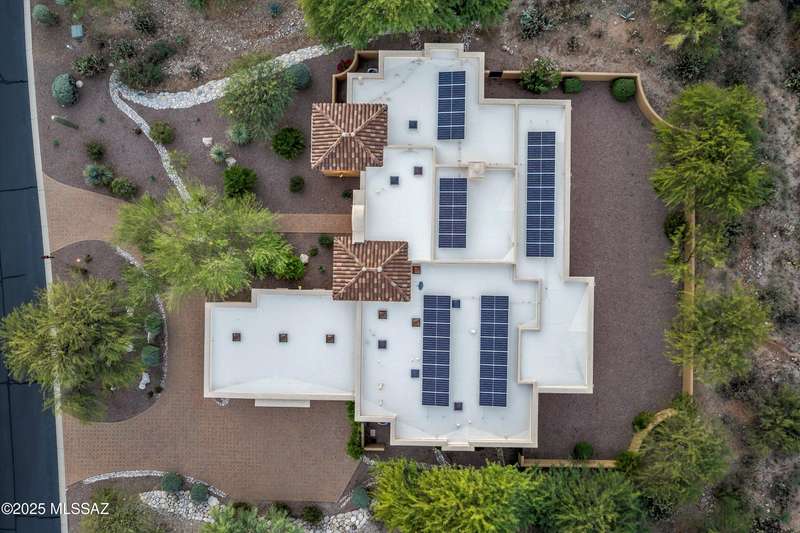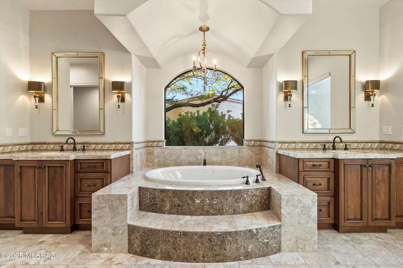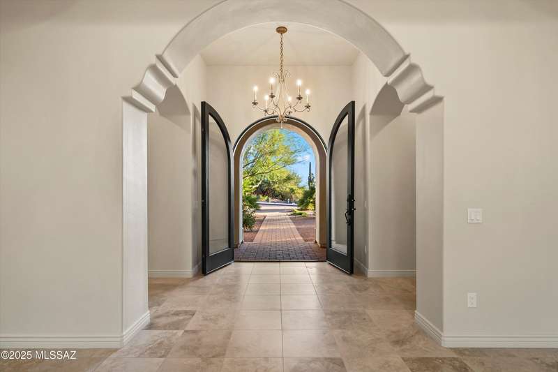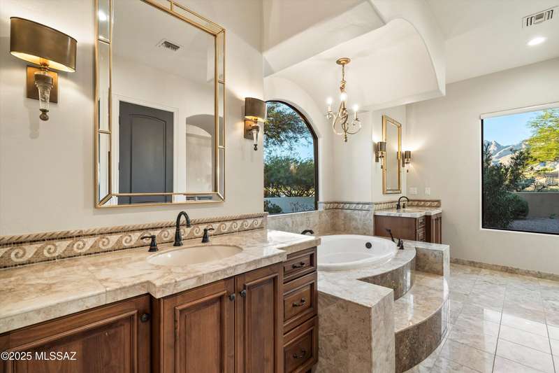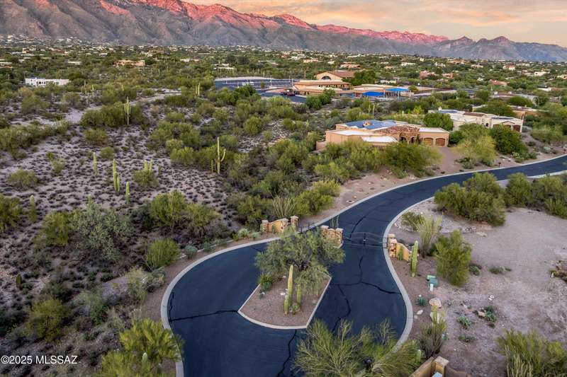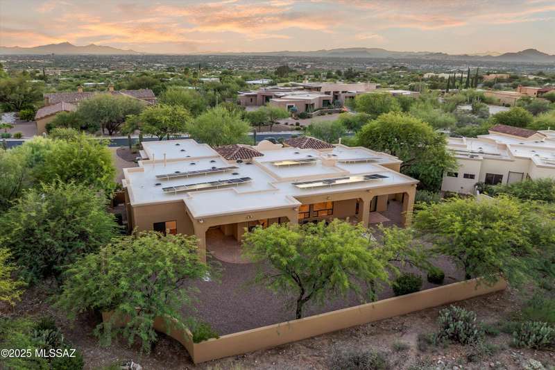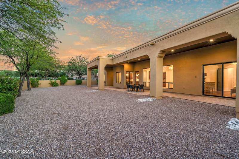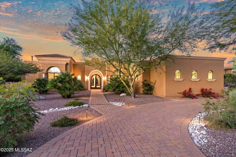 Nestled in the exclusive gated enclave of Villa Toscana, this one-story residence features a gourmet kitchen equipped with top-of-the-line Wolf and Sub Zero appliances, perfect for culinary enthusiasts. The sensational Master Suite boasts luxurious marble finishes and a spacious walk-in closet. Enjoy energy efficiency with owned solar panels, enhancing your lifestyle while reducing utility costs. The home is adorned with travertine floors, 8'' doors, granite surfaces, and a stunning circular drive for arriving guests. Experience quiet luxury in this desirable location close to all of the Tucson Foothills amenities.