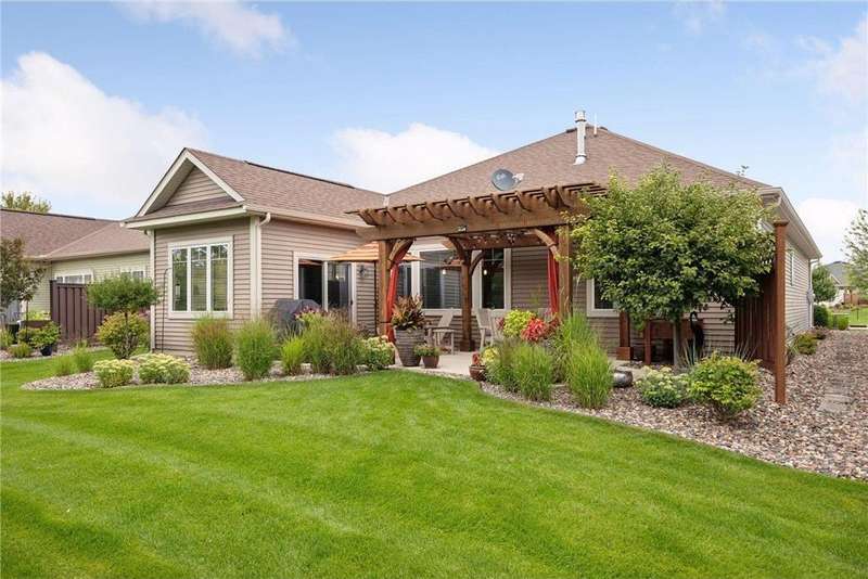 A carefree, one-level lifestyle is waiting for you in Whispering Hills. This detached villa offers a stunning layout of three bedrooms, two bathrooms and a vaulted sunroom. The sliding glass door opens to a charming patio with a pergola and beautiful landscaping. Enjoy an open kitchen layout with NEW stainless-steel appliances, a walk-in pantry and a center island with upgraded countertops & backsplash. Luxury vinyl flooring carries into the family room with ambiance of a gas fireplace. The primary suite showcases a tray ceiling, plush new carpeting, a spacious walk-in closet and a private ¾ bathroom. Notice the luxury of Quartz countertops, refreshed mirrors, new flooring and a tiled shower stall. Down the hall you’ll find a full bathroom and two additional bedrooms. The front bedroom offers multipurpose use as a den or office. The laundry room has convenience of a utility sink and easy access to the two-stall garage. The upgrades continue here with epoxy floors, extra workspace and bonus walk-up storage in the attic. The association dues cover lawn care, snow removal and sanitation service for you. Come fall in love with this sought-after community, its convenient highway access and its close proximity to the Minnesota Landscape Arboretum and lovely downtown Victoria.