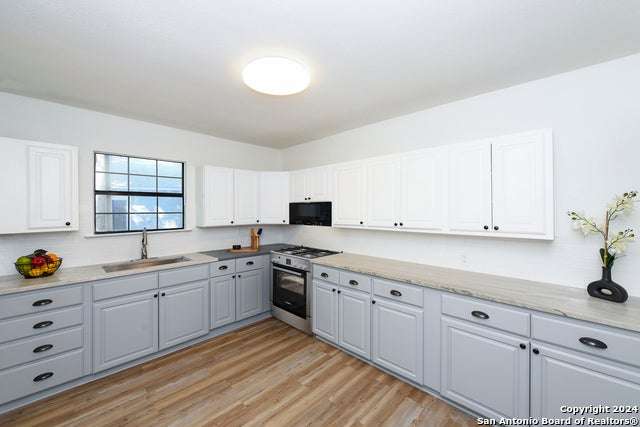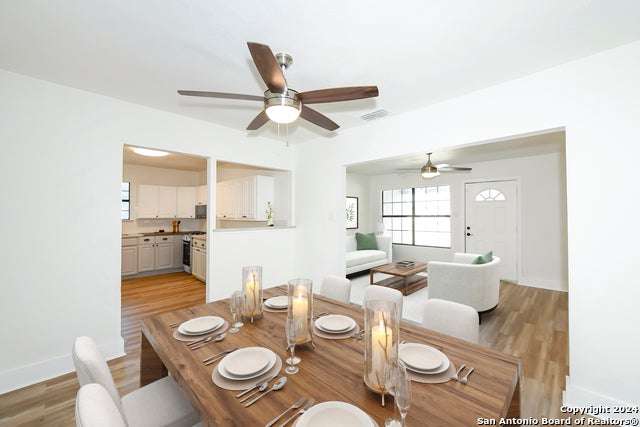 Welcome to this beautifully renovated one-story home featuring 4 bedrooms, 2 bathrooms and a yard with plenty of space for entertaining. Inside, you have a kitchen with plenty of counter top and cabinet storage space. Each room spacious and bathed with natural light. The spa-like primary bath includes a walk in shower and double vanity. The list of updates is extensive, including a new roof, siding, fresh paint, luxury vinyl flooring, modern fixtures, ceiling fans in all rooms and so much more.This home is located north of Downtown and just a few miles away from tons of fun and shopping. San Antonio Zoo, Brackenridge Park, Botanical Gardens and Alamo Quarry Market to name a few.
