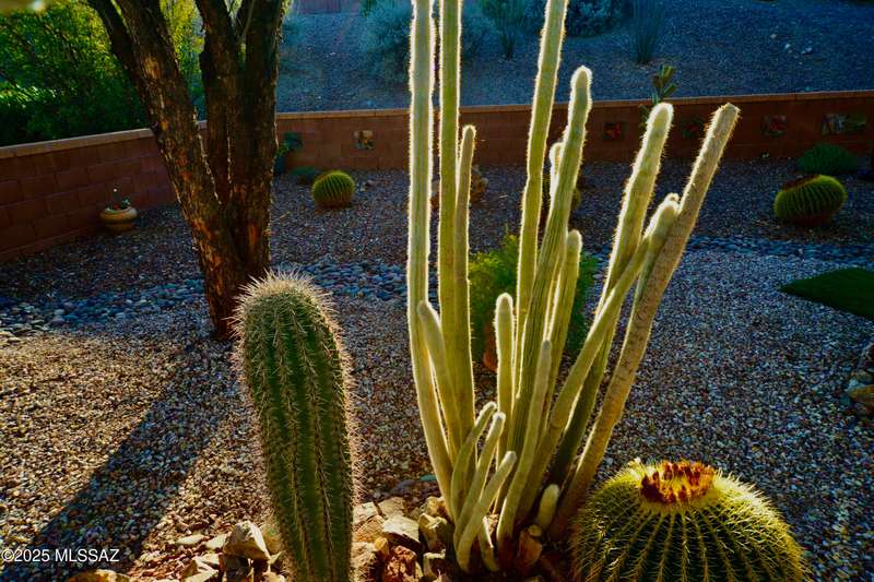 Step into this exceptional artistic residence, a true oasis of character & beauty. This 1,678 sq. ft., 2 bed+ den home, is a masterpiece both inside & out. From the moment you approach the stunning southwest custom copper front door, you'll be captivated by the unique details that make this home one-of-a-kind! The kitchen boasts bespoke countertops & live edge wood shelves, creating a perfect blend of southwest charm & modern flair. The primary bedroom & bath are a harmonious blend of modern elegance, feminine sophistication & masculine strength. Enjoy the backyard oasis, complete with mature trees, distinctive cactus, artificial grass & ornamental enhancements that enhance its natural beauty. Every inch of this home has been thoughtfully designed with artistic style & elegant whimsy