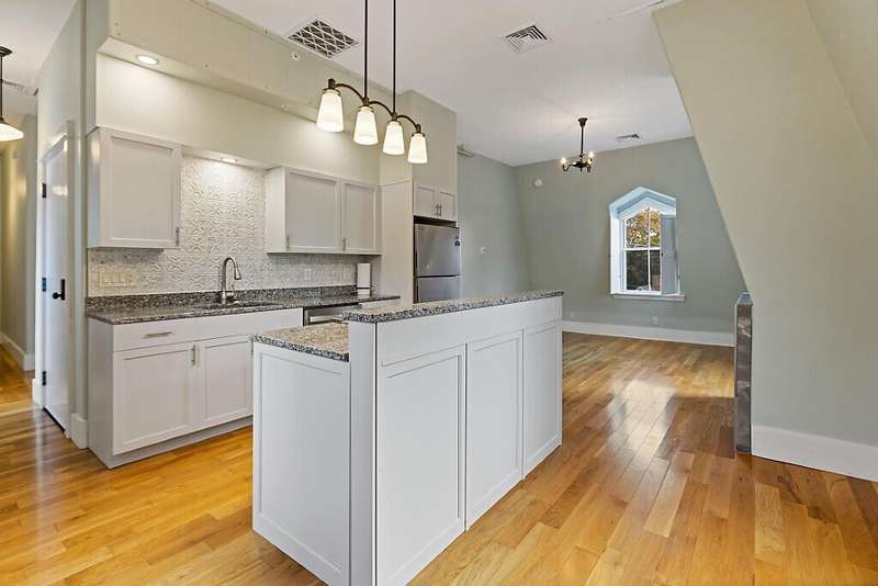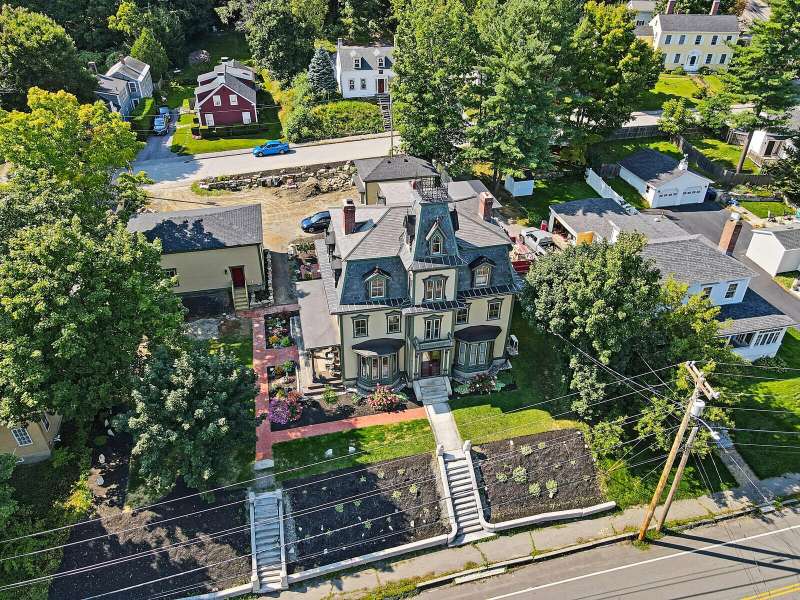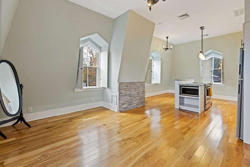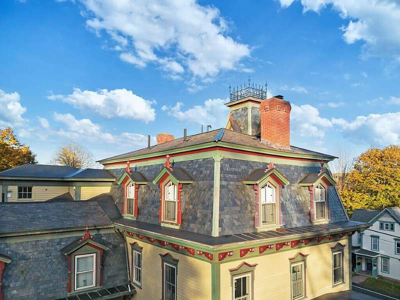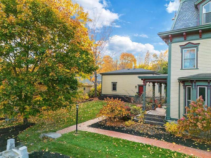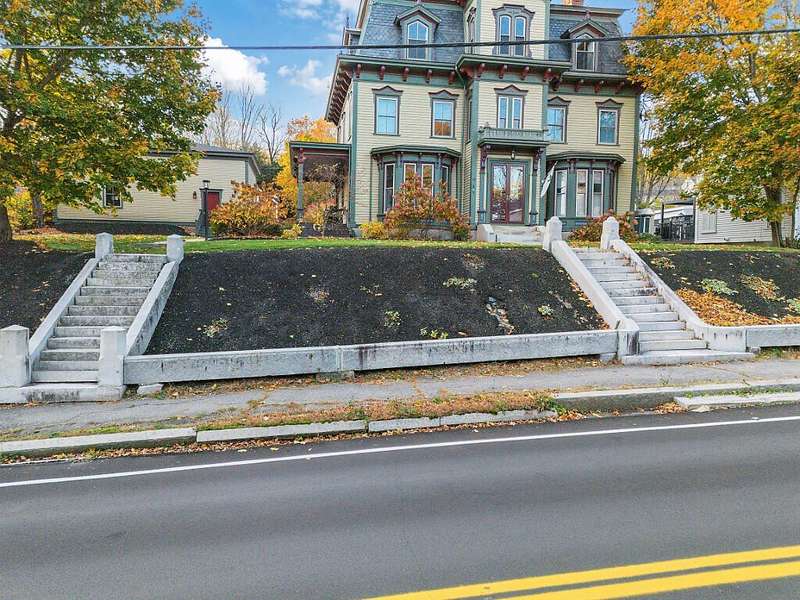 Welcome to one of Hallowell's most iconic and photographed historic homes, once owned by Joseph Bodwell, a former Governor of Maine and founder of Hallowell Granite Works. This architectural gem has been meticulously restored, honoring its rich heritage while embracing contemporary living. This top-floor unit offers the most privacy and is the most light-filled of all. You will enjoy its airy, flowing layout with soaring cathedral ceilings and oversized windows that bathe the space in natural light throughout the day. Premium finishes include gleaming hardwood floors, granite countertops, and a beautifully renovated bathroom with stacked laundry. The open-concept kitchen flows seamlessly into the dining and living areas, creating an inviting space for entertaining or relaxing. The bedroom features exposed brick, large windows, and a warm, intimate ambiance. In addition to the formal entrance, the back stairwell includes built-in coat and shoe storage. Ascend the custom cherry staircase to the widow's watch, a unique loft space with panoramic 360° views of downtown Hallowell and the Kennebec River. It's perfect as a guest suite (fits a queen bed), home office, reading nook, or creative studio. Other features include energy-efficient heating and cooling via natural gas and heat pump, a one-car end bay in the garage with extra storage space along the wall and ample second-level storage, a professionally landscaped and maintained shared courtyard with brick pathways, vibrant trim details, and a classic slate roof. Call Tyler Gaudet at Sprague & Curtis at 207-623-1123.