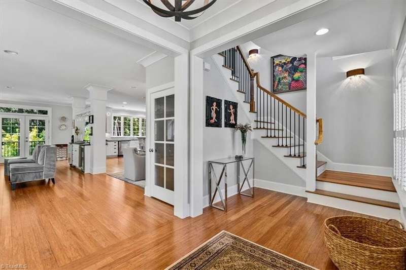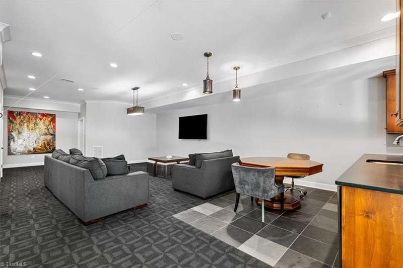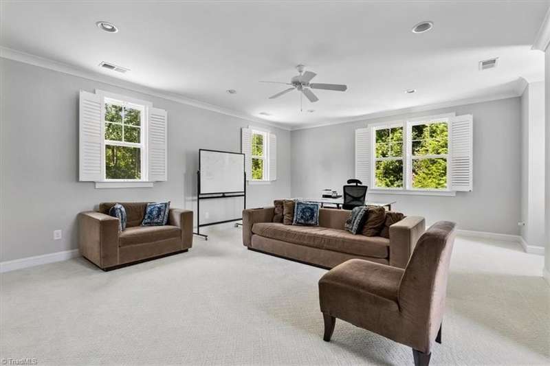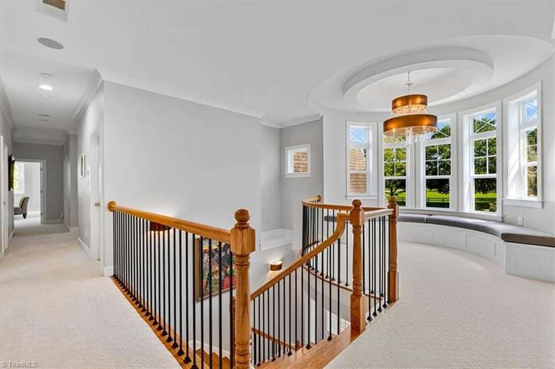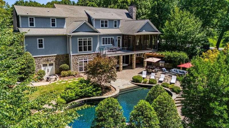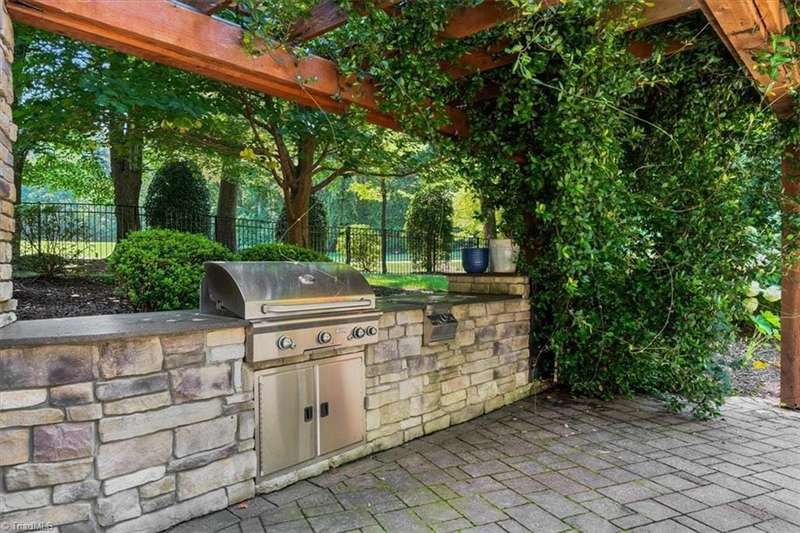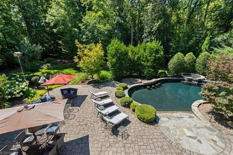 Hard to find relatively new construction (2011) in the city w/ acreage (1.15 acres), privacy, & an outdoor oasis in popular Brandt Trace Farms w/ 22+ acres of common meadows & tennis/pickleball courts all within steps of GSO walking trails around Lake Brandt. Spacious 3-level home offers 5 bdr / 6 full & 2 half baths, open floorplan w/ tall ceilings, bamboo floors, numerous windows & primary & guest suites on main level, bonus rooms upper & basement levels, 8 seat home theater w/ bar area, exercise room, vaulted ceiling screened porch, front covered bluestone porch, deck, patio, fire pit, built in gas grill, custom Blue Haven Saltwater Pool (heated) w/Hot tub & Swim-Up Bar & an expansive private back yard w/ mature landscaping. Gourmet Kitchen w/ large island w/ bar seating & prep sink, 2 Kitchenaid ovens, Wolf Gas Range w/ pot filler, and new SubZero built in fridge adjoins great room (w/ gas fp & wet bar w/ wine fridge & ice maker) & dining area. This house has so much to offer!