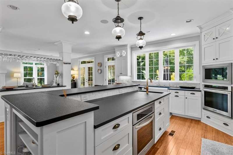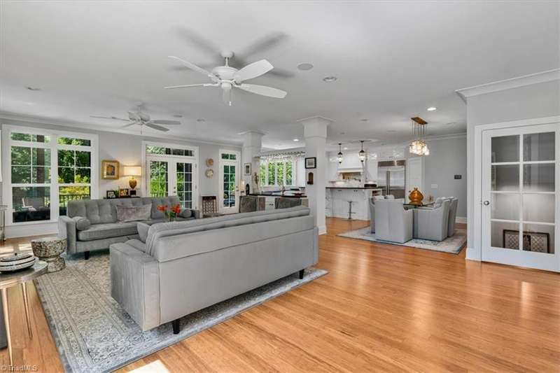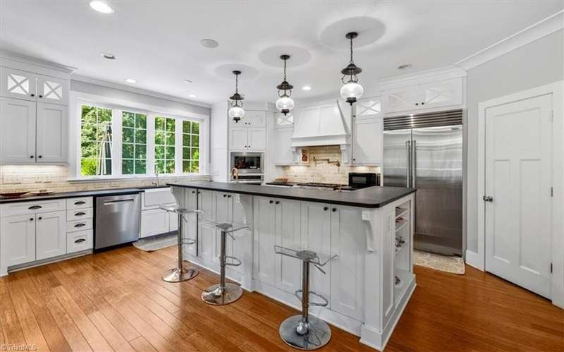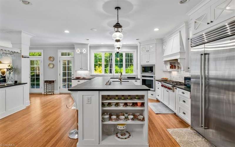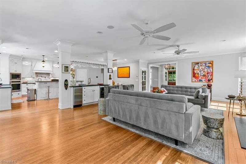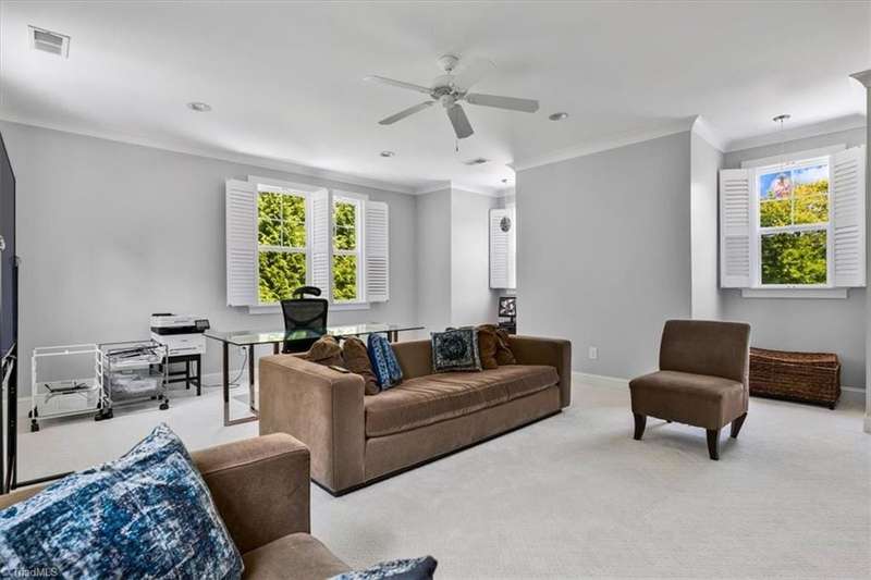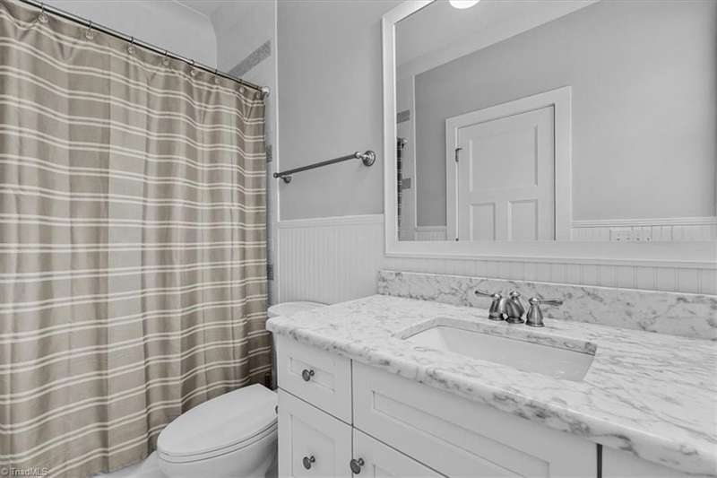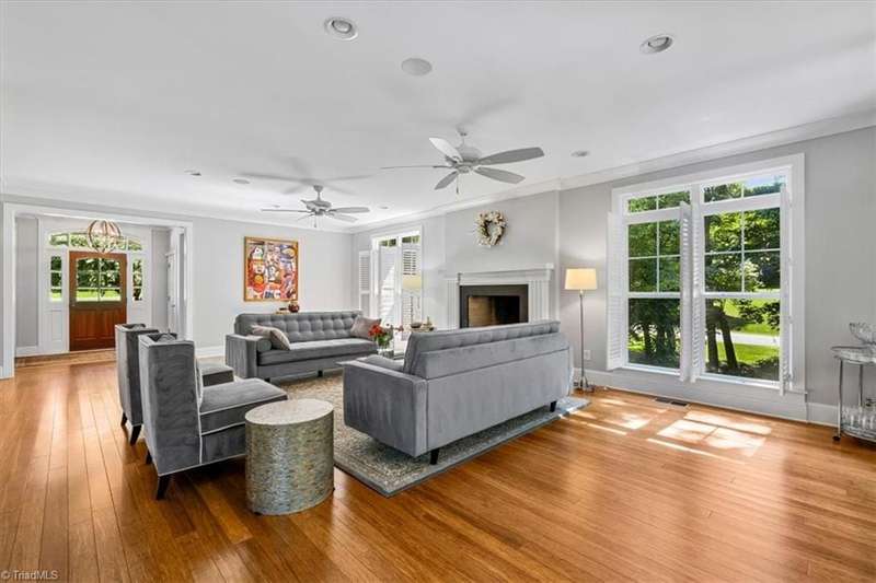 Hard to find relatively new construction (2011) in the city w/ acreage (1.15 acres), privacy, & an outdoor oasis in popular Brandt Trace Farms w/ 22+ acres of common meadows & tennis/pickleball courts all within steps of GSO walking trails around Lake Brandt. Spacious 3-level home offers 5 bdr / 6 full & 2 half baths, open floorplan w/ tall ceilings, bamboo floors, numerous windows & primary & guest suites on main level, bonus rooms upper & basement levels, 8 seat home theater w/ bar area, exercise room, vaulted ceiling screened porch, front covered bluestone porch, deck, patio, fire pit, built in gas grill, custom Blue Haven Saltwater Pool (heated) w/Hot tub & Swim-Up Bar & an expansive private back yard w/ mature landscaping. Gourmet Kitchen w/ large island w/ bar seating & prep sink, 2 Kitchenaid ovens, Wolf Gas Range w/ pot filler, and new SubZero built in fridge adjoins great room (w/ gas fp & wet bar w/ wine fridge & ice maker) & dining area. This house has so much to offer!