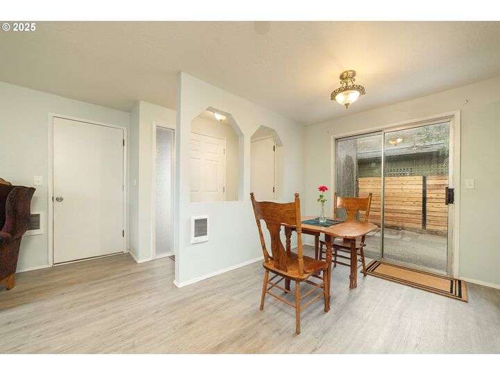 OFFER RECEIVED. OFFER DEADLINE TUESDAY, 10/14 AT 2PM. Enjoy peaceful single-level living and an enormous fully fenced backyard where you can unwind to the soothing sound of wind through the trees. It's a rare private retreat, perfect for pets, play, or simply relaxing on the patio. This tastefully updated rambler features new paint inside and out, new flooring, both a refreshed kitchen and bath, plus a new roof was just installed. New high-efficiency hydronic baseboard heaters make this home cozy and move-in ready. Tucked on a quiet, low-traffic lane, the home ensures peace with barely a hint of passing cars. The location is just 3 blocks to historic, yet modernized downtown Lents with many great eateries, a gym, Metro access, and other amenities. At the end of the block to the north, you'll find fabulous Lents playground and huge 33-acre Lents Park with gardens, dog park, tennis and basketball courts, soccer, softball, horseshoe pits, and the stadium of the Portland Pickles! An 8300 sq. ft. lot gives you privacy and room to spread out while making an investment with future potential in this up-and-coming neighborhood. [Home Energy Score = 5. HES Report at https://rpt.greenbuildingregistry.com/hes/OR10239780]