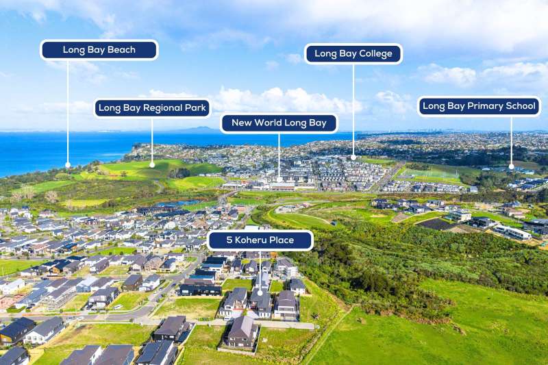 Welcome to 5 Koheru Place, Long Bay – an architectural masterpiece offering the perfect balance of space, style, and sophistication. Positioned on a generous 635m² freehold site with approximately 408m² of floor area, this home has been designed and crafted to the highest standard with every detail carefully considered. Constructed with a premium mix of Cedar weatherboard and brick, this home exudes timeless elegance. Inside, you’ll find five luxurious master suites, each with its own ensuite, plus a guest toilet – making 5.5 bathrooms in total. All bathrooms feature underfloor heating, ensuring year-round comfort. The home offers three spacious living areas across different levels, creating versatile spaces for relaxation or family gatherings. Designed with both lifestyle and functionality in mind, there is also a separate laundry room and a double internal-access garage. Perfect for the modern family, this residence provides dual kitchens – a contemporary Western kitchen and a fully equipped Asian kitchen. The main kitchen is fitted with integrated German Miele appliances, including an oven, steam oven, microwave, coffee machine, dishwasher, and built in refrigerator, offering the ultimate culinary experience. Every level enjoys panoramic sea views across Long Bay Beach and Rangitoto Island, enhanced by expansive glass balustrade decks for effortless indoor-outdoor living. Landscaped garden with rich plantings, thoughtfully designed and built with genuine quality This home is equipped with the very best in modern technology and comfort, including: • American oak flooring throughout • Smart home system for lighting, gate, garage door and security • CCTV surveillance & smart monitoring system • Central air-conditioning & background sound system • Gas fireplace for cosy evenings Set in a highly desirable coastal community, you’ll enjoy easy access to Long Bay Beach, Regional Park, New World Supermarket, and top local schools including Long Bay College & Primary School – ensuring convenience and lifestyle in one perfect package. This is more than just a house – it’s a rare opportunity to secure one of Long Bay’s finest new residences, designed for those who demand the very best. Call us now! Auction: 8-12 The Promenade, Takapuna on Thursday 16 October 2025 at 10:00AM (unless sold prior)
