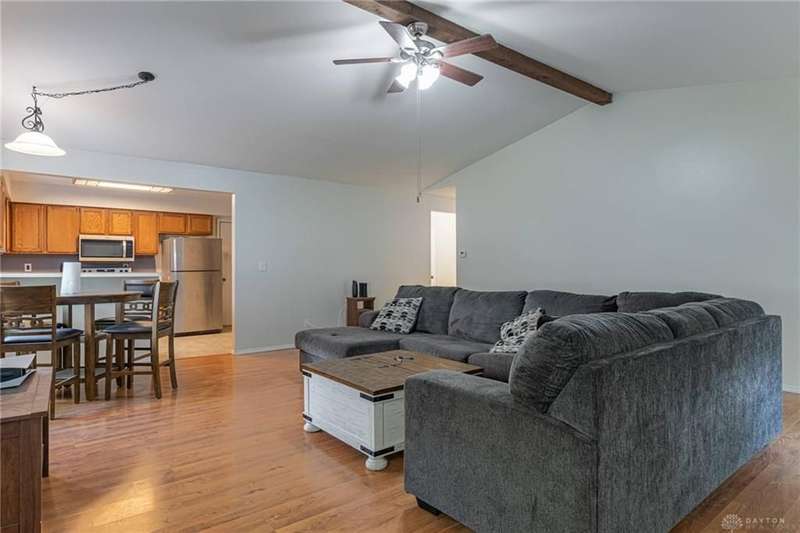 This charming 3-bedroom, 2-bath ranch sits on nearly half an acre, offering plenty of space both inside and out. The open layout leads you to a spacious eat-in kitchen with beam-accented ceilings and included appliances. Relax and unwind in the oversized primary bedroom featuring a walk-in closet and a cozy fireplace for added charm. The fenced-in backyard is a perfect retreat with a large shed for storage, a dedicated garden area, and a raised deck, ideal for outdoor gatherings or peaceful evenings under the stars.Conveniently located near parks, schools, shopping, and I-70, this home combines comfort, character, and convenience. Don't miss your chance to make it yours schedule a tour today!