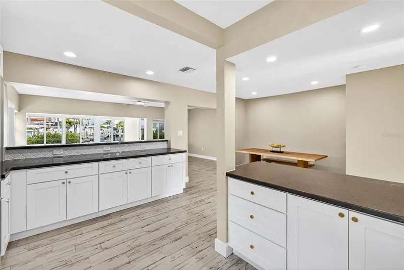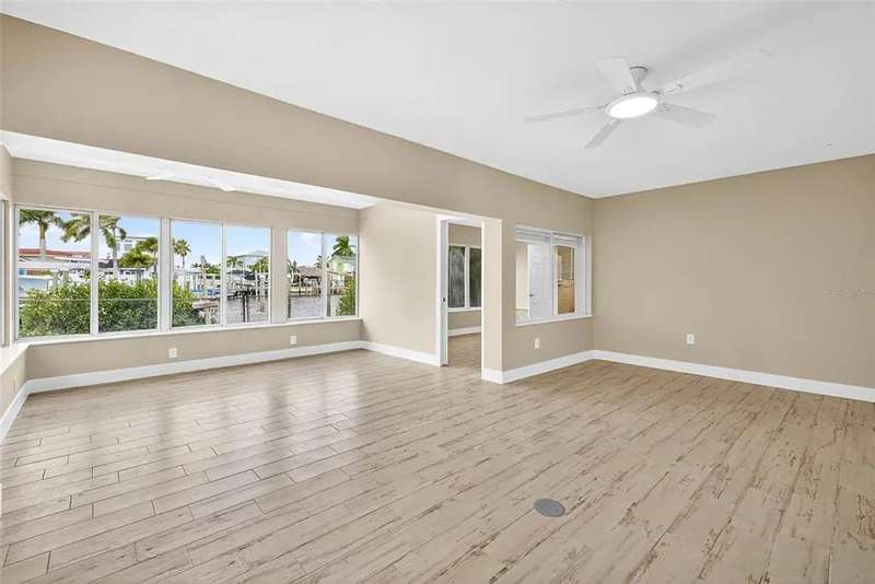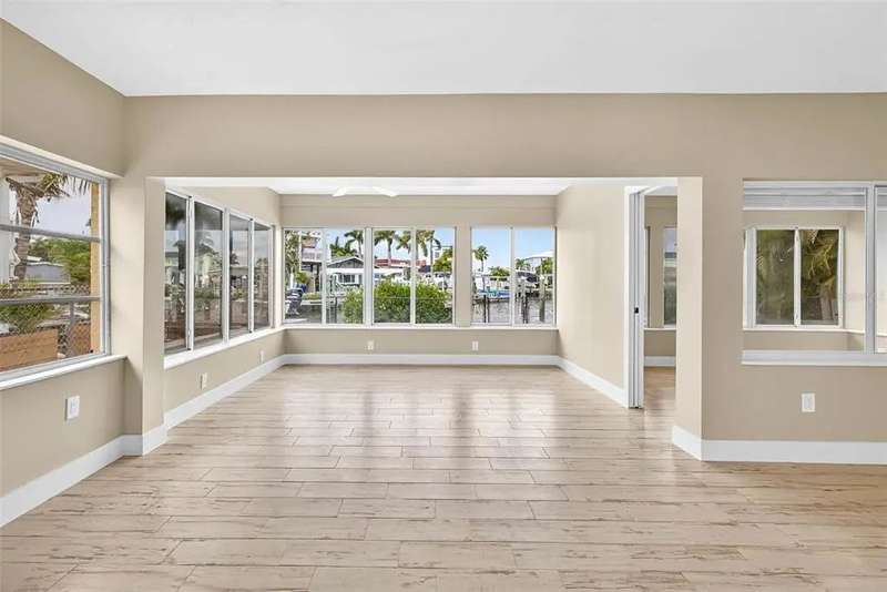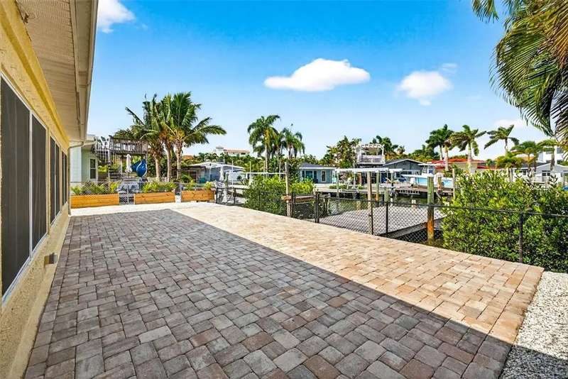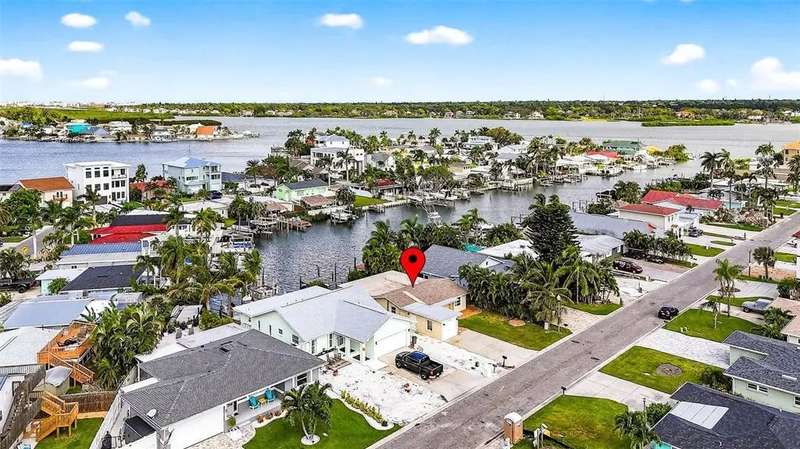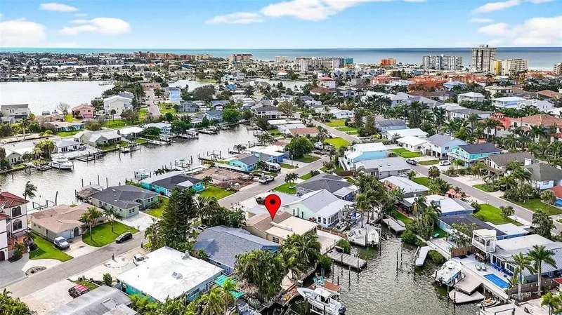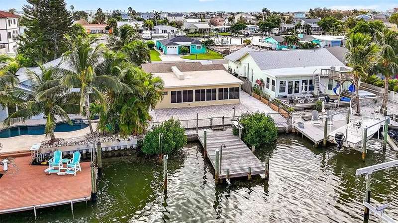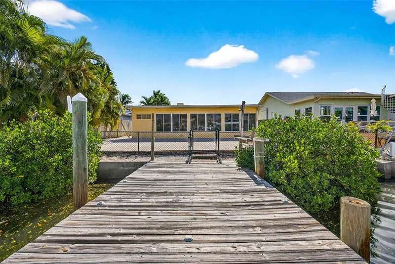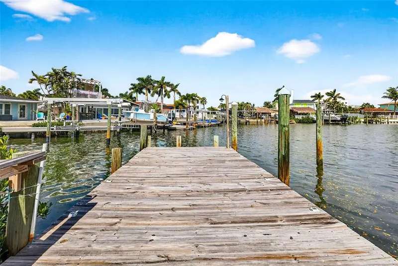 One or more photo(s) has been virtually staged. Lowest priced Move-in Ready 3 Bedroom 2 Bath Waterfront home on the Pinellas County Barrier Islands. This home was professionally remediated and remodeled. All city inspections are complete and permits are closed. This waterfront property with a deep water dock is nestled on a tranquil street in Redington Shores. A rare gem, this fully renovated residence offers an ideal location with direct boating access to the Intracoastal and Gulf of Mexico through John's Pass, or a swift golf cart ride to the beach, local shops, and restaurants. The open floor plan seamlessly connects the living and dining spaces, creating an inviting and spacious environment. The interior layout has been thoughtfully crafted by an interior designer, featuring luxury wood-look cottage tile, solid wood kitchen cabinets, and Silestone Quartz counters. A new spa-like primary bathroom adds a touch of modern elegance. The kitchen, with multiple eat-in spaces, overlooks the dining and living areas, facilitating easy entertaining. All three bedrooms are generously sized and strategically placed throughout the home. Step outside to an expansive patio boasting 50 feet of waterfront and plenty of room for the new owner to add a pool. The custom-designed, low-maintenance landscaping ensures more time to relish your new coastal lifestyle! Roof replaced October 2017 and new HVAC System August 2020.
