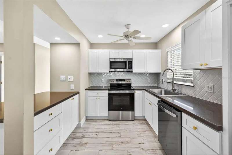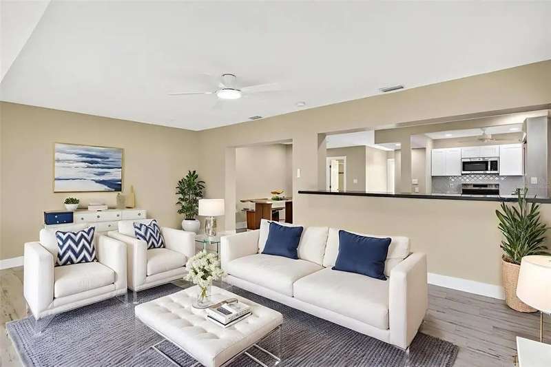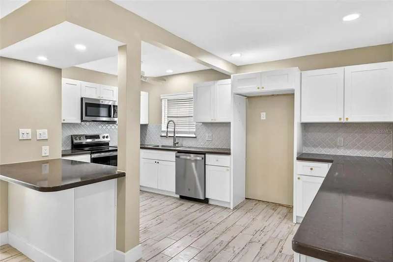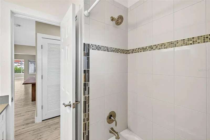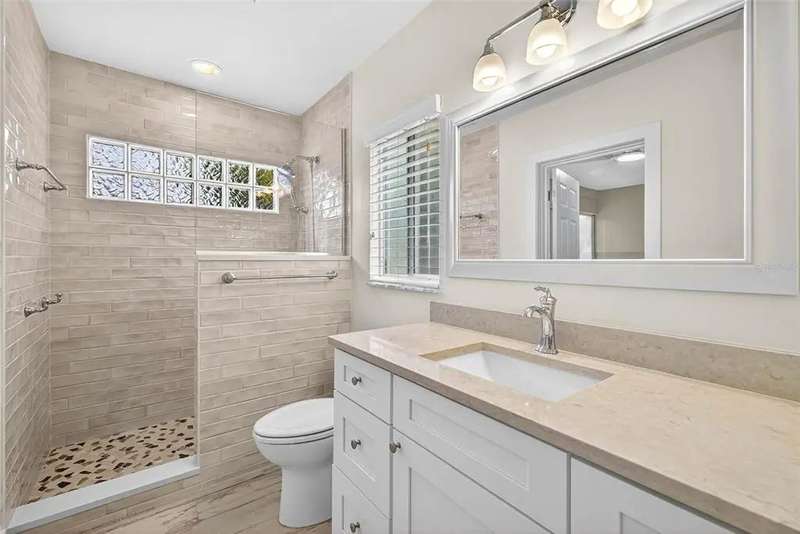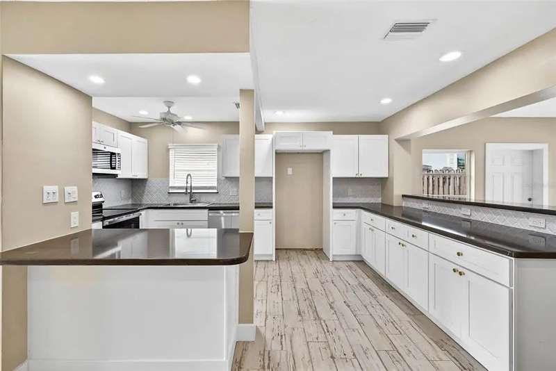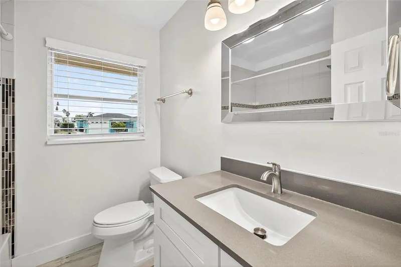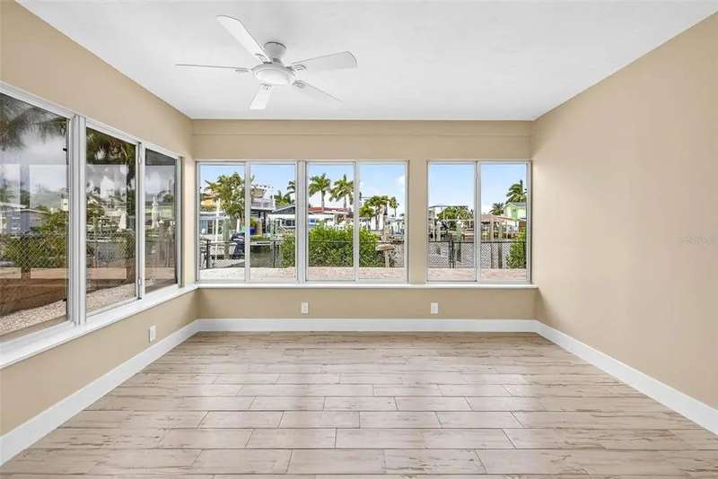 One or more photo(s) has been virtually staged. Lowest priced Move-in Ready 3 Bedroom 2 Bath Waterfront home on the Pinellas County Barrier Islands. This home was professionally remediated and remodeled. All city inspections are complete and permits are closed. This waterfront property with a deep water dock is nestled on a tranquil street in Redington Shores. A rare gem, this fully renovated residence offers an ideal location with direct boating access to the Intracoastal and Gulf of Mexico through John's Pass, or a swift golf cart ride to the beach, local shops, and restaurants. The open floor plan seamlessly connects the living and dining spaces, creating an inviting and spacious environment. The interior layout has been thoughtfully crafted by an interior designer, featuring luxury wood-look cottage tile, solid wood kitchen cabinets, and Silestone Quartz counters. A new spa-like primary bathroom adds a touch of modern elegance. The kitchen, with multiple eat-in spaces, overlooks the dining and living areas, facilitating easy entertaining. All three bedrooms are generously sized and strategically placed throughout the home. Step outside to an expansive patio boasting 50 feet of waterfront and plenty of room for the new owner to add a pool. The custom-designed, low-maintenance landscaping ensures more time to relish your new coastal lifestyle! Roof replaced October 2017 and new HVAC System August 2020.