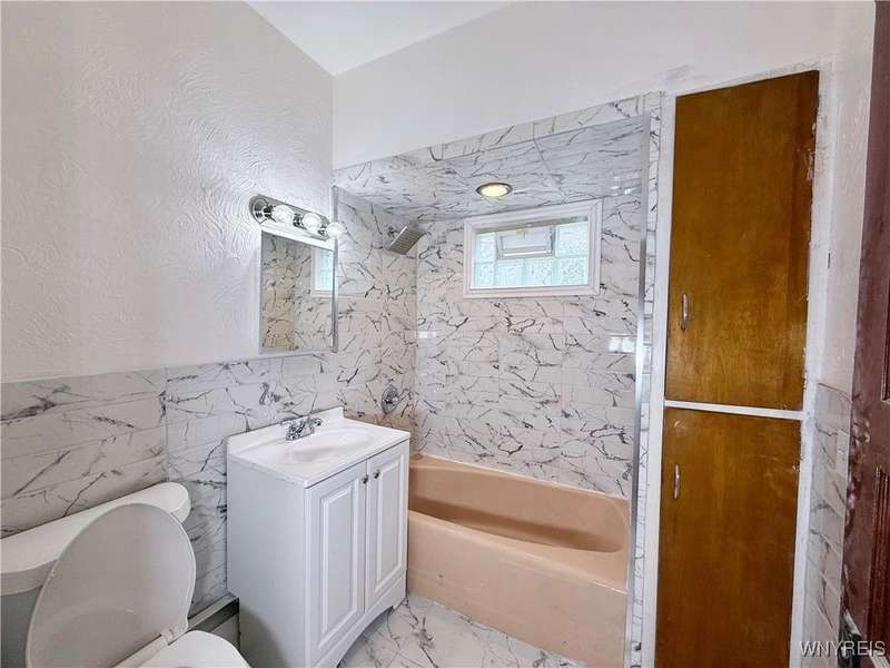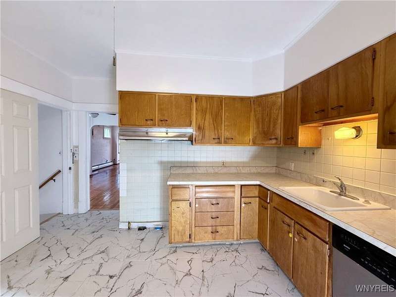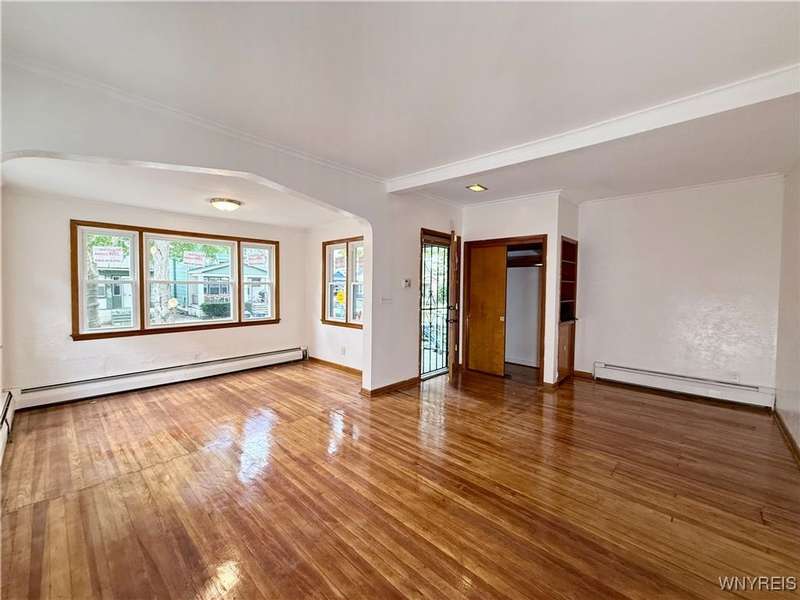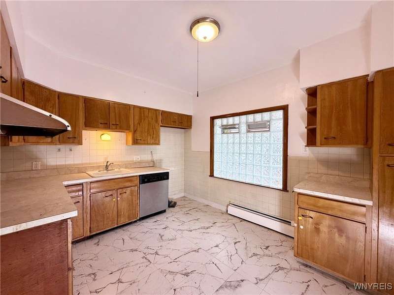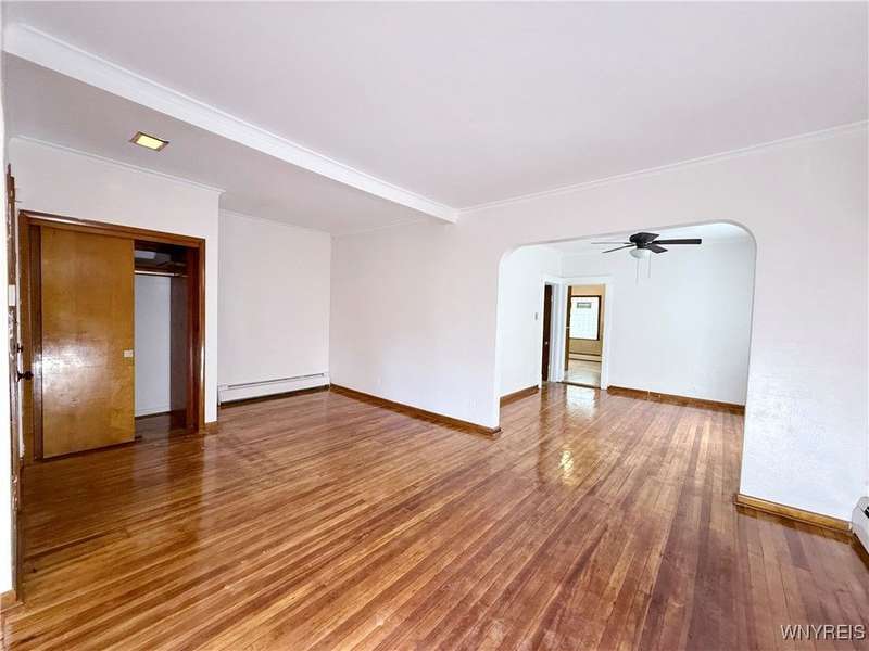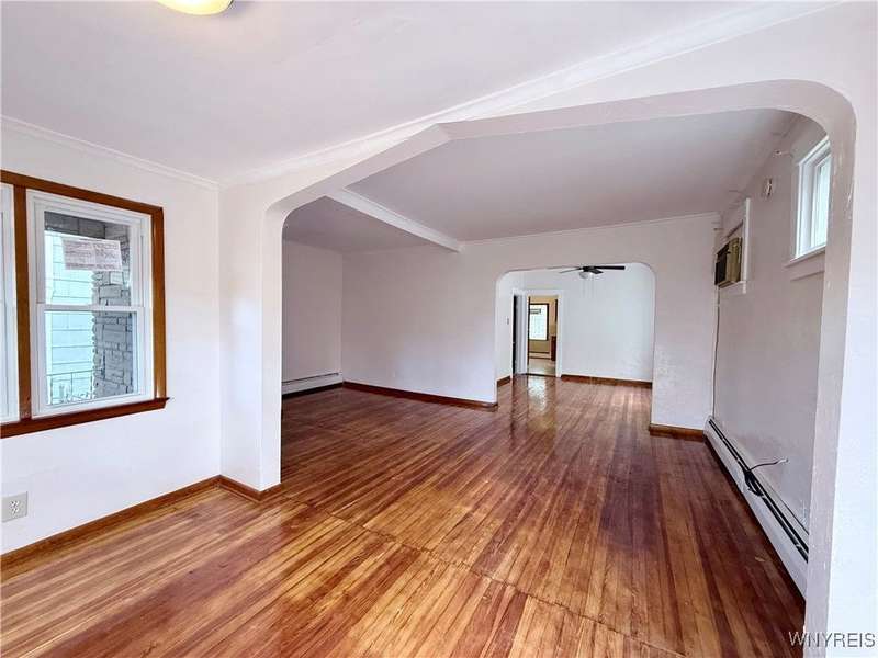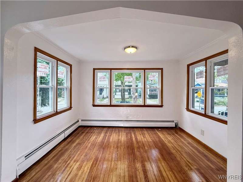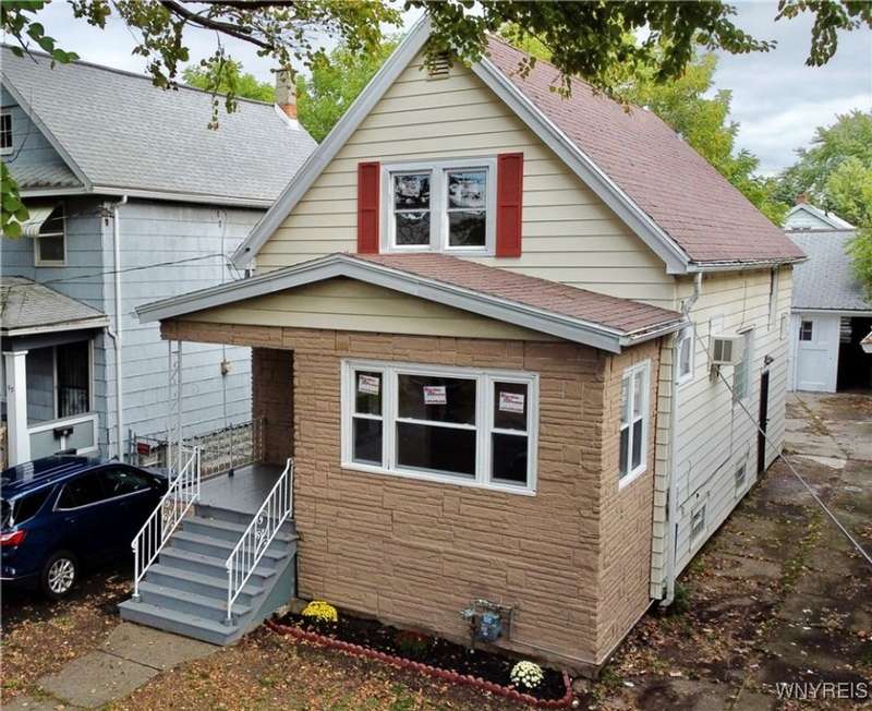 Welcome to this move-in-ready, recently renovated single-family house in Buffalo. Conveniently situated within minutes of I-90 Highway, Galaria Mall, UB South Campus, and easy access to the airport and downtown Buffalo..This charming residence calling to its new owner with a spacious living room complemented by a sunlit office room, a formal dining room, an eat-in kitchen, three bedrooms, one bathroom and an additional sitting room located on the upper level.The recent updates include the following:- Sanded and varnished original hardwood floors in the living room and dining room.- Tiles installed in the kitchen.- An updated bathroom with tiles.- Fresh paint applied throughout the house.- New flooring installed on the stairwell and upstairs bedrooms.- Several brand-new replacement windows.- A new garage roof (back side).- A newly reconstructed front staircase- The furnace is less than FIVE years old, and the roof is approximately TEN years old. - Hot water tank was installed in 2017The dry basement with glass block windows can serve as ample storage space. The multi-car driveway offers peace of mind for safe parking. The spacious three-car garage presents an excellent opportunity for additional parking and storage, or it can be transformed into a workspace for craftsmanship. Showings are available immediately. Offers will be reviewed on Monday, 10/06/2025 by 3pm'Escalation clause' will be allowed.Thank you!