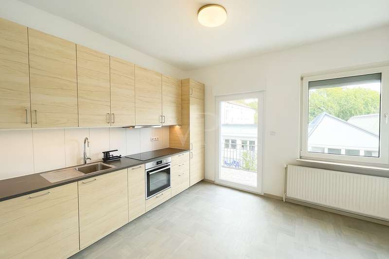 This spacious, light-flooded apartment is located in a well-kept three-family house built in 1924; the apartment was extensively renovated and refurbished in 2023. With around 120 m² of living space, the property boasts a practical, well thought-out room layout and high-quality furnishings, ideal for families and couples with space requirements. Upon entering the apartment, you are greeted by a bright, inviting hallway from which all rooms are easily accessible. The heart of the apartment is the spacious kitchen with dining area. A sunny balcony invites you to enjoy breakfast and relaxing hours outdoors. Four bright rooms can be used individually as bedrooms, study rooms, children's rooms or guest rooms, offering plenty of design freedom for different living situations. The daylight bathroom has a modern design and a floor-to-ceiling shower. The space is complemented by a separate guest WC with a daylight window. The apartment is in a very well-kept, as-new condition. As part of the refurbishment in 2023, the furnishings and surfaces were completely modernized and brought up to date. Well-kept floor coverings and a harmonious color concept create a pleasant living atmosphere. The apartment comes with a garage that provides convenient and secure parking. In addition, the house itself has a large courtyard including a backyard with green space for communal use. Are you looking for a modernized, bright apartment with a functional floor plan, balcony, garage and upscale furnishings? Then come and see the benefits of this special property for yourself during a viewing.