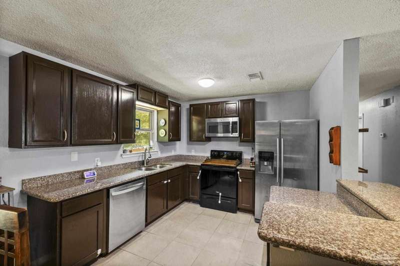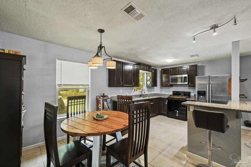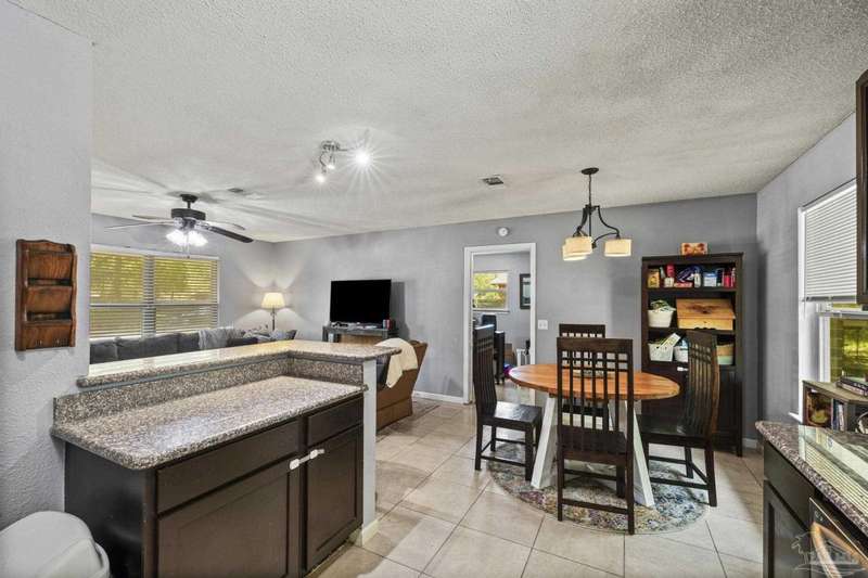Price Improvement! This adorable 3 bedroom 2 bathroom brick home is ready for YOU! Sitting on just over a half acre and surrounded by trees makes it quite the private oasis. As you enter the home the first thing you will notice is the open concept living, kitchen and dining rooms. You can entertain, cook and still be part of the action. The kitchen features granite countertops, a built in microwave and self cleaning oven. The breakfast bar not only offers extra seating but extra counter space for food prep or to unpack take out. On the right side of the home are the 3 bedrooms and 2 bathrooms. The primary bedroom is tucked in the back corner of the home and has an ensuite bathroom and walk-in closet. The bathroom has been updated and features a tile walk-in shower. On the left side of the home there are 2 bonus rooms that can be used for anything! You could have a 4th bedroom and office in these spaces, a game room, second living area, library...you're only limited by your own imagination. One thing this home does not have is carpet...NO CARPET. Tile flooring throughout means more time enjoying life and less time cleaning. Stepping out the back door is sure to spark that childlike wonder we all once had. This spacious yard has tons of trees and privacy. It's perfect for kids and adults alike. Big enough to run and play hide and seek, catch fireflies and peaceful enough to enjoy morning coffee or afternoon tea. Plenty of space for a garden or pool as well. Roof was installed in 2019 and the windows were replaced in 2018. All of this and NO HOA. You deserve to be living this low maintenance lifestyle so schedule your tour today.