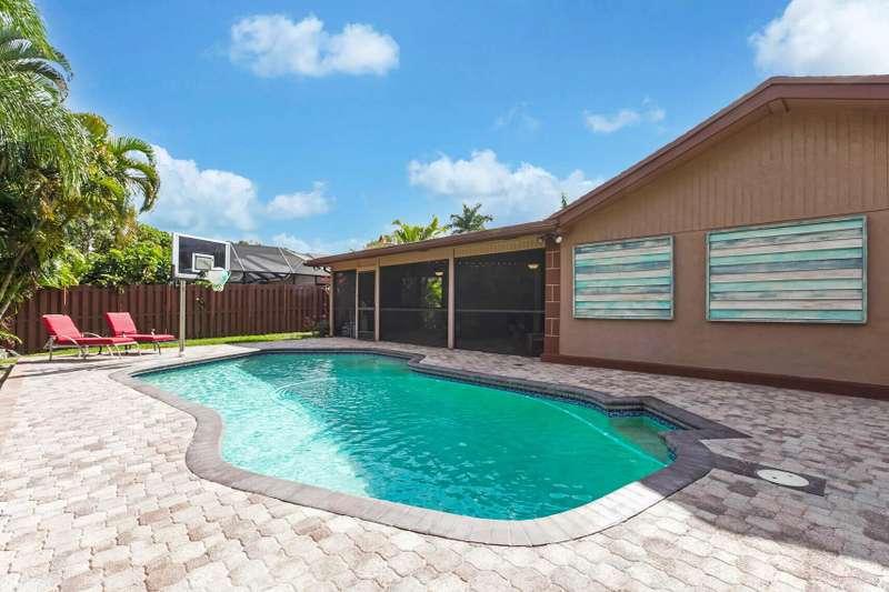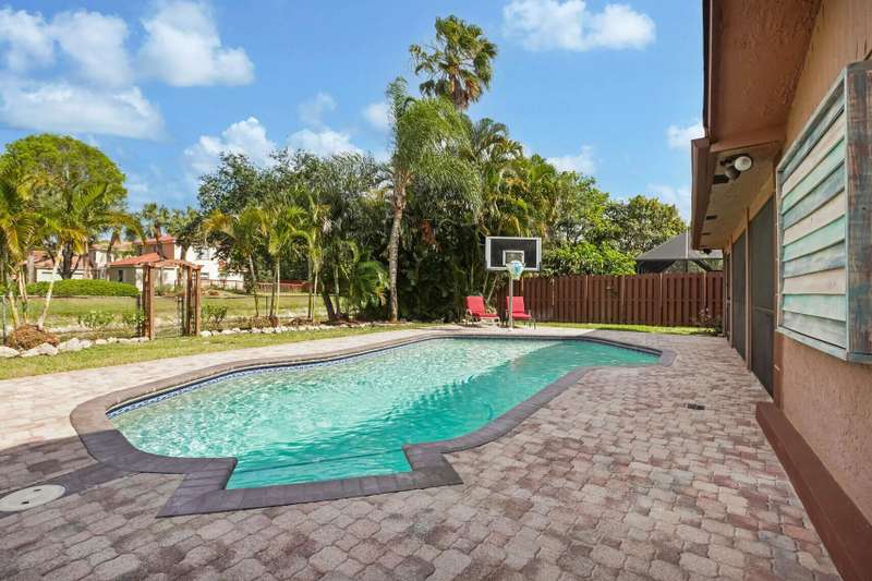 BUY WITH NO MONEY DOWN!!! This amazing 4 bed 2 bath waterfront home with no HOA has an open floor plan with high vaulted wood ceilings and abundant natural light. Boat Parking - dedicated concrete pad for your boat on the side of your home. Solar-Powered system covers 100% of electricity. Saltwater Pool is a low-maintenance, luxurious swimming experience with a full-size basketball goal. Covered back patio with a tropical fish tank and plenty of seating for all of your entertaining needs. 4th bedroom is a converted garage with extra space for an office or game room. Can easily be reverted back to a garage. Prime Location, only three houses down from a beautiful local park kids will love! Just minutes away from 95 and the Turnpike.