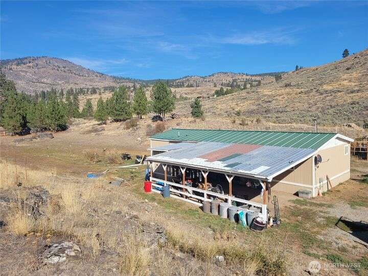 Newly remodeled 3-bedroom, 2-bath manufactured home with office on 9.06 acres! Updates include a new well pump, water heater, toilets, carpets, siding, flooring & fresh paint. Light-filled kitchen with skylights, plus mud & laundry rooms. Primary suite offers private bath with walk-in shower. Flat, usable land features fenced gardens, greenhouse & abundant fruit: pear, peach, apple, nectarine, cherry, plum, apricot, grapes, strawberries & goji berries. Large 768 sq ft insulated shop with wood stove & 500-gallon water tank, plus 200 sq ft storage. Extra hillside water tank for gardening or fire protection. Move-in ready country living with good access & space to grow & thrive!