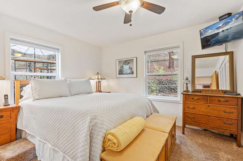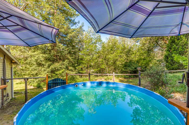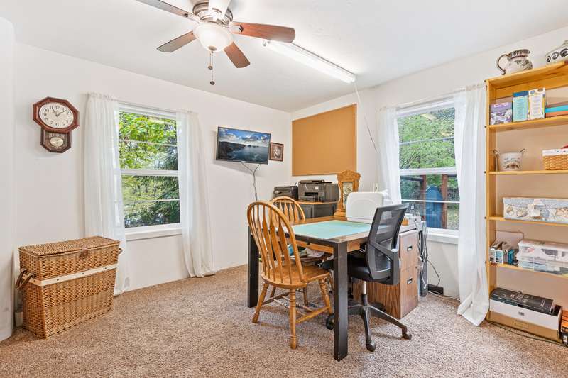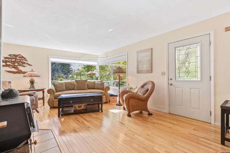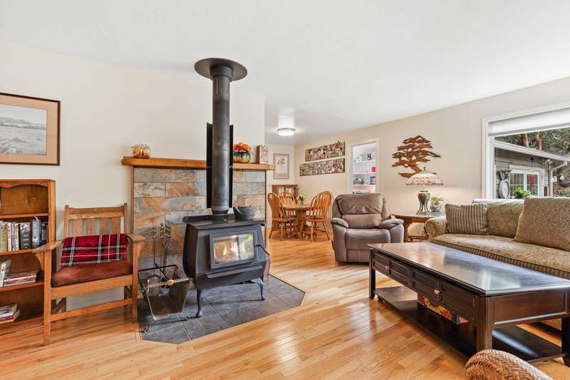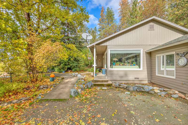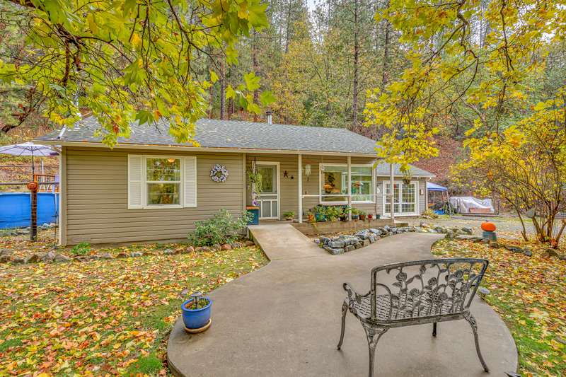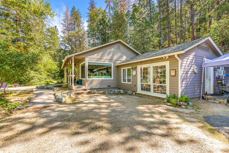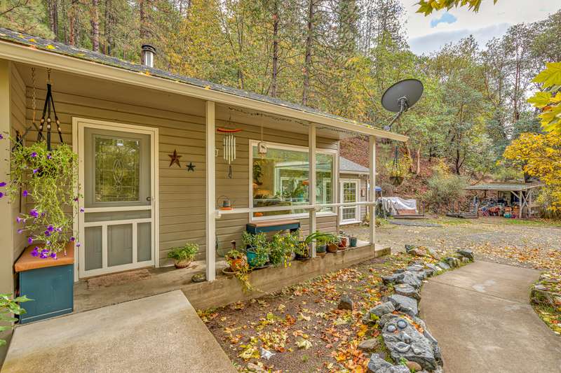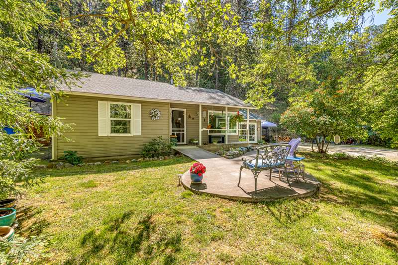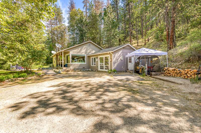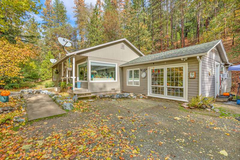 Experience the changing seasons and birds playing in front of this charming rural Southern Oregon home through the huge picture windows. In addition to the two-bedroom cottage, there is a converted garage with lots of storage and great lighting that could be used as an extra bedroom, music room, playroom etc. Summit your own mountain on the back of these 11+ acres or use front couple of acres for room to expand the garden, keep animals, or simply let the wildlife roam. Recent upgrades include a new well pump and a new roof, providing peace of mind alongside a clean inspection report. Inside, the home features timeless oak hardwood floors, an upgraded kitchen with stone counters and stainless-steel appliances, and at its heart, a Blaze King fireplace. This property is move-in ready. Come enjoy this slice of Southern Oregon Heaven for yourself.