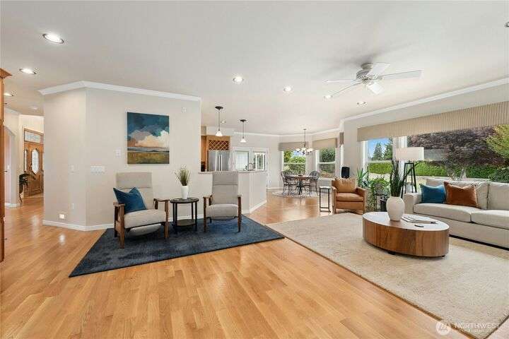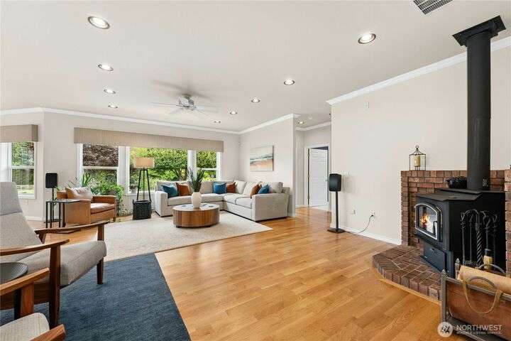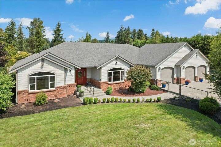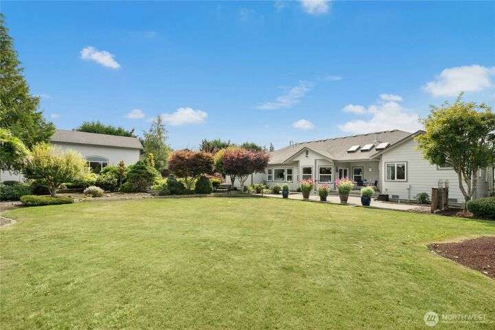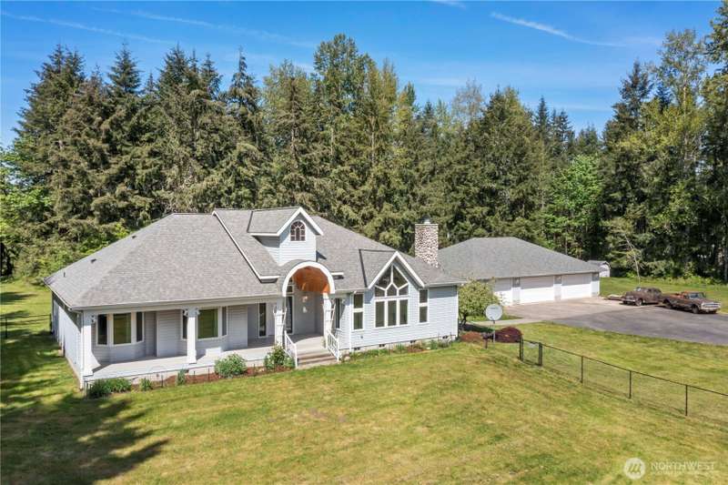 Welcome to this gorgeous custom-built rambler settled on over an acre. Offering a 20'x52' shop/RV garage & access to private airplane runway. As you step inside, you’ll be welcomed by an inviting space w/high ceiling & plenty of natural light. Expansive primary suite offers 2 WICs & 5-piece ensuite bathroom. 3 large additional bedrooms & bathrooms provide ample space. Traditional formal living & dining room. Chef's kitchen w/SS appliances & gas cooktop connected to family room w/cozy fireplace. French doors lead to covered patio overlooking the fully fenced yard w/sprinkler system, mature landscaping, koi pond & peaceful setting. Oversized garage. 2025 installed roof & exterior paint. A/C. Mins to downtown, dining, schools, trails & lakes.