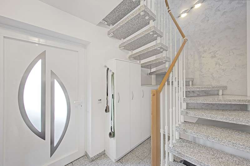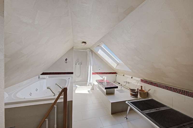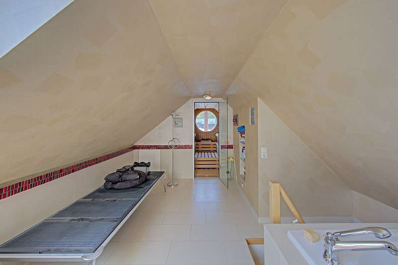 Confident, timeless and modern. This offer is a 2-family house with a perfect room layout for harmonious multi-generational living - nestled in a quiet cul-de-sac with lots of greenery all around. The garden apartment on the first floor offers two bedrooms, a shower room and an additional guest WC, a beautiful kitchen with breakfast area and access to the side terrace as well as a light-flooded living room with access to the large south-facing terrace with an idyllic water basin in front of it. The second apartment extends over the upper floor and attic and offers three really spacious bedrooms on the entrance level, one of which has a bathroom en suite, a further shower room and access via the external staircase to a separate side terrace. Above this is the living level with a charming kitchen with dining area and additional scullery. The open access to the living and dining area creates a successful symbiosis and shines with an elegant fireplace and an impeccable roof terrace for romantic sunsets. From the hallway, a room-saving staircase leads to the converted wellness floor: choose between sauna sessions, whirlpool time-outs, massage sessions or soothing footbaths in special plunge pools from the heated bench. The partial cellar with separate storage facilities and the two separate garages to the right and left of the house, each with rear doors onto the property and a side terrace with a staircase connection to the upper apartment, leave nothing to be desired. Nothing at all! We look forward to presenting this feel-good package with charm to you during a viewing.