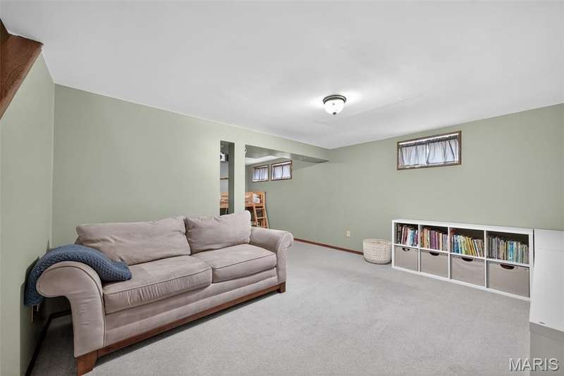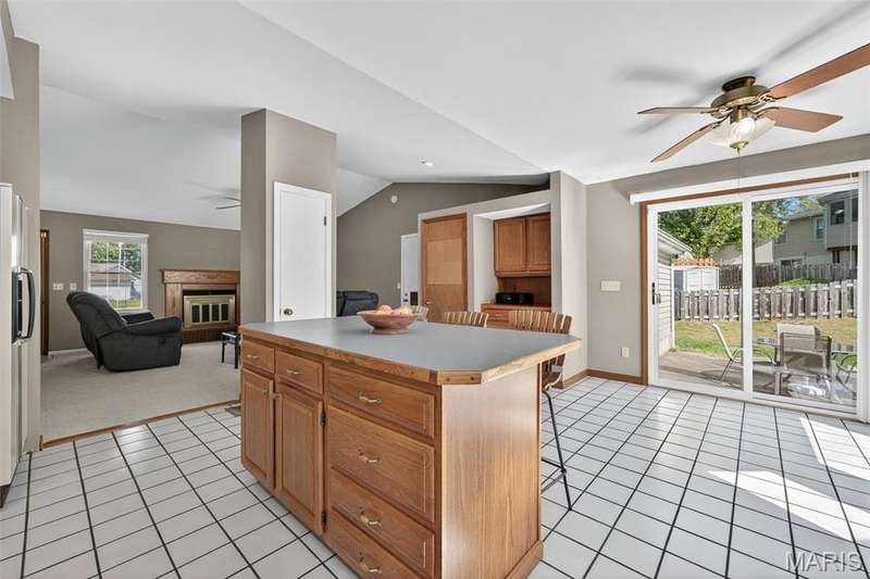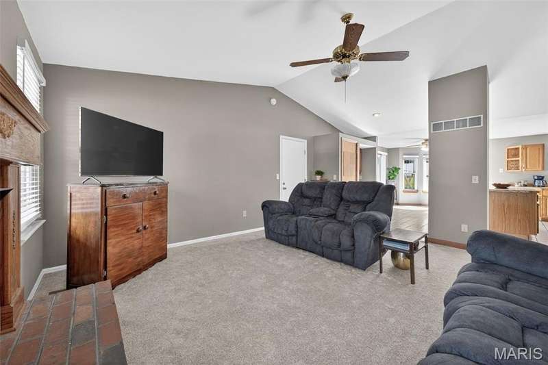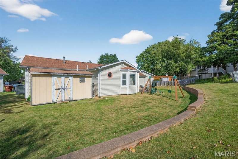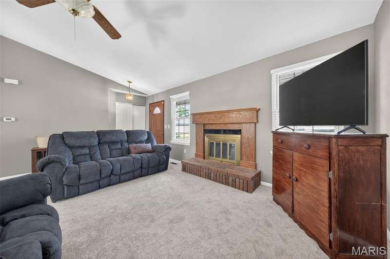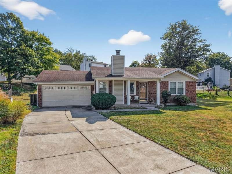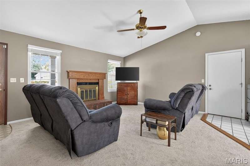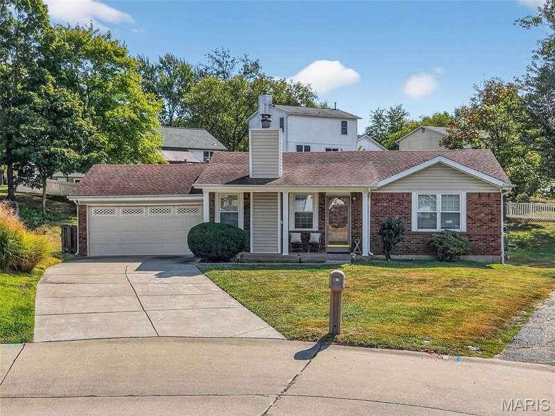 Come tour this inviting and cozy 2-bedroom, 1-bath ranch offering 1,116 sq ft of comfortable living space and stylish updates throughout! The OPEN FLOOR PLAN with cathedral ceiling and ceiling fans create a spacious, airy feel, while the fireplace & brand-new carpet add warmth and comfort on the main floor. You’ll love the LARGE, sun-filled kitchen featuring ceramic tile flooring, a center island with seating for breakfast or homework, pantry & ample cabinetry, and a bay window that fills the room with natural light. From the sliding glass door, step out to your beautiful stamped concrete patio overlooking a terraced, partially fenced yard—complete with a storage shed for convenience. The updated bathroom includes a tall vanity and walk-in shower, while both bedrooms offer closet organizers to keep everything tidy. The partially finished basement provides an L-shaped media or recreation room, perfect for movie nights, exercise, or home office setup. Situated on a quiet cul-de-sac, this home also includes a 2-car garage and access to subdivision amenities such as a pool and clubhouse—a great bonus for entertaining or relaxing close to home. Whether you're just starting out or ready to simplify, this adorable house is ready for YOU!