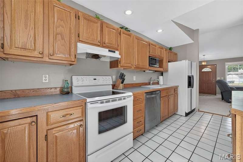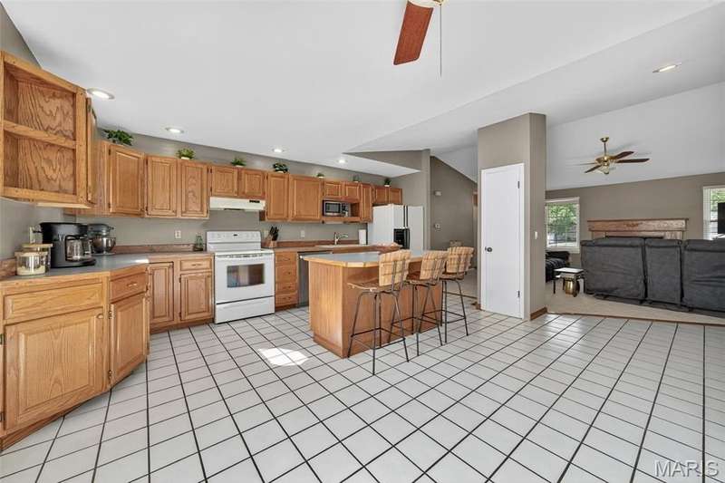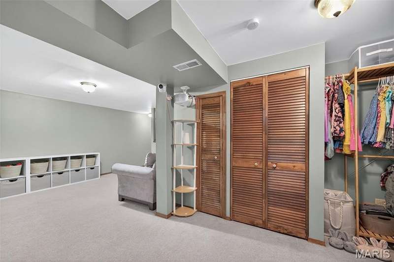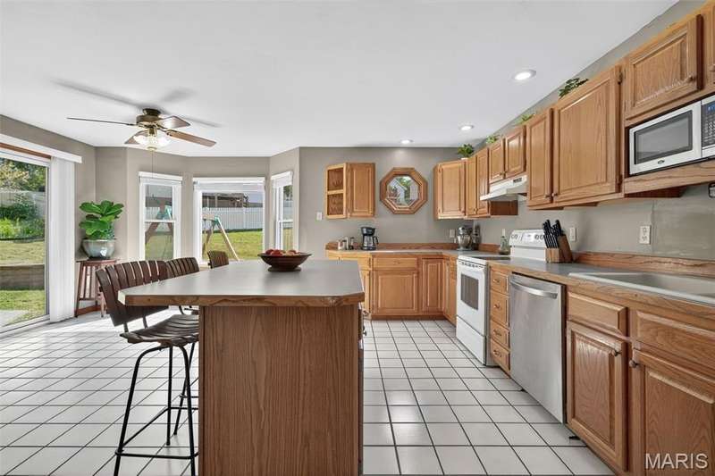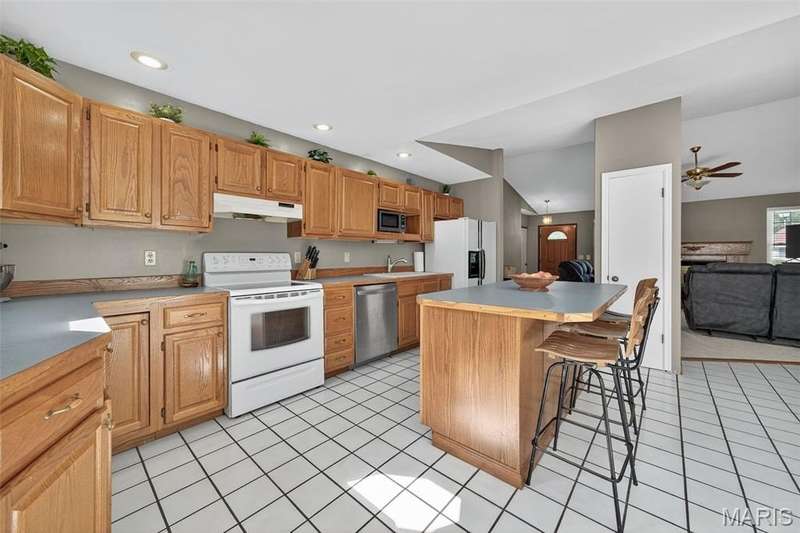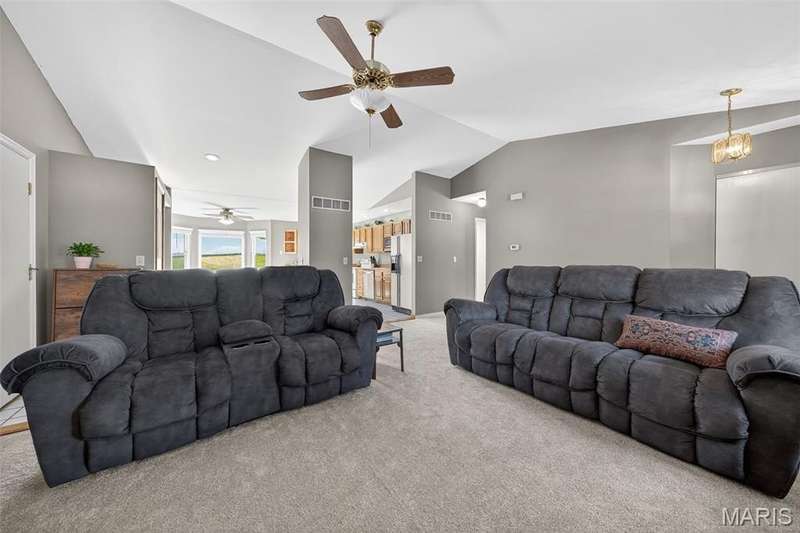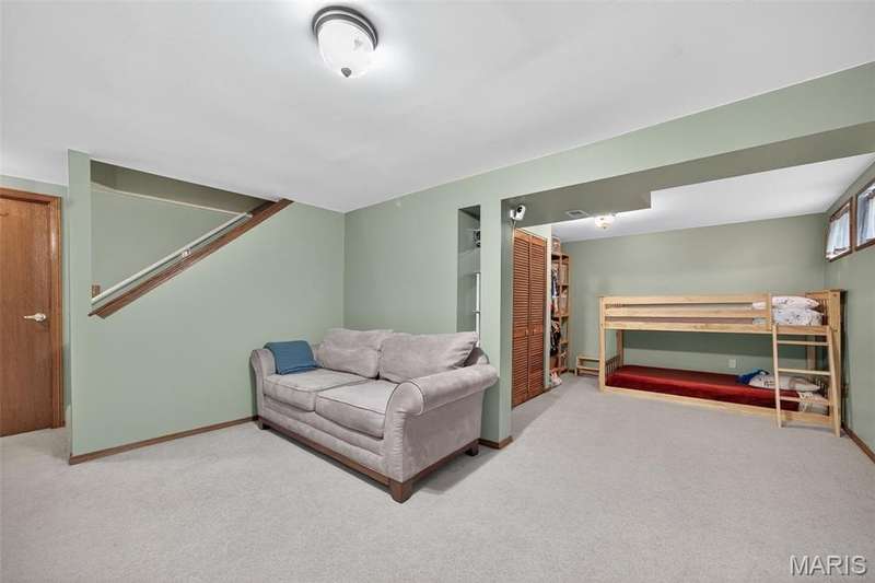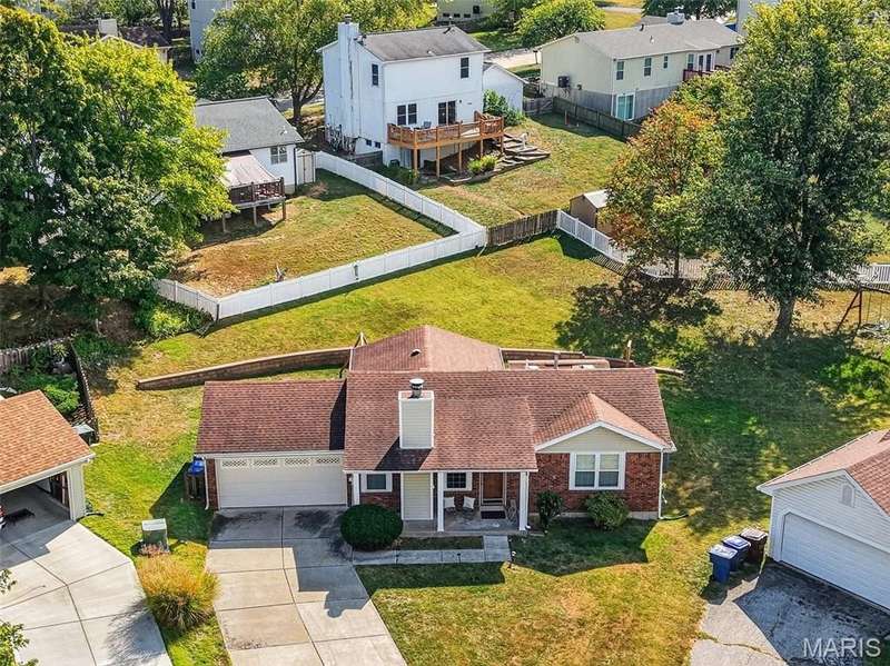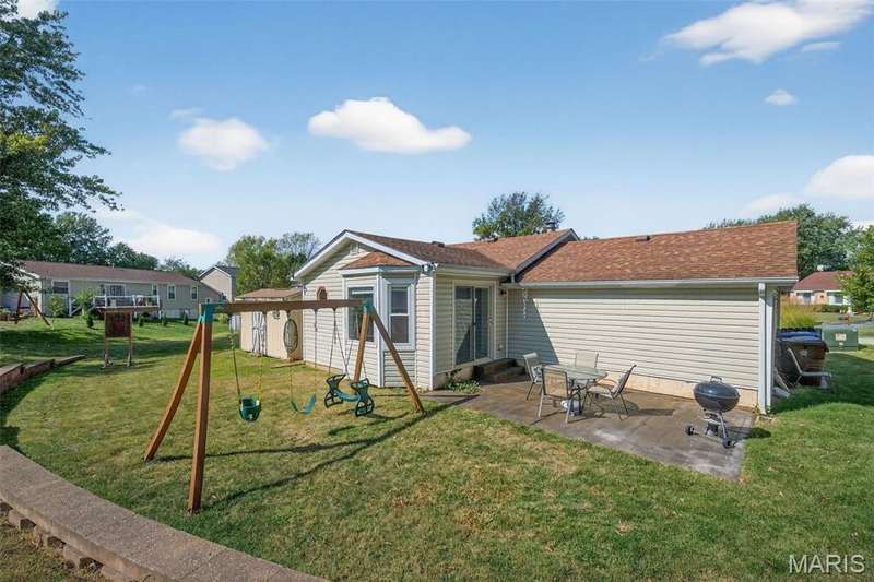 Come tour this inviting and cozy 2-bedroom, 1-bath ranch offering 1,116 sq ft of comfortable living space and stylish updates throughout! The OPEN FLOOR PLAN with cathedral ceiling and ceiling fans create a spacious, airy feel, while the fireplace & brand-new carpet add warmth and comfort on the main floor. You’ll love the LARGE, sun-filled kitchen featuring ceramic tile flooring, a center island with seating for breakfast or homework, pantry & ample cabinetry, and a bay window that fills the room with natural light. From the sliding glass door, step out to your beautiful stamped concrete patio overlooking a terraced, partially fenced yard—complete with a storage shed for convenience. The updated bathroom includes a tall vanity and walk-in shower, while both bedrooms offer closet organizers to keep everything tidy. The partially finished basement provides an L-shaped media or recreation room, perfect for movie nights, exercise, or home office setup. Situated on a quiet cul-de-sac, this home also includes a 2-car garage and access to subdivision amenities such as a pool and clubhouse—a great bonus for entertaining or relaxing close to home. Whether you're just starting out or ready to simplify, this adorable house is ready for YOU!