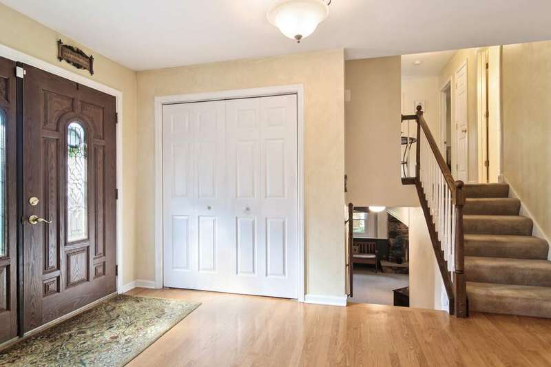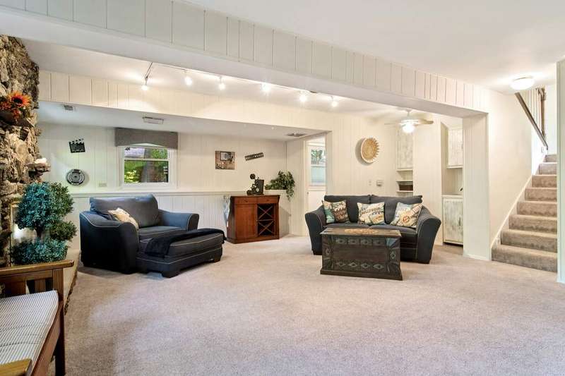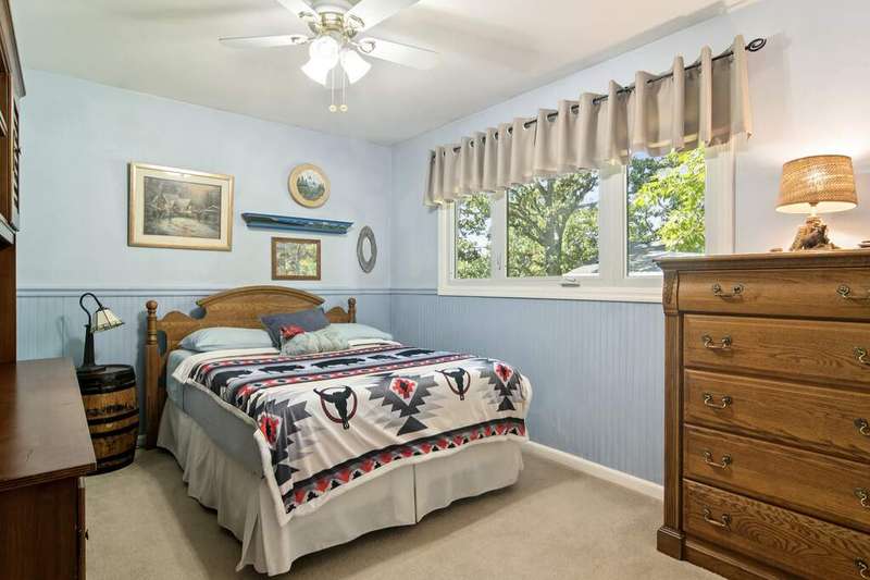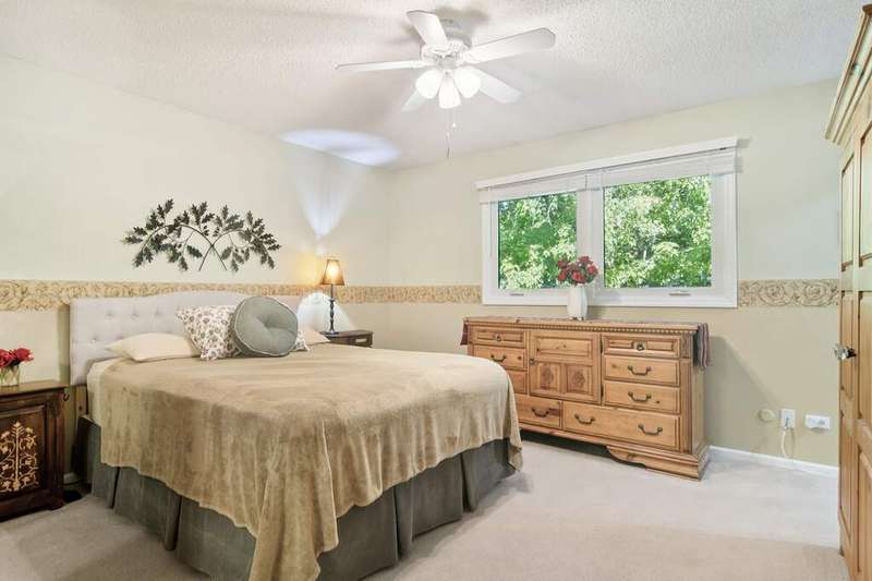 This beautifully maintained 4 bedroom, 2.5 bath split-level home in Lake Zurich offers a perfect blend of space, flexibility, and charm with Lake Rights to Lake Zurich! The main level features a bright living room with large picture windows, an inviting dining room, and a spacious kitchen with abundant cabinetry, solid surface counters, and a breakfast bar. Upstairs, you'll find the serene primary suite with private bath, along with two additional bedrooms and a full hall bath. The lower level is a warm retreat with a floor-to-ceiling stone fireplace in the family room, a full bath, and a versatile fourth bedroom or office. A finished basement adds even more flexibility with a home gym, storage, and laundry. Outdoors, enjoy your own private oasis with a large patio, water feature, and beautifully landscaped yard framed by mature trees. Perfect for both gatherings and quiet evenings, the backyard is truly an extension of the living space. With a 2-car attached garage, thoughtful updates, and a desirable neighborhood setting, this home offers comfort, style, and convenience all in one