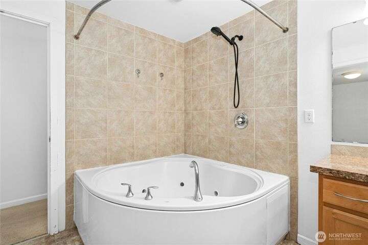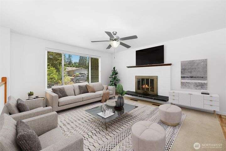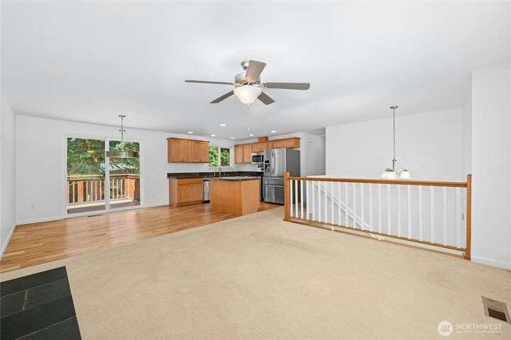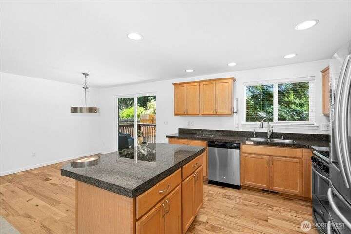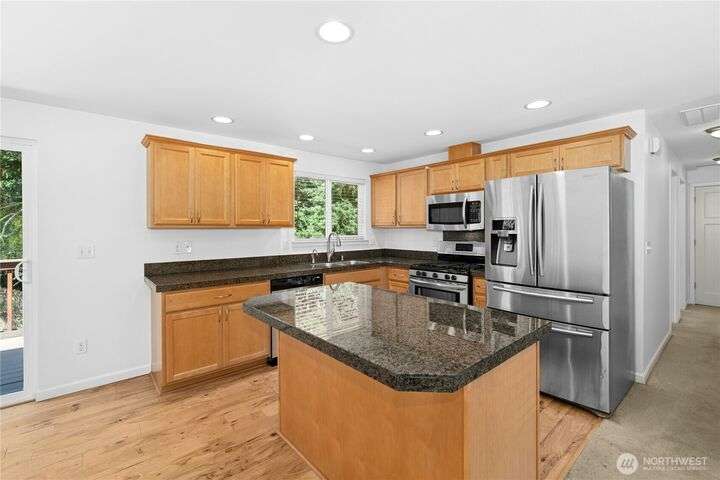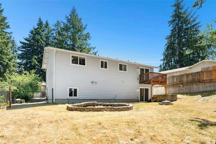 Beautiful open concept layout home, located in the heart of Lacey. Features high-quality real wood floors designed for durability, elegant granite countertops, gas cook top & sleek SS appliances. Freshly painted interior complements this move-in ready home. Enjoy a luxurious large, jetted tub surrounded by stunning tile work, as well as two inviting fireplaces perfect for cozy nights in. The spacious Trex deck, just off the kitchen & dining area, offers a great spot for outdoor relaxation. The lower level provides versatile space ideal as a large primary bedroom, den, or bonus/recreation room with slider leading to backyard with garden area and firepit. Well-maintained home that's been pre-inspected. Easy access to dining, shopping & parks.