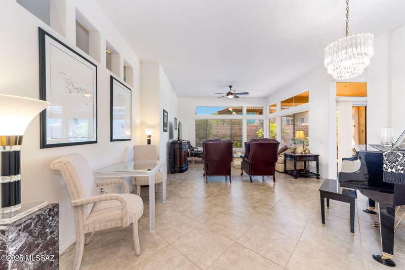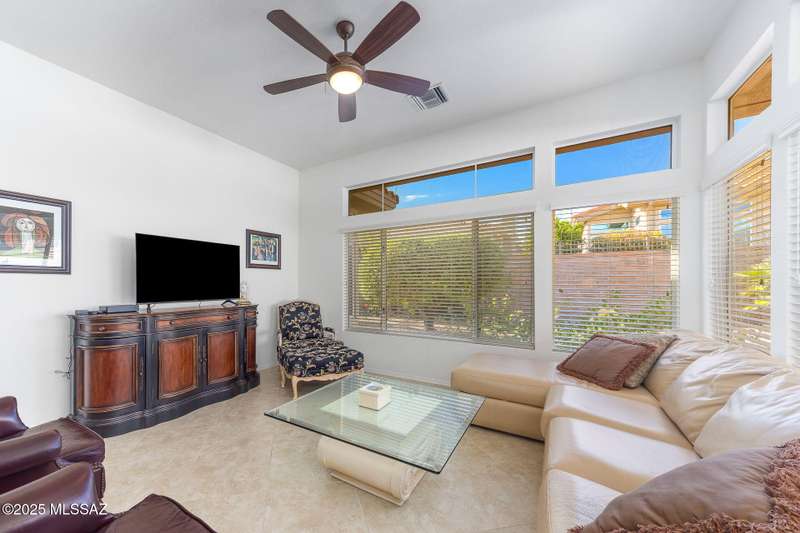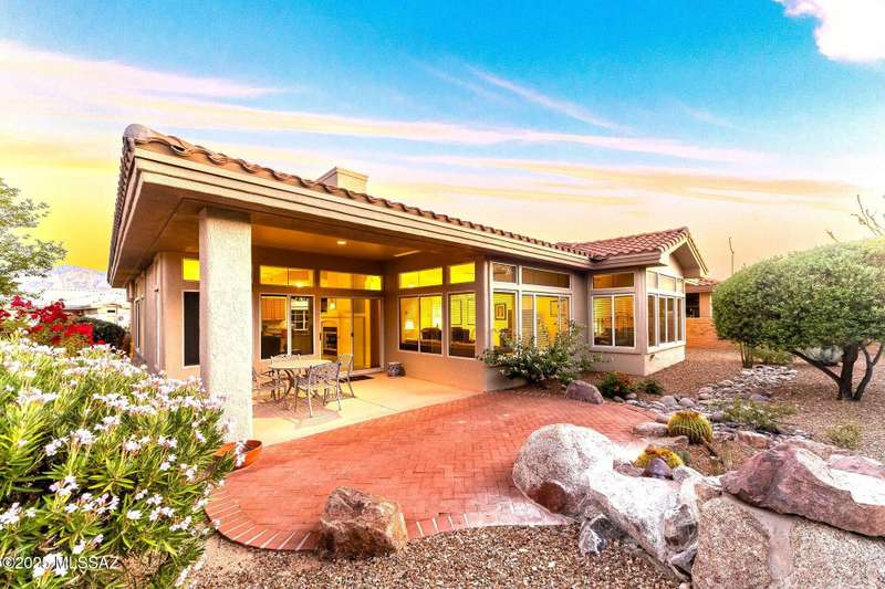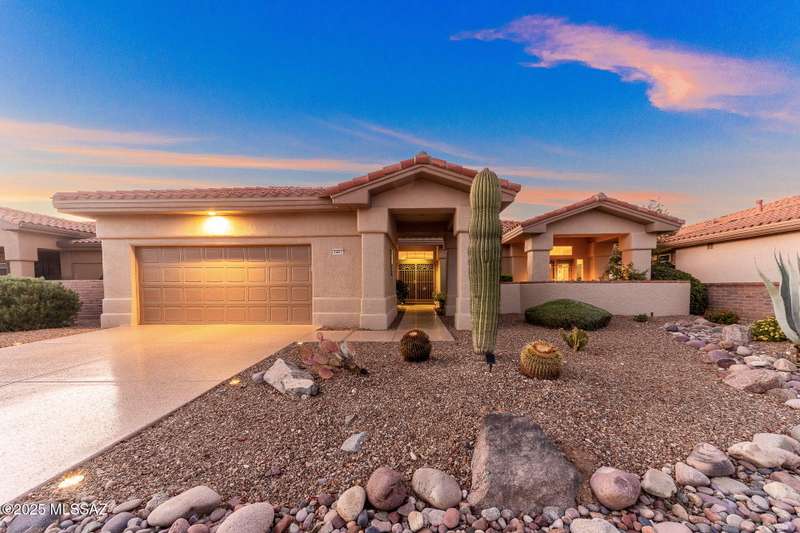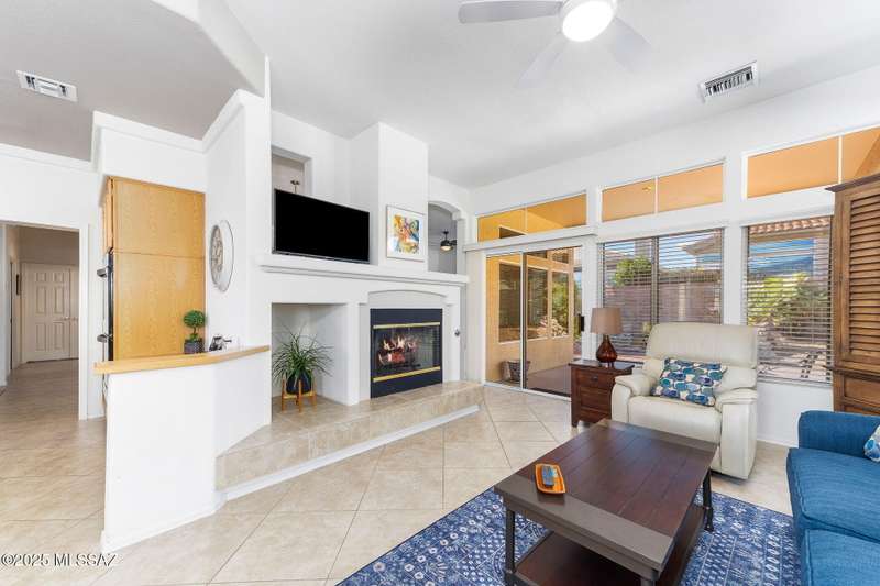 Sun City Crestview Model. Immaculate 1,923 sq. ft. 2BR / 2BA home. Lovely Enclosed Front Patio w/ Magnificent Catalina Mountain Views & a Rose Garden. Welcome into your Bright Open Kitchen w/ Island, New Stainless Appliances including Double Oven & Gas Cooktop that Flows into the Dining Area and the Family Room w/ Gas Fireplace. Enjoy your Spacious Living Room w/ views of the Private Back Yard Oasis. An Elegant Hallway leads to the Owner's Suite w/ Walk-in Closet, Walk-in Shower & Tub. BR 2 Features beautiful Built-in's w/ a Murphy Bed. Your Private, Enclosed Back Yard has a Covered Patio & Lush Landscaping. Home also features a Laundry Room w/ Cabinetry & 2 Car + Golf Cart Garage. New Exterior Paint + New Epoxy Driveway & Walkway. Sun City Amenities: Golf, Pools, Pickleball & more!