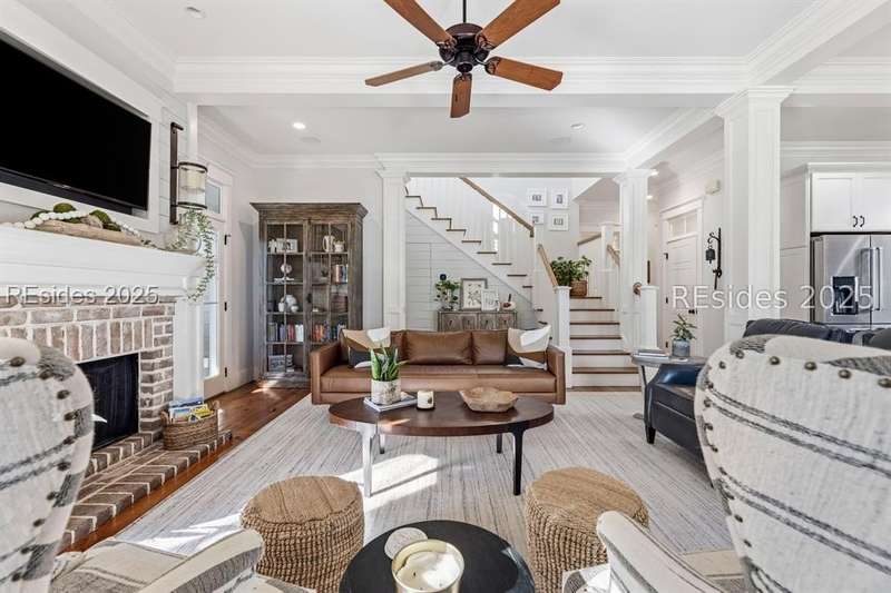 Not a detail has been overlooked in this beautifully crafted custom home located in the sought-after Bluffton community of Oldfield. Offering 3 bedrooms, 2.5 baths, and 2,336 square feet, this home captures the epitome of Lowcountry living, charm, and setting. Enjoy outdoor living on three porches - one screened and two open-air - perfect for relaxing or entertaining. Thoughtful features include a tankless water heater, spray foam insulation, and high-quality finishes throughout. The primary suite with a spa-like bath is conveniently located on the first floor, while two guest bedrooms and a spacious bonus area occupy the second level. Situated in Oldfield's Lakeside Village, this home offers timeless style, comfort, and the relaxed elegance of Lowcountry life.