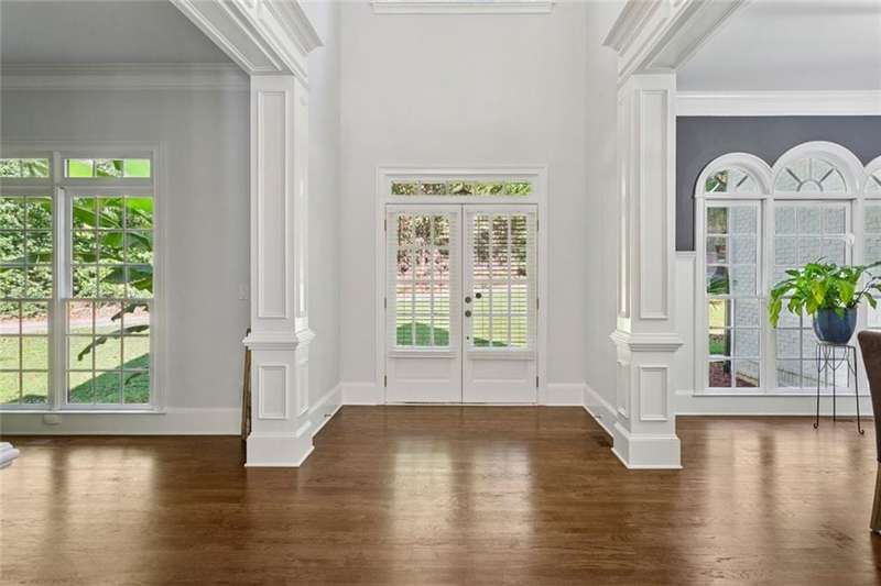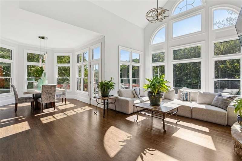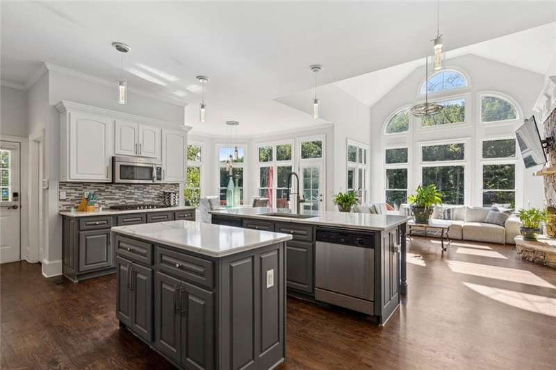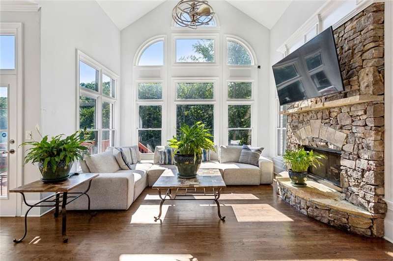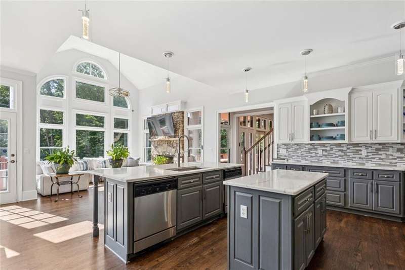 Beautiful waterside estate with spectacular lake and forest views in Smyrna's coveted Historic Covered Bridge area is a privacy lover's paradise. This captivating custom built home by John Willis boasts three light-filled levels each offering stunning private views. The gourmet kitchen with island, separate breakfast bar, two dishwashers, double oven, gas range, custom cabinets and new countertops flows seamlessly to the keeping room with stone fireplace. Breathtaking floor to ceiling windows give stunning views of the outdoor oasis beyond. An open deck perfect for grilling is steps away. The formal living room with coffered ceiling, built-in bookcases and a gas fireplace grants access to a separate covered porch that affords a relaxing respite. A formal dining room, office, guest bedroom and full bath complete the main level. Upper level includes the oversized owner's suite with a relaxing sitting area, a large bedroom with an ensuite bath, 2 additional oversized bedrooms with a Jack and Jill bath and a laundry room. The finished terrace level has two large entertainment areas, gym, large storage areas and a separate boat door and storage area with separate drive way. The outdoor oasis features multiple decks with cafe lighting, outdoor kitchen, hot tub, private dock, water feature and fenced basketball court.