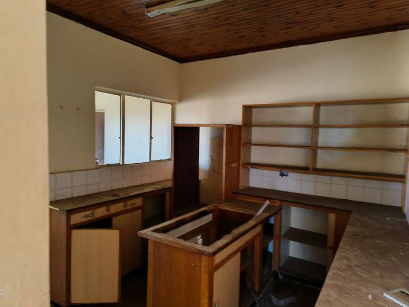 PACKED WITH POTENTIAL!! Is this 8,5653 ha small holding some 3 km from center of town with improvements a large 3 bedroom 2 bathroom house with 3 x 1 bedroom flat lets 4 x closed up garages (vandalized)and numerous outbuildings of which the main workshop/offices with various store rooms of +-1600sqm, a further steel structured shed of +-520 sqm. A further brick under iron store room of +-240 sqm with a +-190 sqm brick under iron workers rooms with ablution and kitchen facilities. Two large freestanding carports This property can be switched into a truck stop with drivers/assistants sleep over and wash bays for trucks. Also well suited for a workshop area. VAT not included in the price. TAKE ADVANTAGE OF THIS FINE OFFER NOW!!