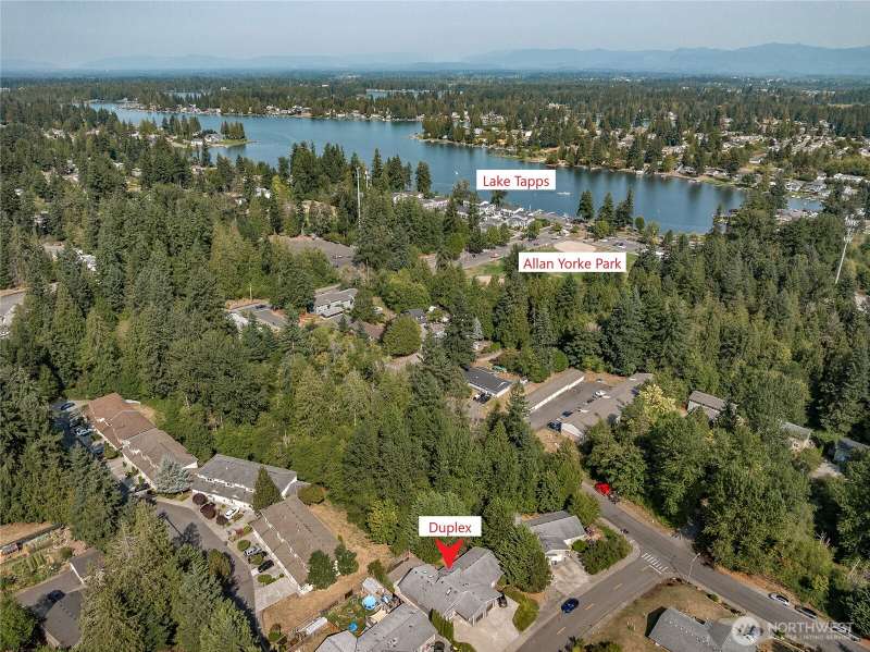 New lower price! Refreshed duplex in a prime location, just a short walk to the Lake Tapps waterfront and Allan Yorke Park. Unit A is light-filled with new carpet, fresh paint, vaulted ceilings, a cozy gas fireplace, open kitchen with central island, new dishwasher and microwave, skylights, and a spacious patio. Unit B features a welcoming great room open to the dining room, newer appliances, oversized utility room, green backyard views, and a private BBQ deck. Both units offer 2 bedrooms and a 1-car garage. A versatile property in a sought-after area near recreation, dining, and more - ideal for investment or owner-occupancy.