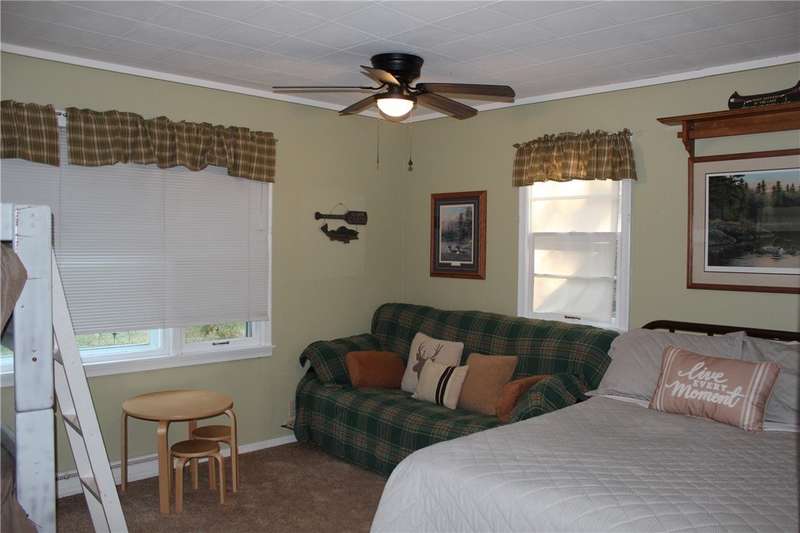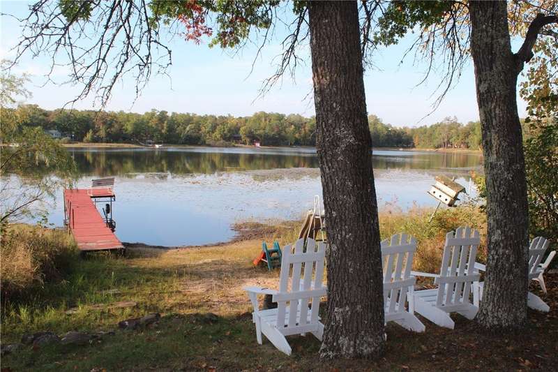Great opportunity to own an amazing getaway on a quite lake with a cute cabin/home that has a level lot, new no maintenance deck, patio, porch, stone fire place, and has new mechanicals. Roof has just been replaced and the snowmobile trails/ATV trails run right by the property for a full 4 season vacation home.