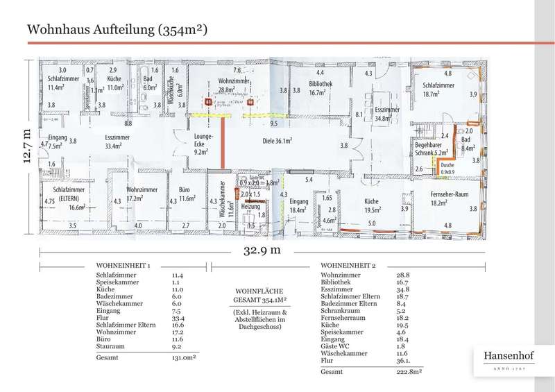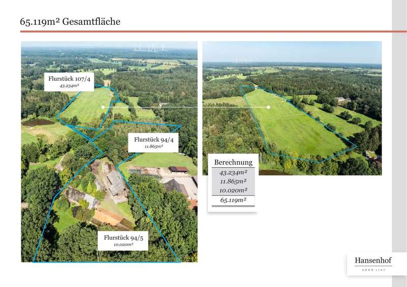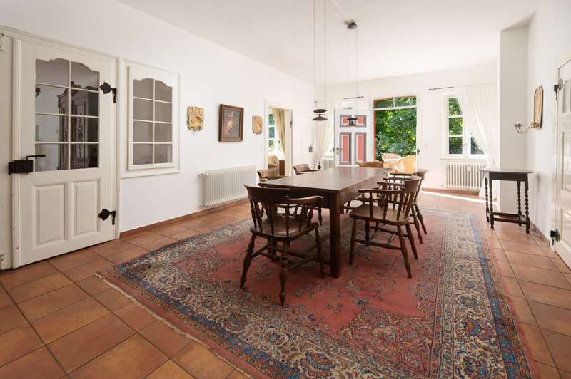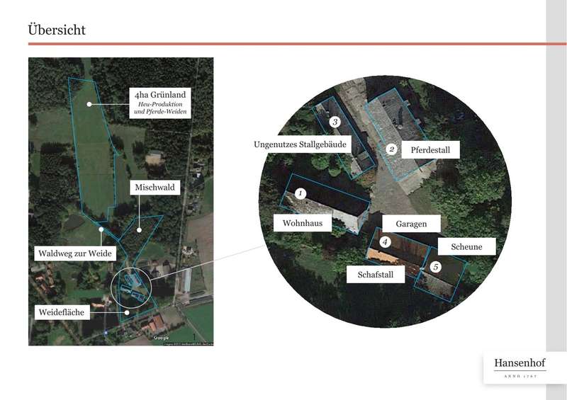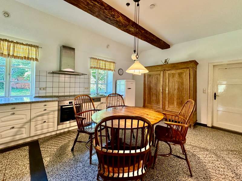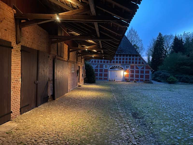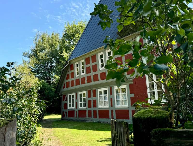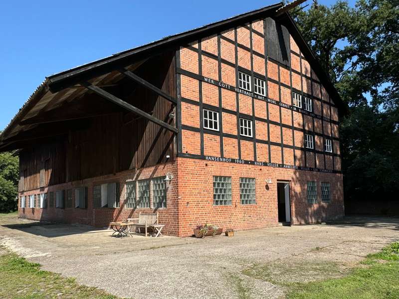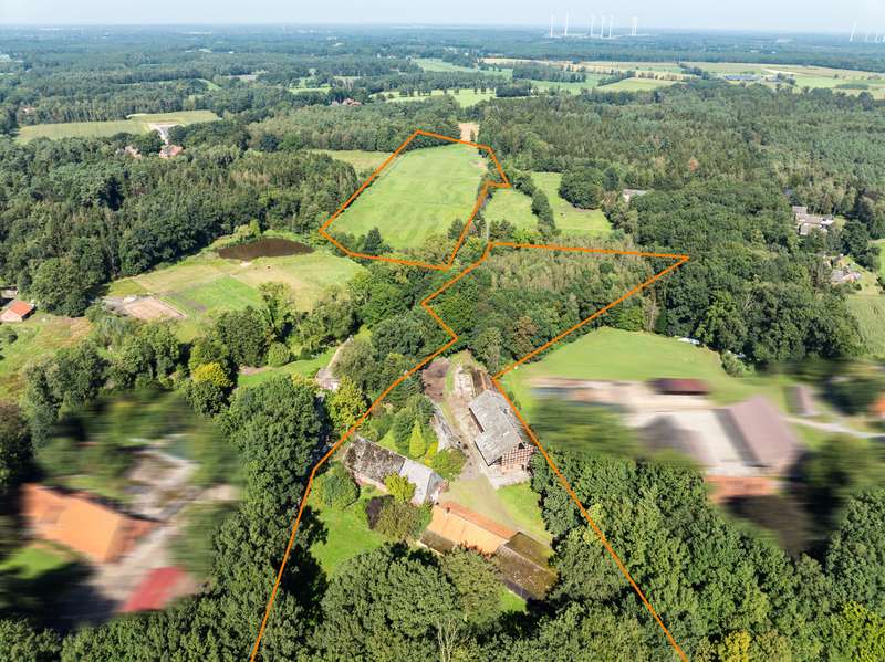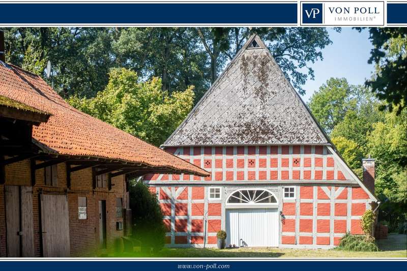 Discover this enchanting farm, which invites you to dream with its lovingly restored, listed half-timbered house. Surrounded by a spacious garden, adorned with fragrant roses, fruit trees and majestic old oak trees, you will find an oasis of peace and nature here - perfect for you and your horses. This rural gem offers a generous living space of approx. 360 m². The house is divided into two individual living units with separate entrances and each offers 5 rooms, a kitchen, a bathroom and a laundry room. This constellation is ideal for two families or as a multi-generational home. Both apartments impress with their spacious rooms and charming details that emphasize the character of the house. Alternatively, the property can also be used as a spacious detached house. This idyllic farm is a true paradise for horse lovers: Opposite the house is a well-kept stable, which offers a dream home for up to 12 horses. The spacious boxes of approx. 20 m², all with windows, are ideal for mares and foals. The stable also has a tack room, a washing area and a feed room/workshop. Behind the stable there is plenty of space for paddocks or a lunging circle. A directly adjacent horse meadow can be comfortably overlooked from the terrace. Directly connected to the farm is 4.3 hectares of pastureland, which offers enough space for your horses to graze and for your own hay harvest. The property also has an open barn for hay and straw as well as space for a tractor, horse trailer and other equipment. Three garages and a separate room for garden tools round off the offer. A further barn is waiting to be revitalized - whether as additional living units, horse boxes, a vintage car garage or a large workshop. The development possibilities for creative projects are manifold. A third stable with access to the house meadow can also be converted into four additional horse boxes or a playpen. In total, the property extends over approx. 6.5 hectares of rounded land, which offers space for development and creative possibilities. The location is unique: quiet and far away from the hustle and bustle of the city, in the middle of nature and yet a short distance from all amenities such as shopping facilities, schools, doctors, etc. The excellent train connections to Hamburg (approx. 45 minutes) and Bremen (approx. 30 minutes) allow you to enjoy country life to the full and at the same time be in the city quickly - ideal for commuters. Area distribution: approx. 43,300 m² grassland, approx. 11,800 m² forest, approx. 10,000 m² farmstead