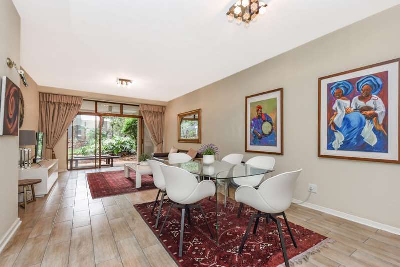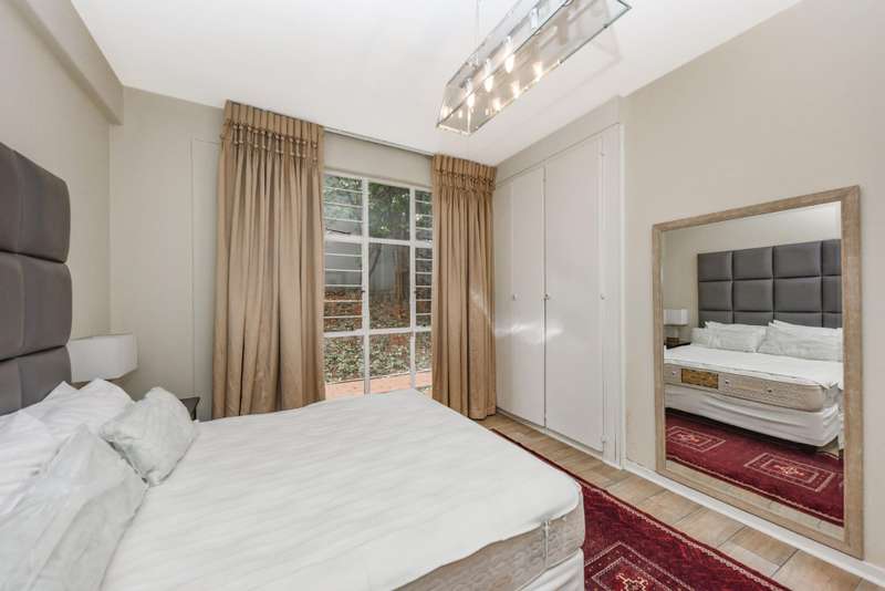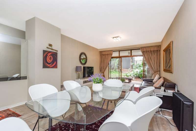 Brand New Listing : This spacious and recently renovated ground floor apartment in the sought-after Portman Place, Melrose Estate. This elegant home offers a blend of modern living and convenience with 2 generously sized bedrooms and 2 bathrooms, making it ideal for professionals or small families. The separate kitchen features ample storage space and a dedicated laundry area, providing practicality without compromising on style. The sunny living area includes both a dining room and lounge, which open onto a large verandah, perfect for entertaining or relaxing. The verandah leads to a semi-private garden with beautifully maintained lawns, offering a serene outdoor space for leisure. As part of the Portman Place complex, residents have access to a stunning shared garden and swimming pool, all within a secure environment with 24-hour security and access control. Additional features include an undercover parking bay, a domestic room, or storeroom, with visitors parking readily available. Located just minutes from Rosebank?ÇÖs top amenities, including the Gautrain (a short 5-minute walk), and Sandton CBD (a 10-minute drive), this apartment offers a perfect balance of tranquility and city living.