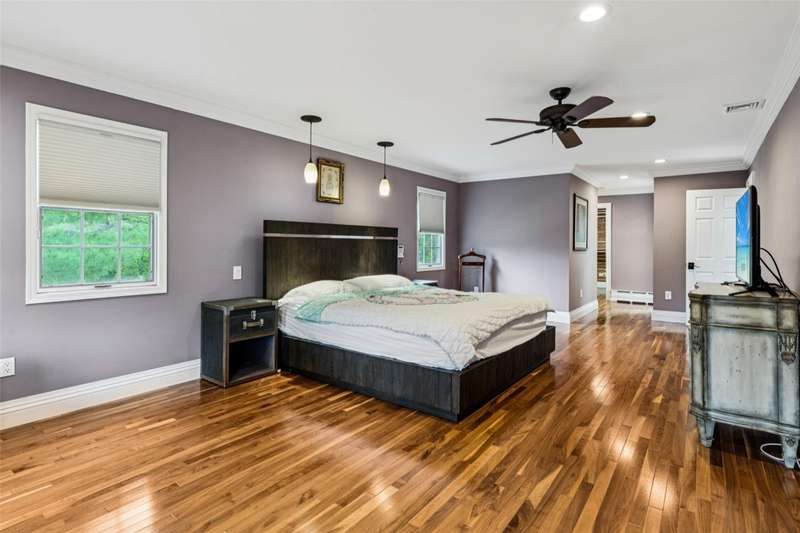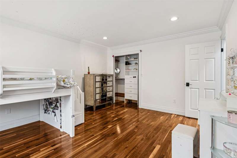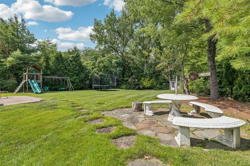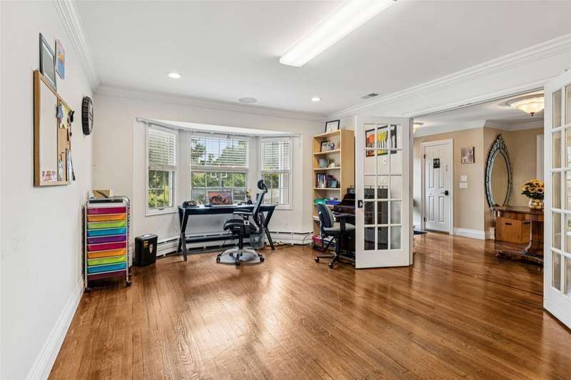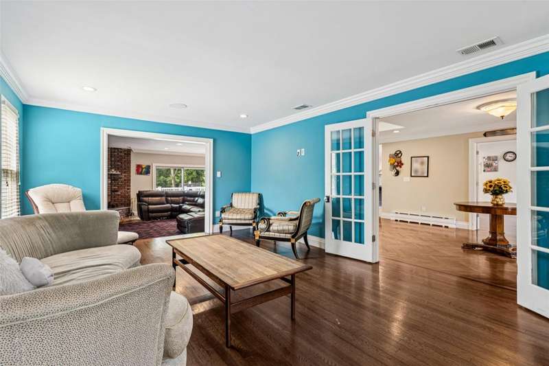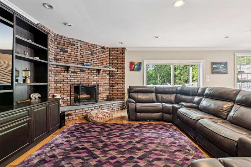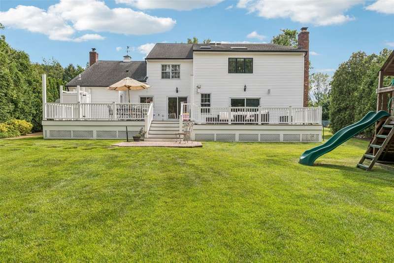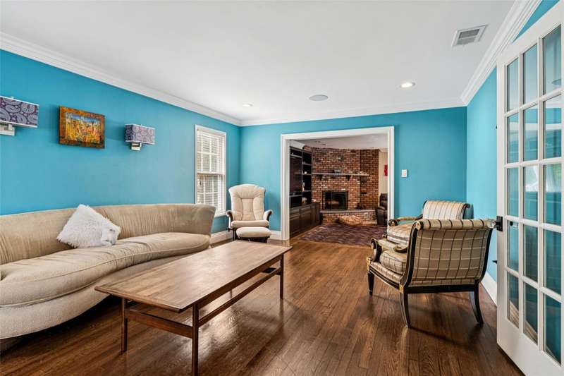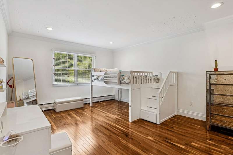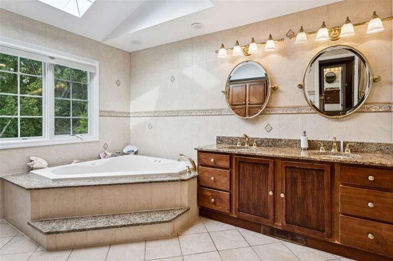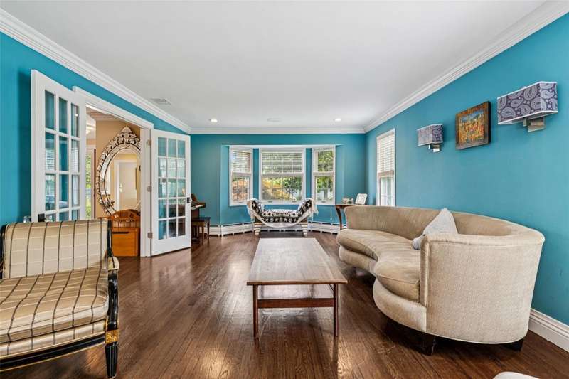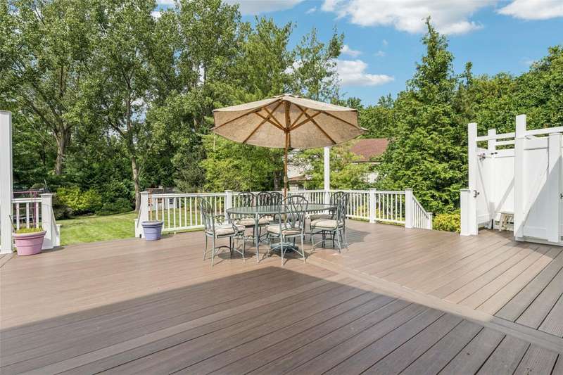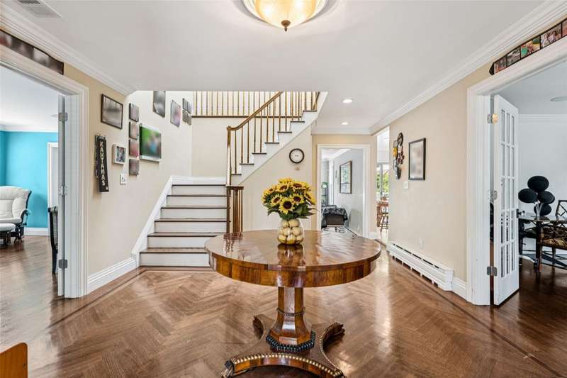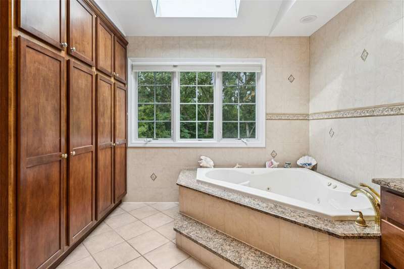 ELEGANT COLONIAL LIVING IN DESIRABLE ESQUIRE ESTATESNestled on a quiet cul-de-sac in the highly sought-after Esquire Estates of North Hills and zoned for the top-rated Herricks School District, this elegant Colonial offers the perfect balance of luxury, comfort, and convenience. A beautifully landscaped front yard and stately entrance open to a sun-filled foyer with rich walnut hardwood floors. The main level features a formal dining room, spacious living and family rooms with a cozy wood-burning fireplace, and an eat-in kitchen with granite countertops and direct access to an expansive deck-perfect for seamless indoor/outdoor entertaining. A first-floor bedroom and bathroom provide flexible living options, ideal for guests or a private home office. Upstairs, the serene primary bedroom offers a walk-in closet, with a spa-like hall bath- featuring a jacuzzi tub and skylight-just steps away. Three additional bedrooms and a full bath complete the second level. The finished walk-out basement offers endless possibilities for recreation, a home gym, or guest quarters, and leads to a private, park-like backyard with lush green space, a deck, and a storage shed. Additional highlights include hardwood floors throughout, crown molding & recessed lighting, custom cabinetry, water filtration system, and 2-car garage plus extended driveway. This exceptional home checks every box- space, style, and location. Don't miss the opportunity to make it yours!