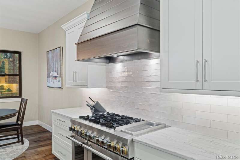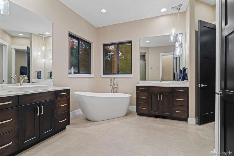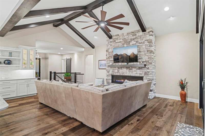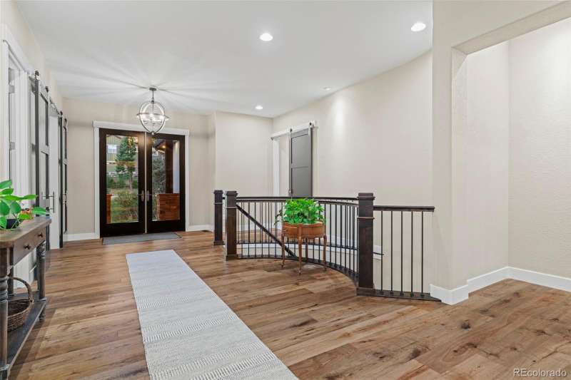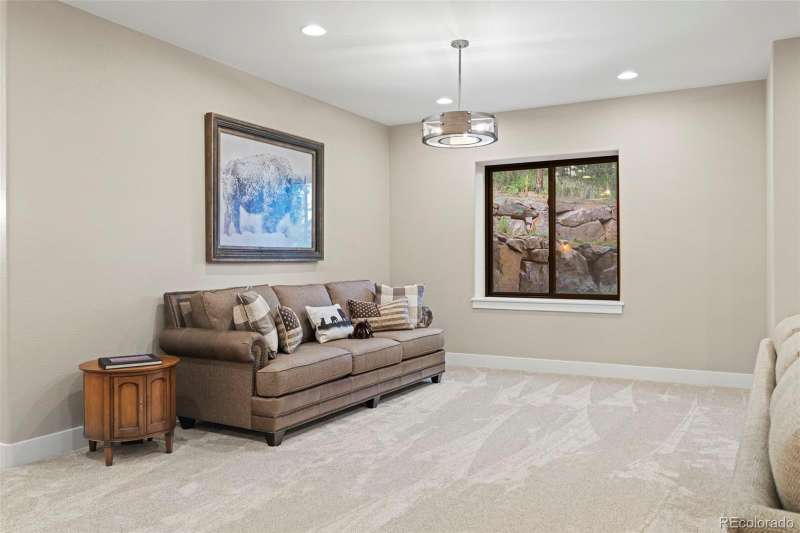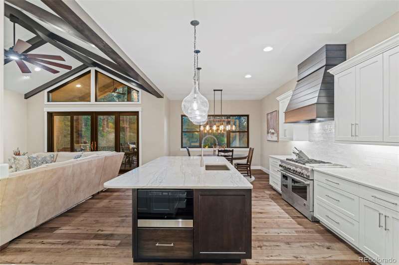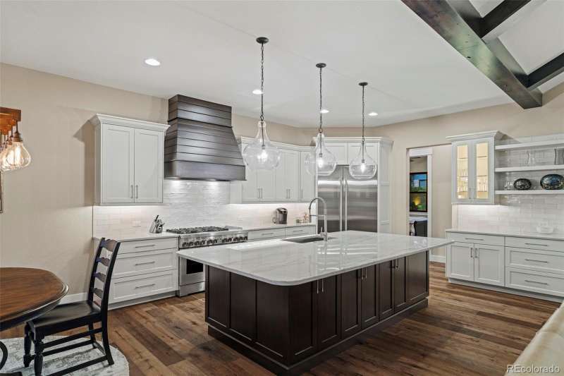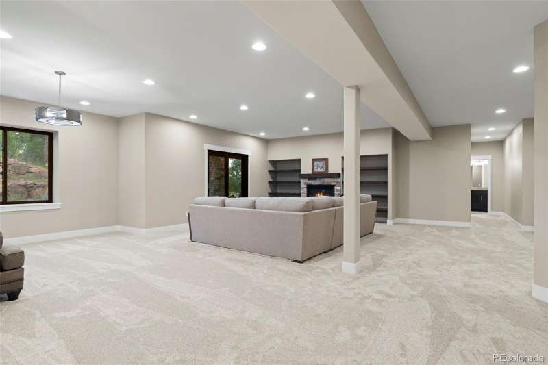 Huge Price Improvement! Offered at $1,499,900! Welcome to one of the most exquisite custom homes in Perry Park, where rolling hills, towering pines, and striking red rock formations create a breathtaking backdrop for this nearly new 5-bedroom, 4-bathroom ranch-style retreat with a main-floor study and over 4,000 finished square feet. Built just two years ago, this home blends timeless craftsmanship with modern luxury. The exterior impresses with tall timber columns, a plank ceiling front porch, professional lighting, and mature trees offering natural privacy. Step inside through double front doors to a bright, open layout featuring hardwood floors, soaring 14' vaulted ceilings with custom beams, and panoramic views of the serene surroundings. The chef's kitchen is a showstopper with 42? warm ivory cabinetry, a massive island topped with Brazilian quartzite, handcrafted walnut hood, professional 6-burner gas cooktop with dual ovens, built-in refrigerator, walk-in pantry, and a large dining area. The great room showcases a stacked-stone gas fireplace, floating shelves, and double sliders leading to a covered deck-perfect for entertaining. The private primary suite offers deck access, a spa-inspired 5-piece bath with heated floors, freestanding tub, dual-head shower, and a 10' x 14' walk-in closet connected to the laundry room and custom mudroom. Two main-floor guest bedrooms share a stylish ¾ bath, while the finished walkout basement adds a massive rec/theater/game room with a second fireplace, two additional bedrooms, and a full ¾ bath. The oversized 3.5-car garage includes 220V/50 Amp EV charging and ample storage. Experience main-floor living, thoughtful design, and luxury craftsmanship-all in one of Douglas County's most sought-after communities.